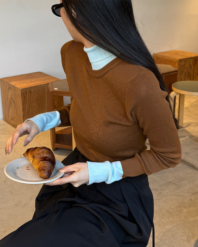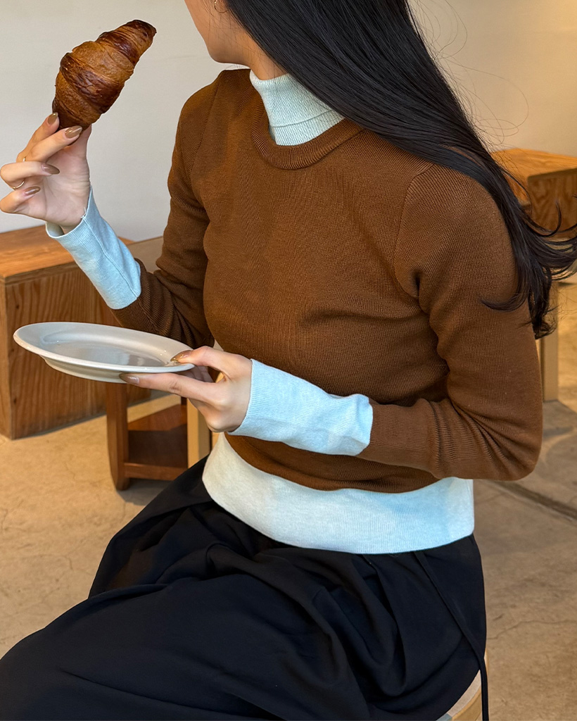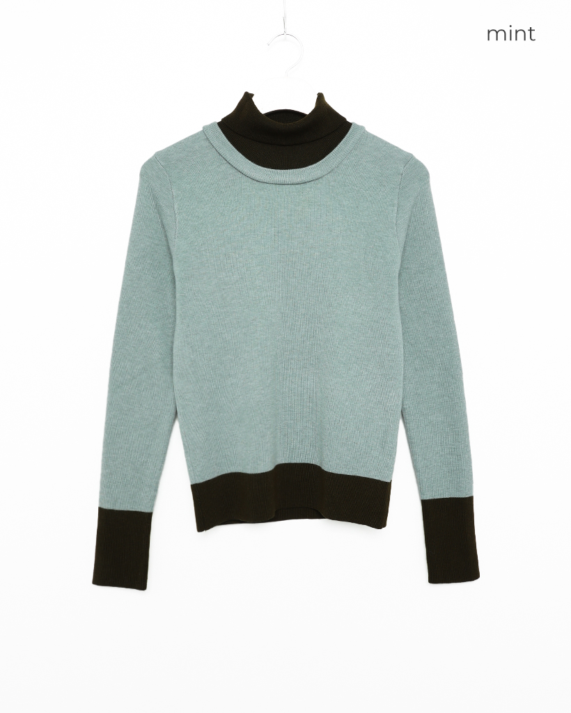 バイカラーネックポーラニット