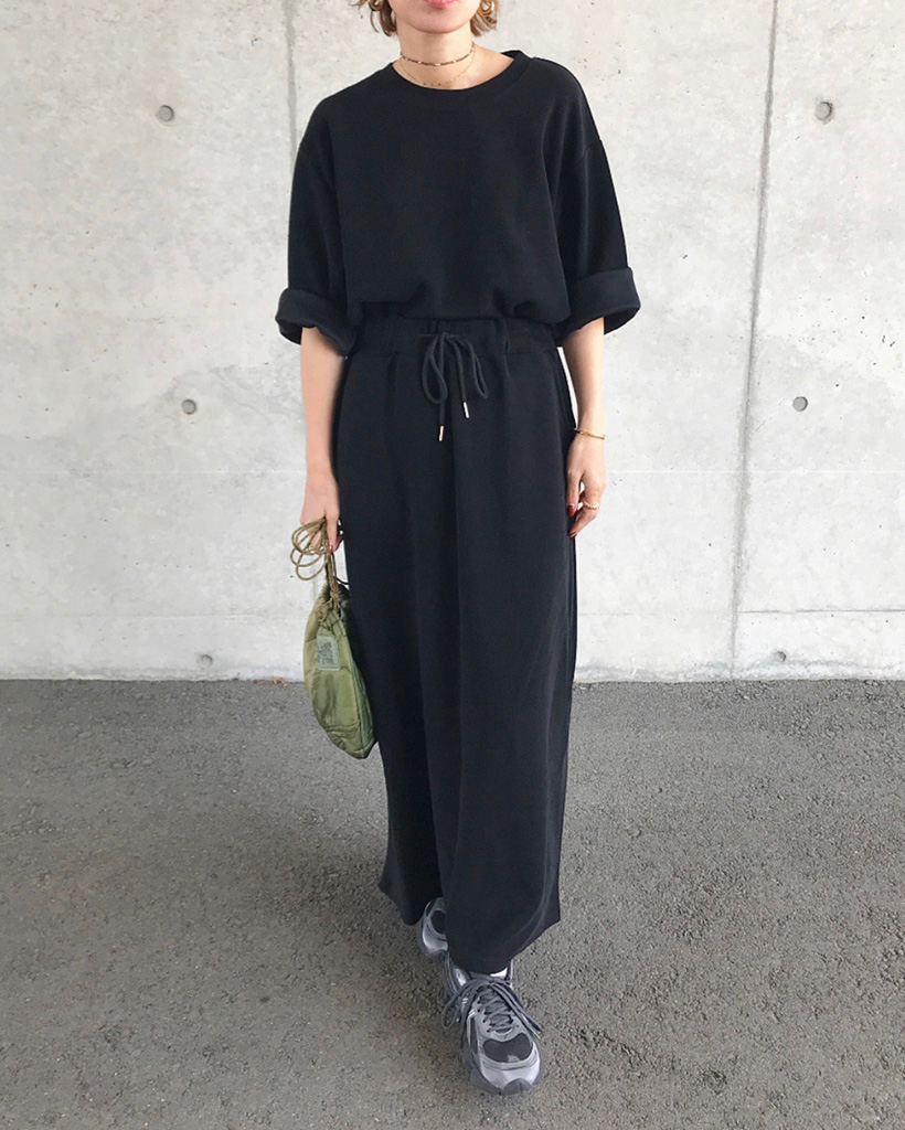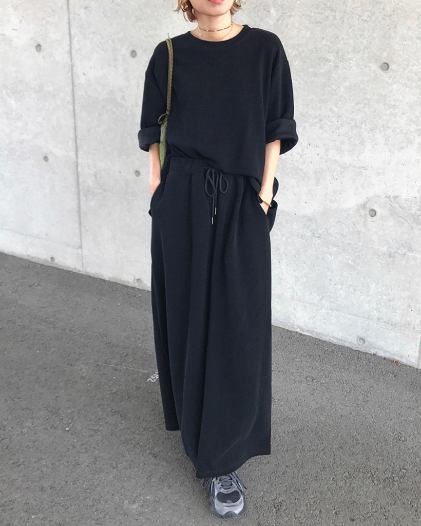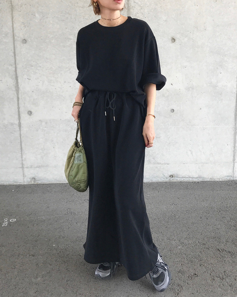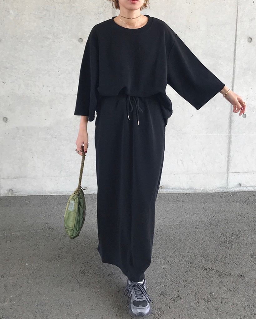 7分袖 ベーシックTシャツ&スカート セットアップ