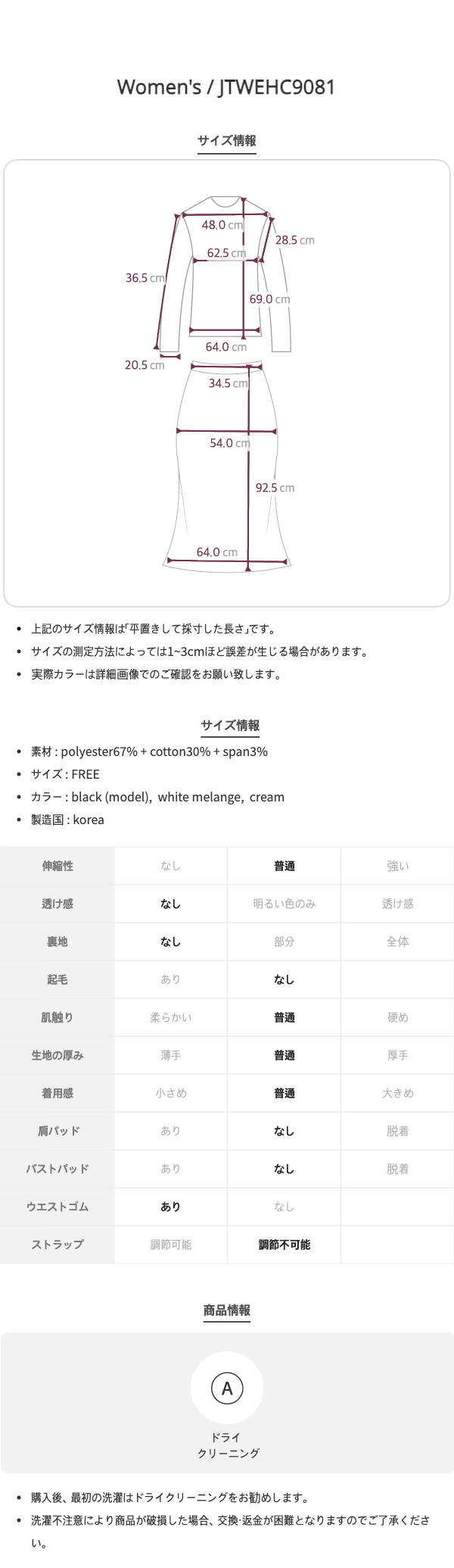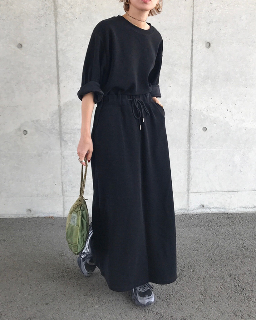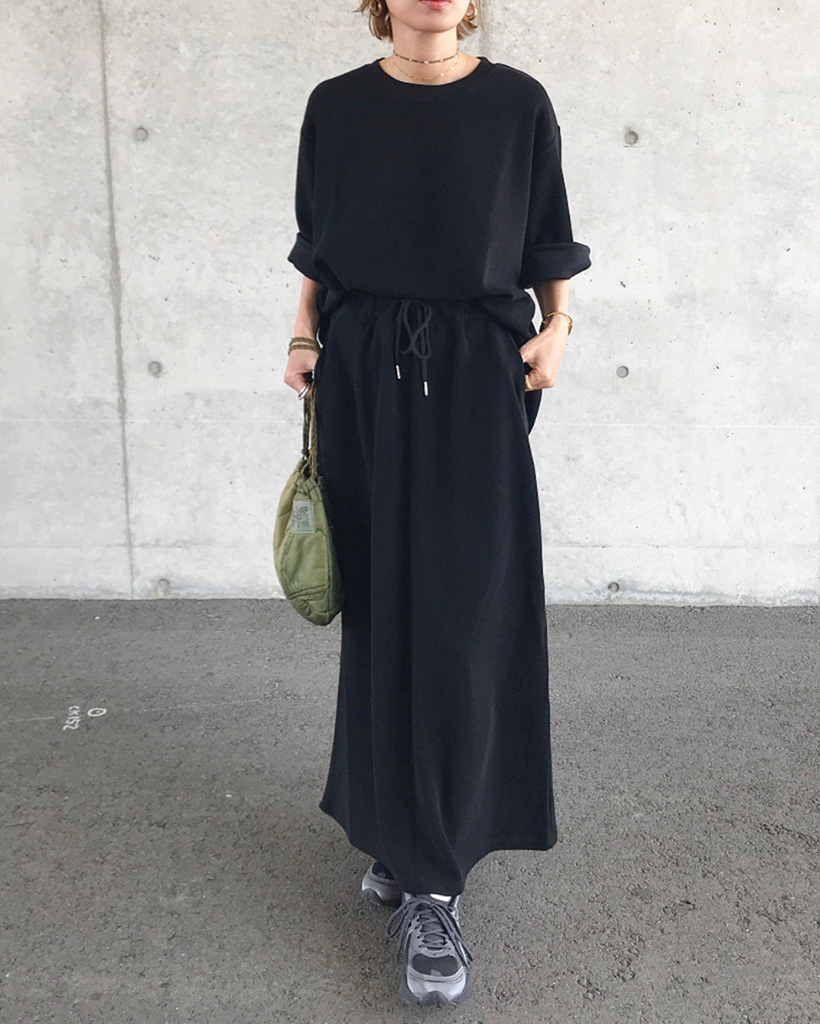 7分袖 ベーシックTシャツ&スカート セットアップ