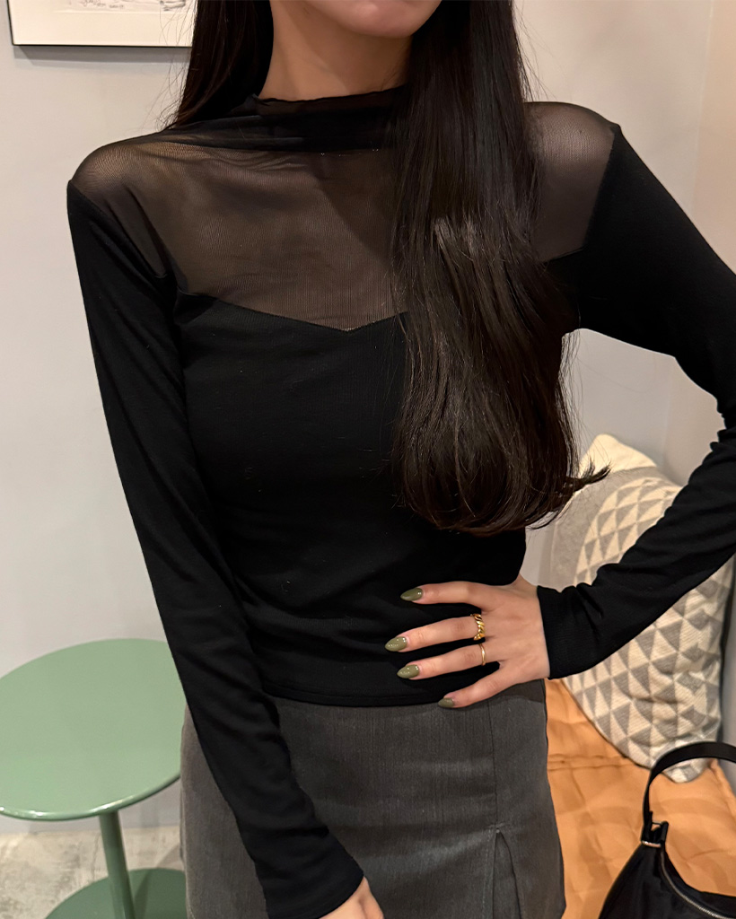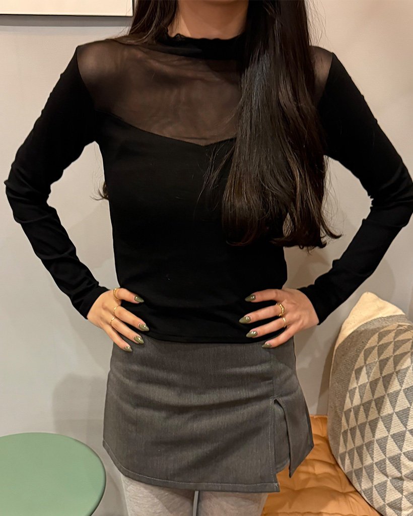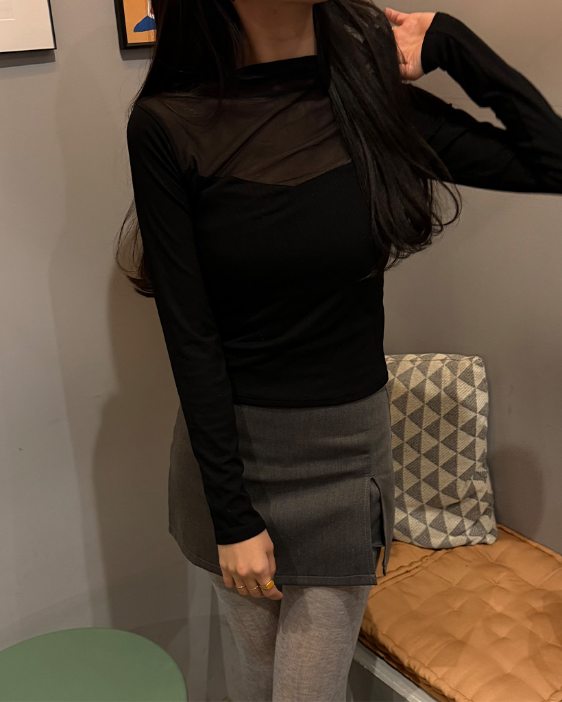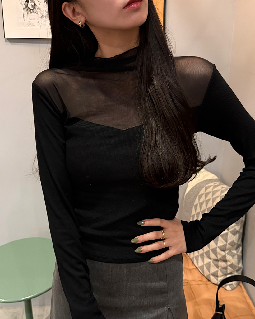 VシースルーバイカラーTシャツ