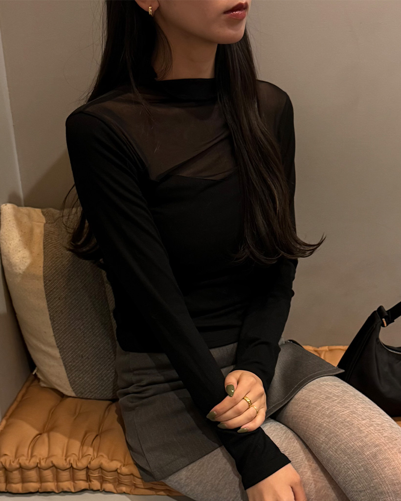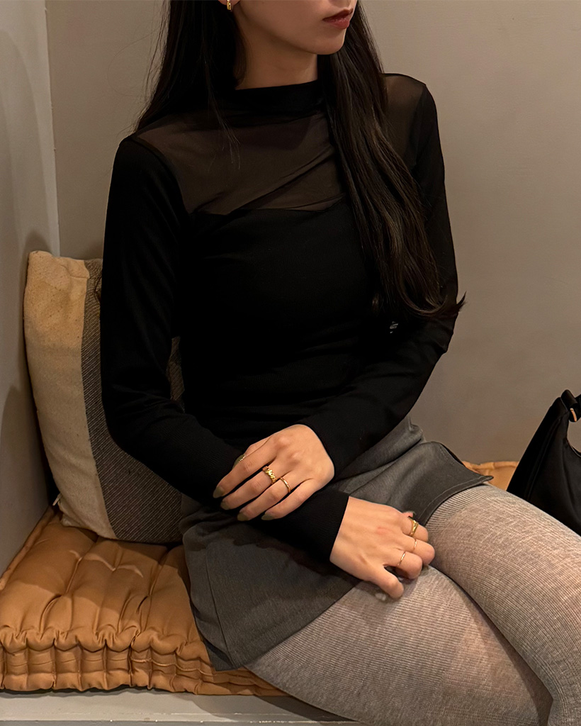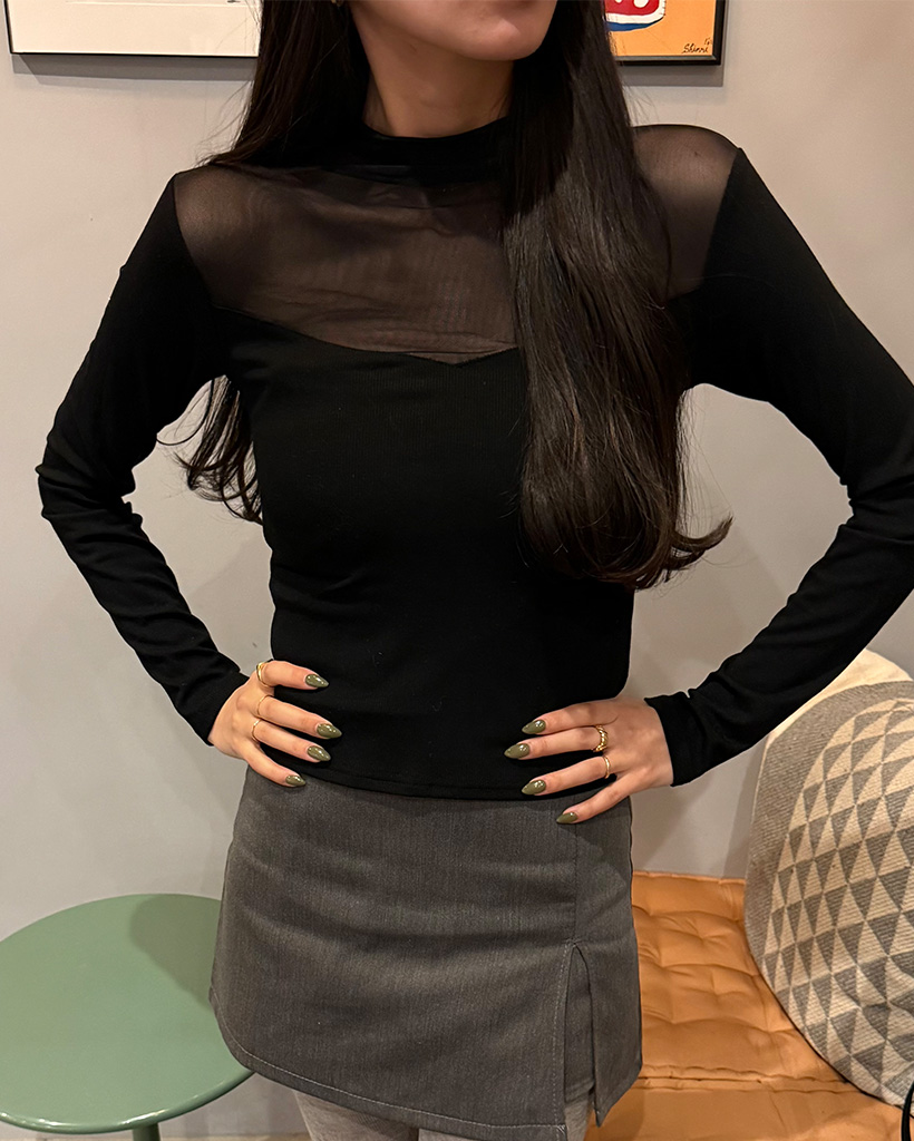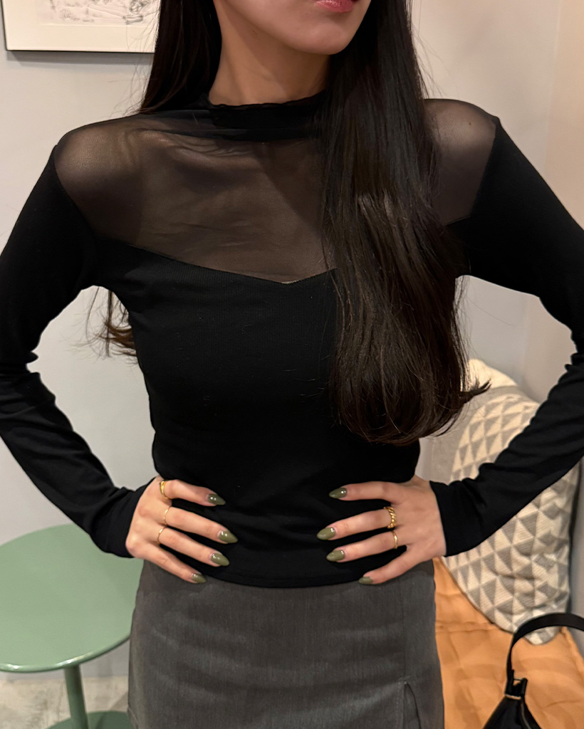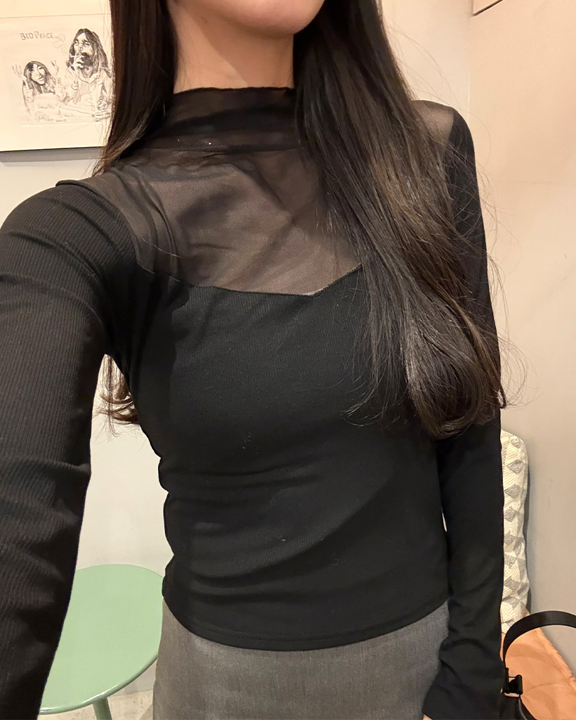 VシースルーバイカラーTシャツ