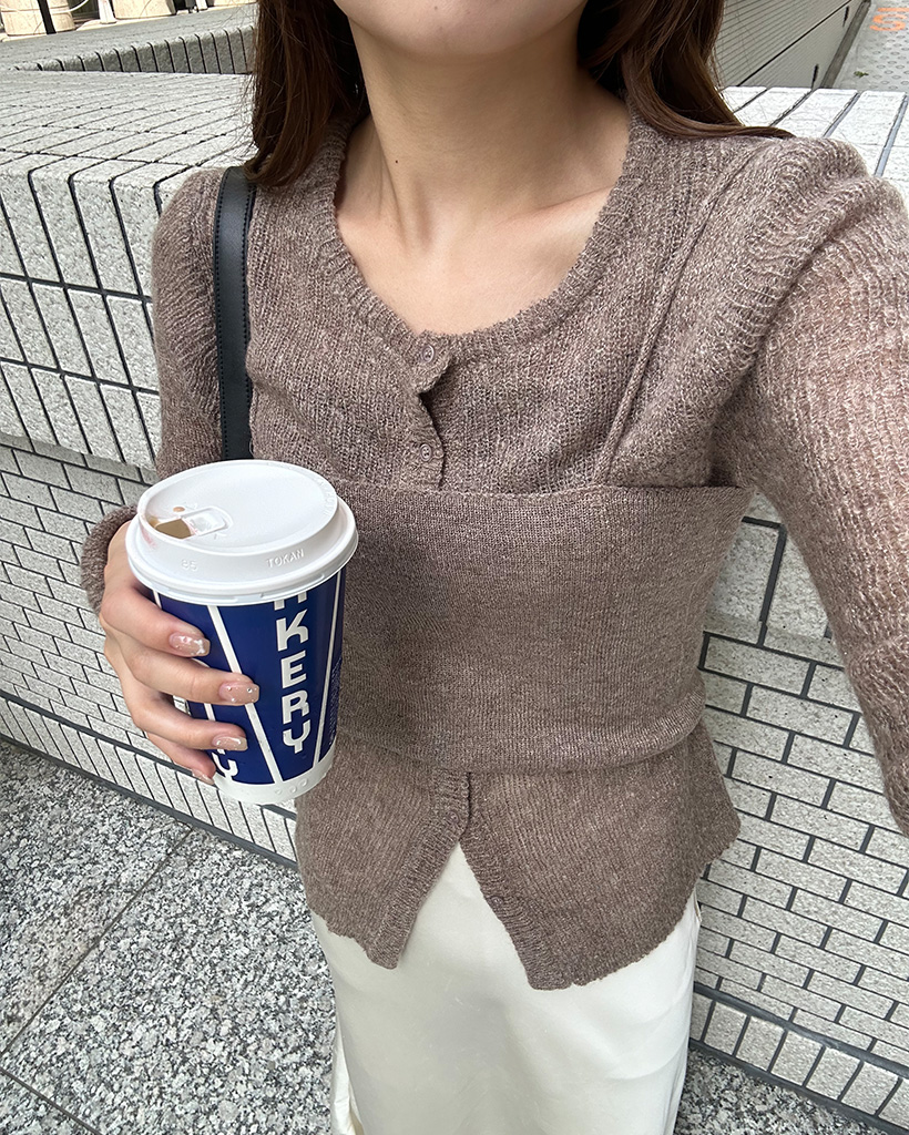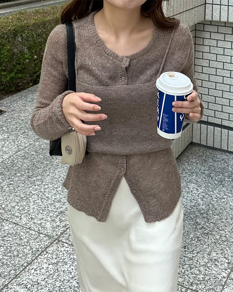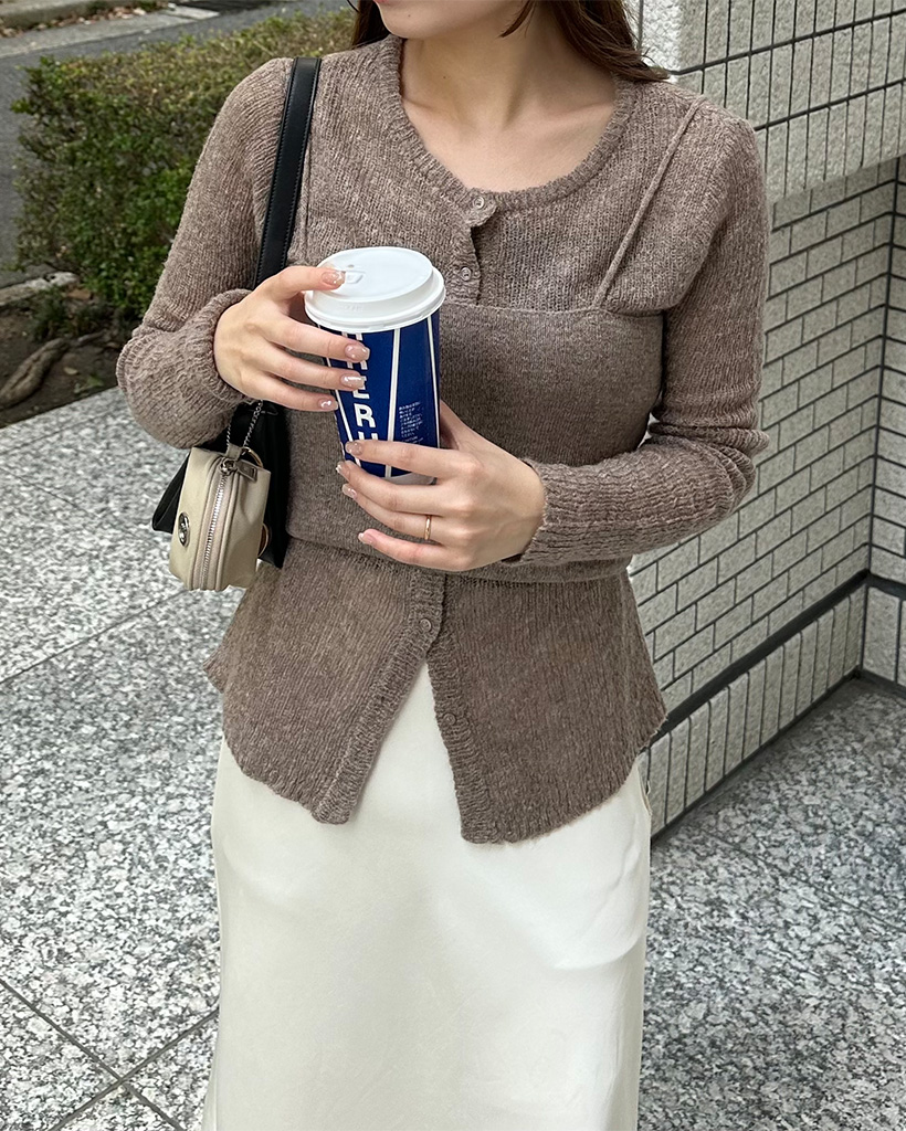 キャミニットビスチェ&ラウンドネックカーディガンセット