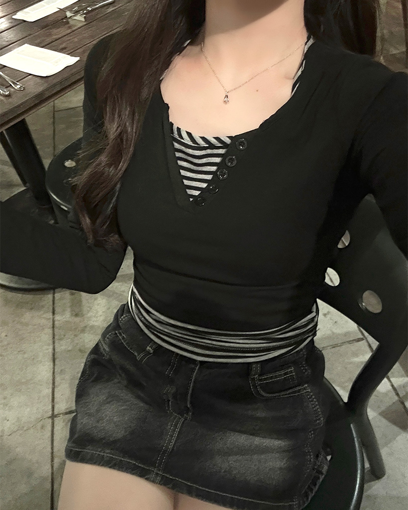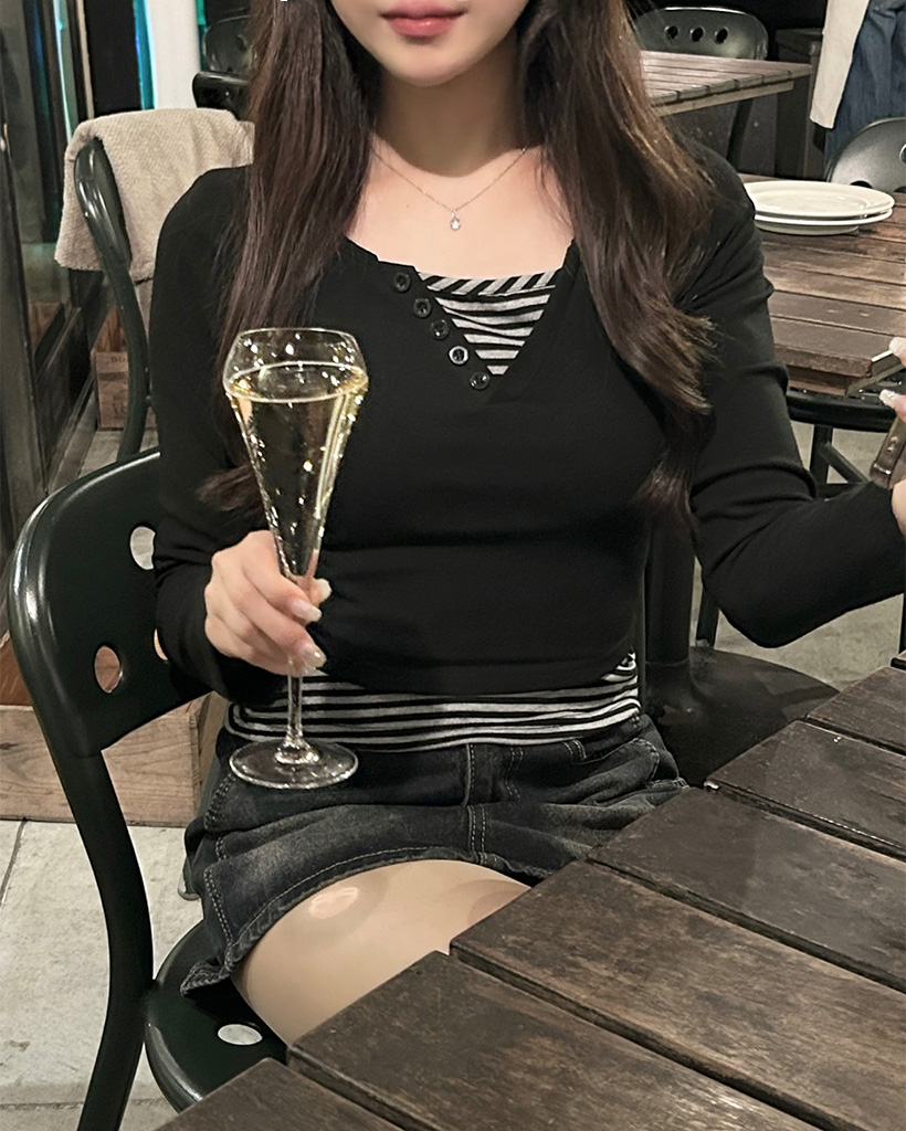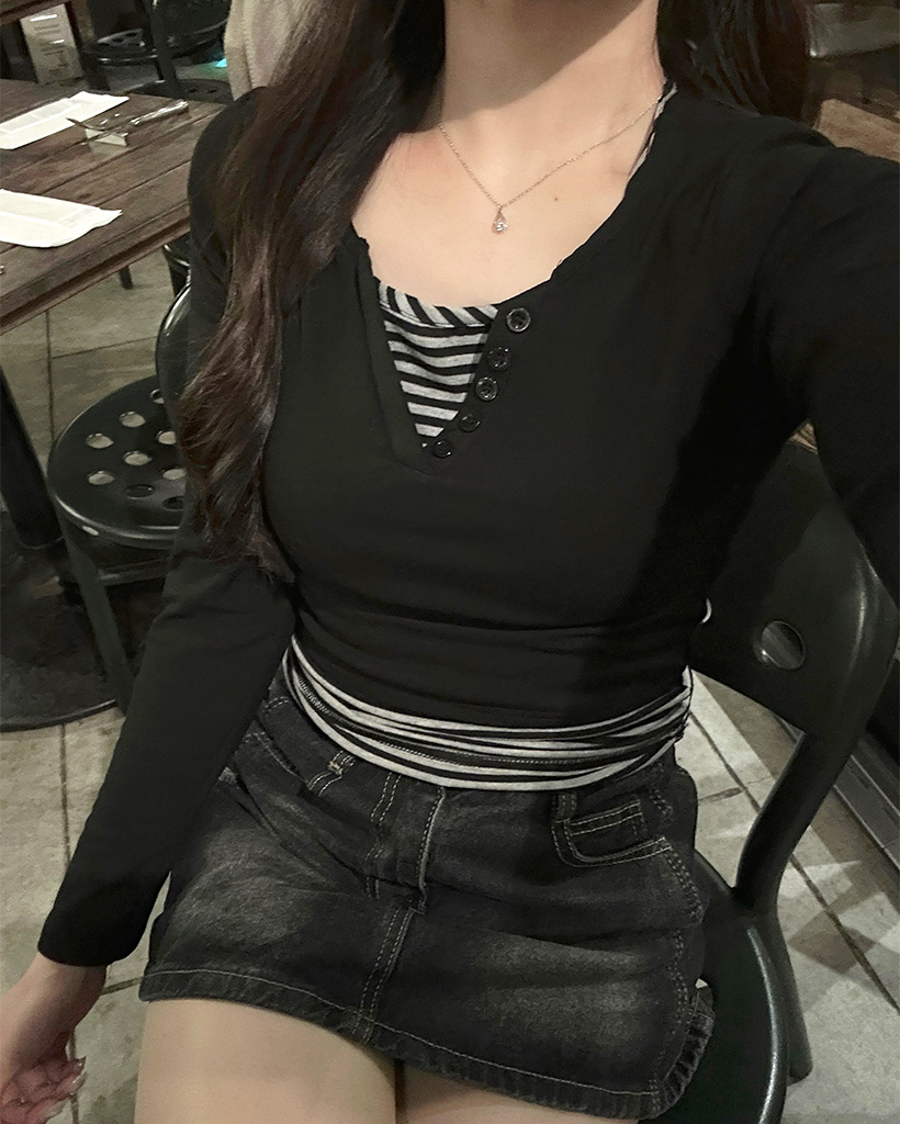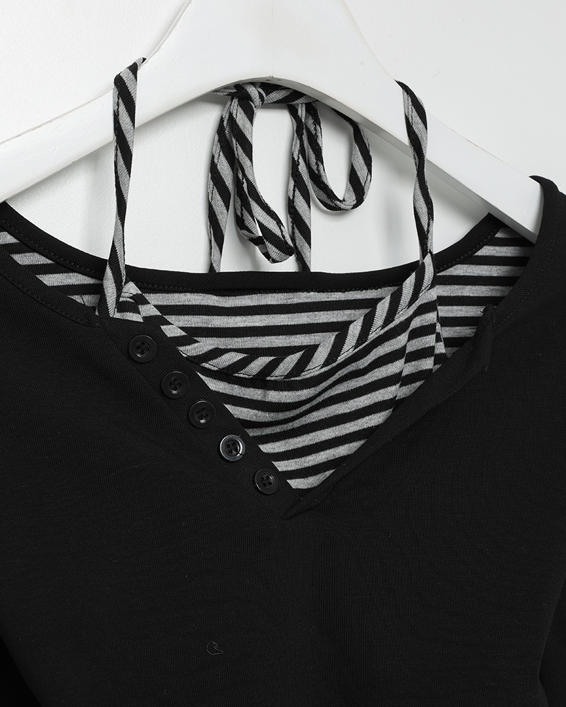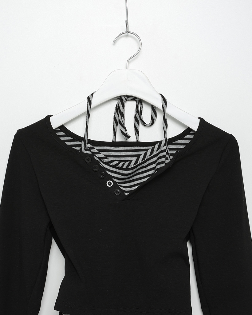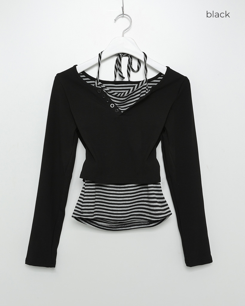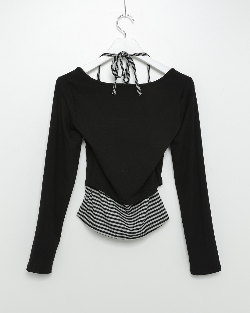 ボーダーレイヤードロングスリーブシャツ