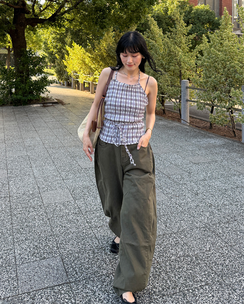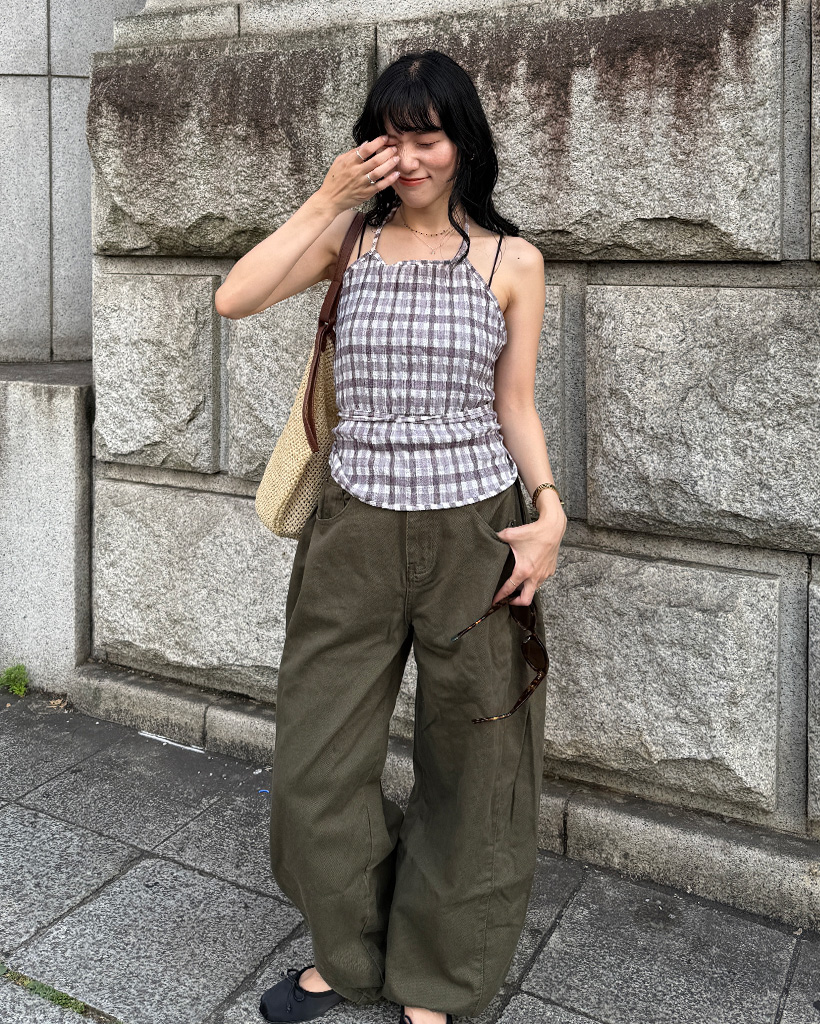サイドピンタックワイドパンツ