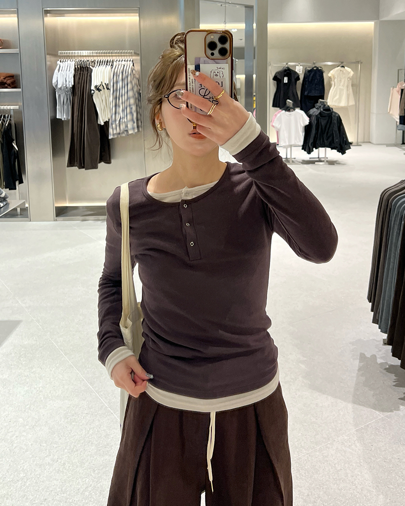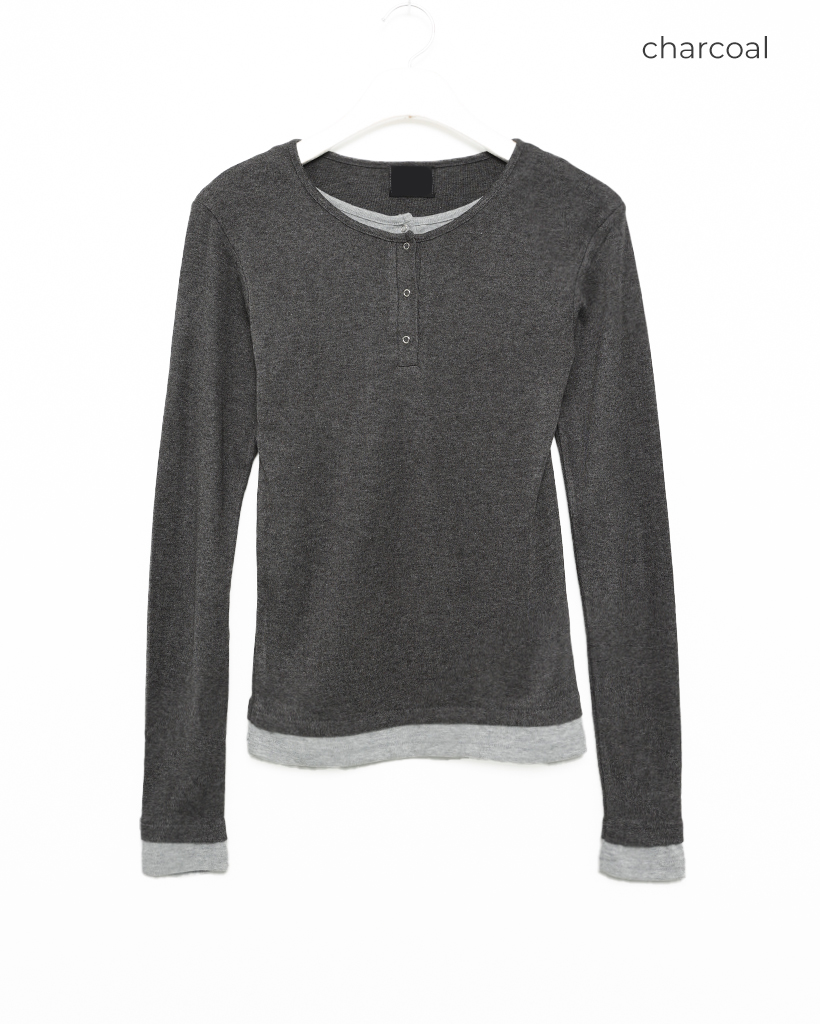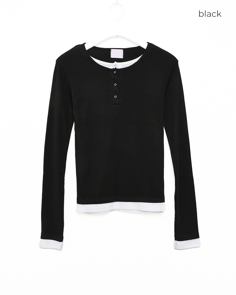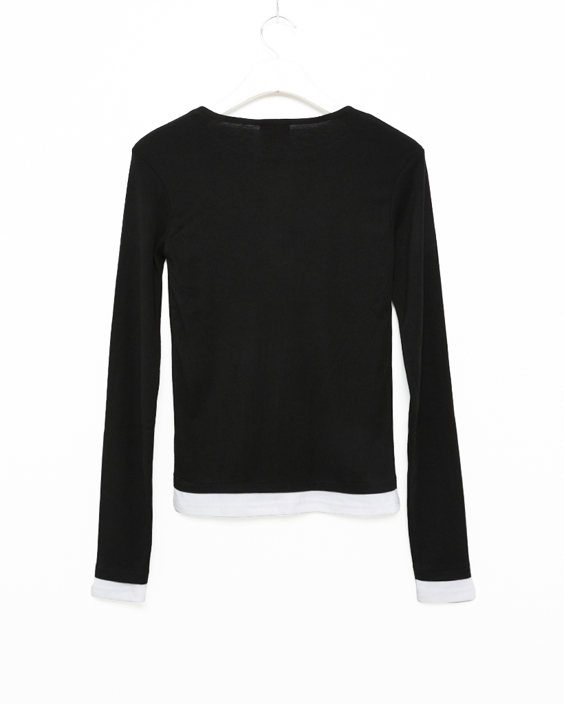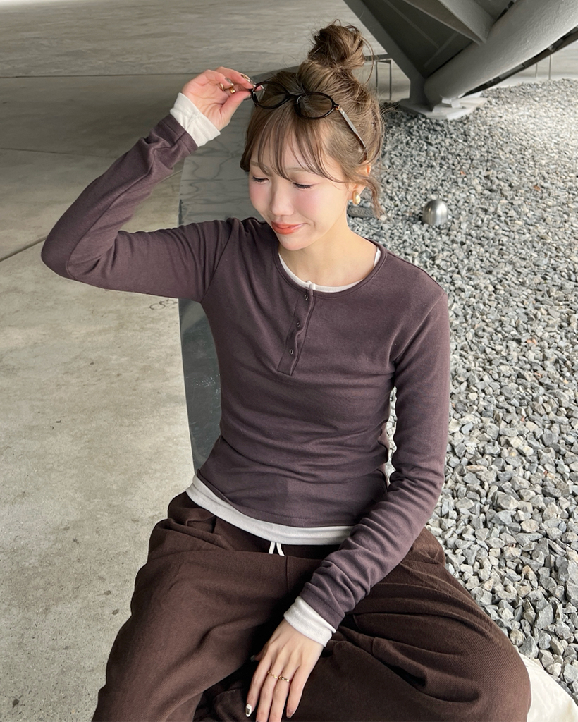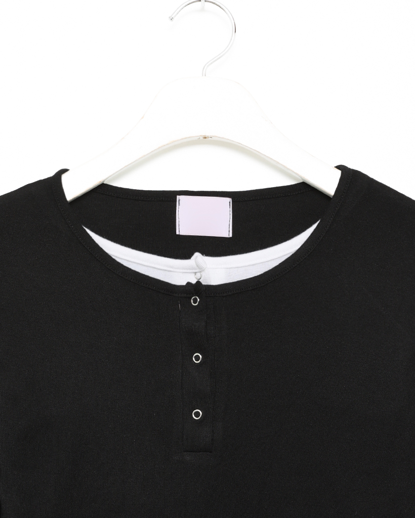 ハーフオープンネックスリムフィットレイヤードTシャツ