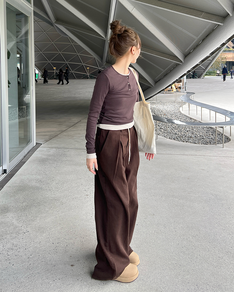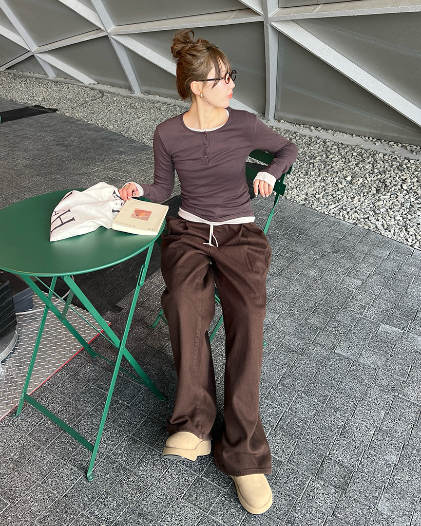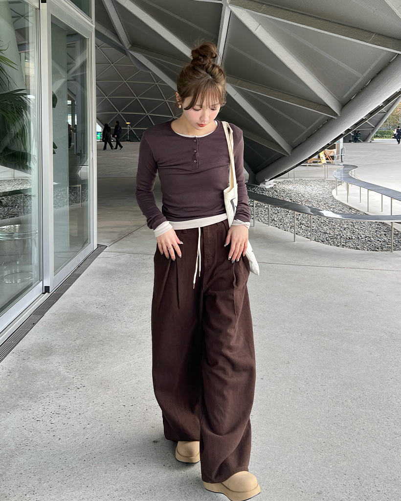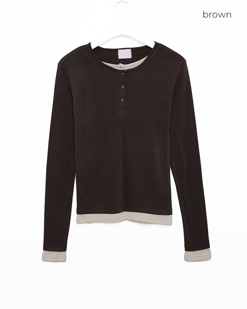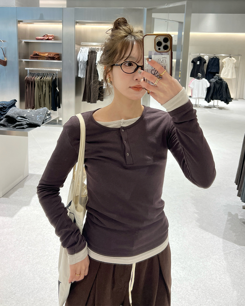 ハーフオープンネックスリムフィットレイヤードTシャツ
