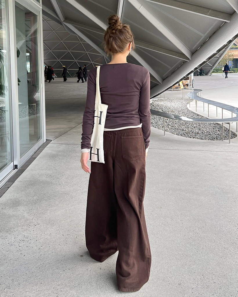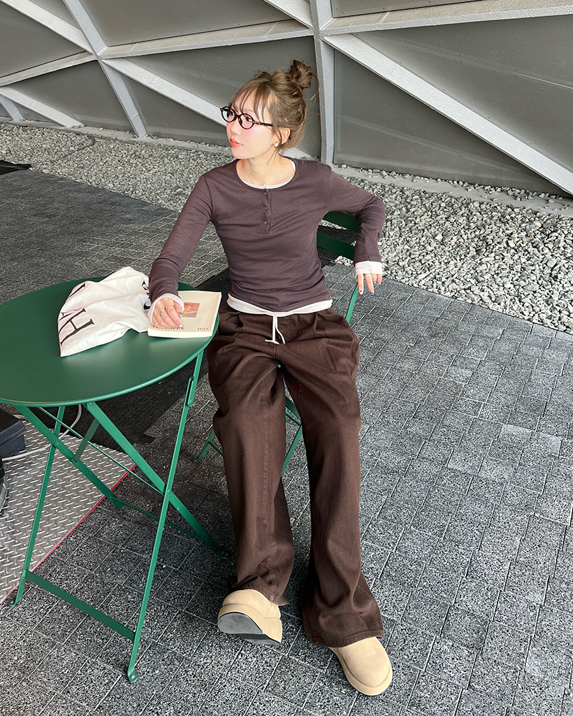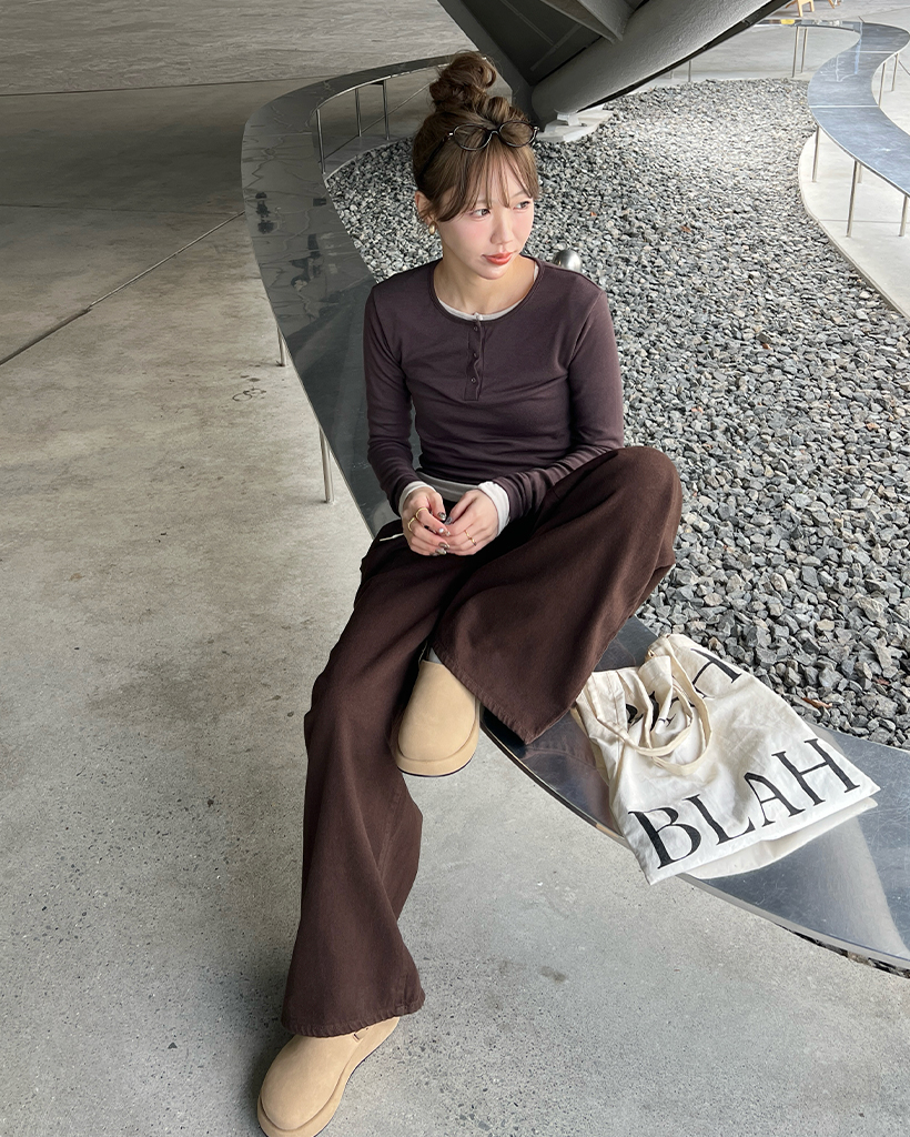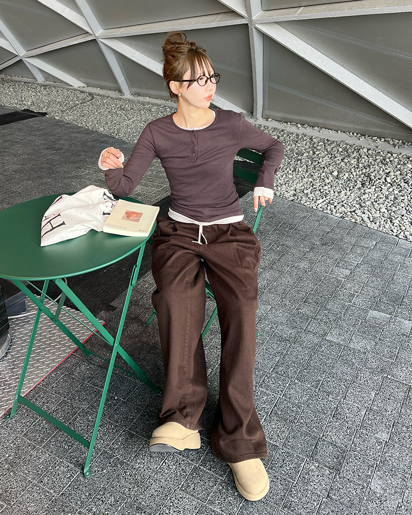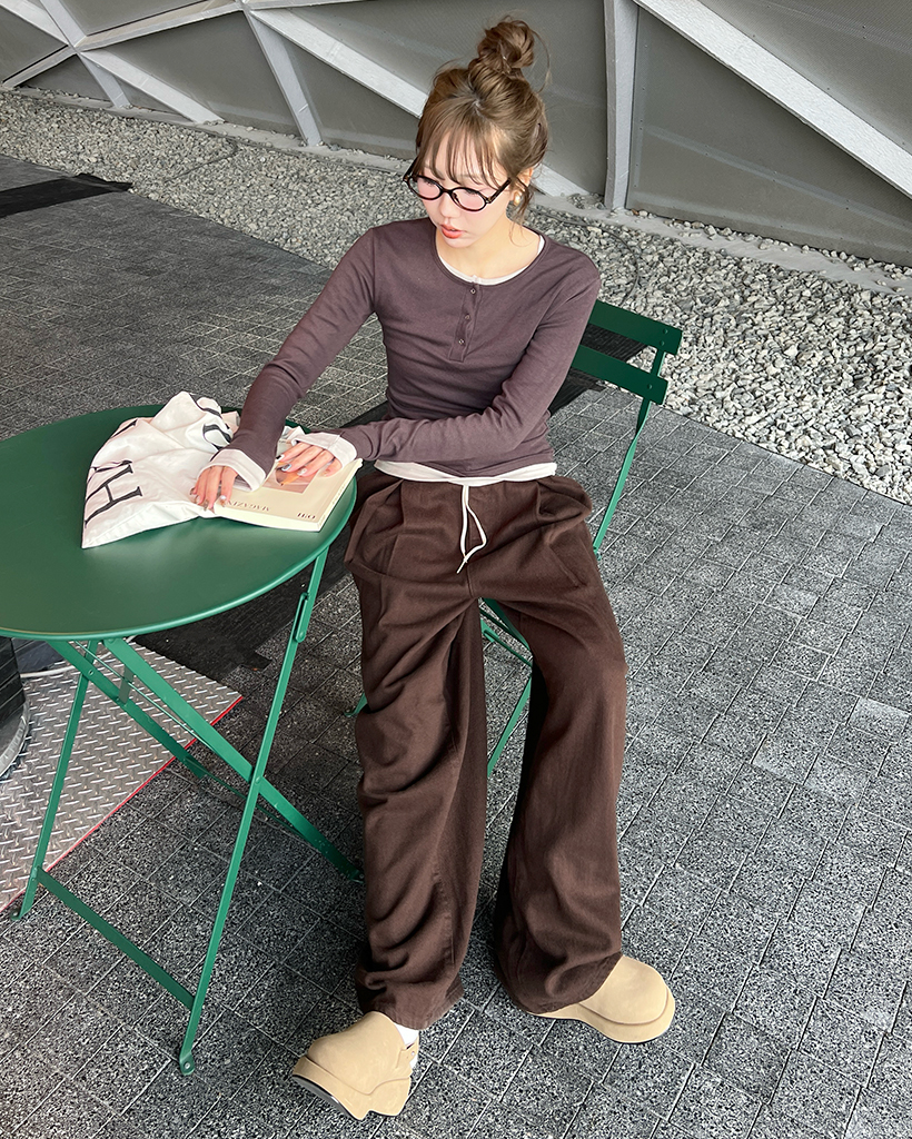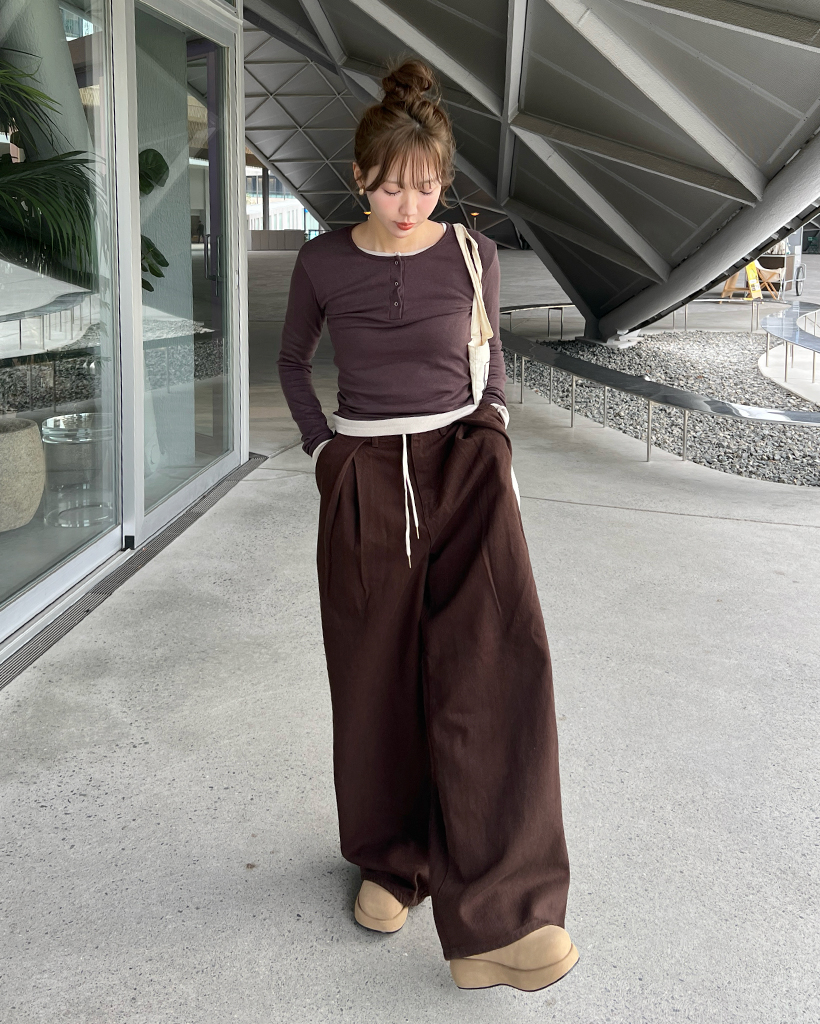 ハーフオープンネックスリムフィットレイヤードTシャツ