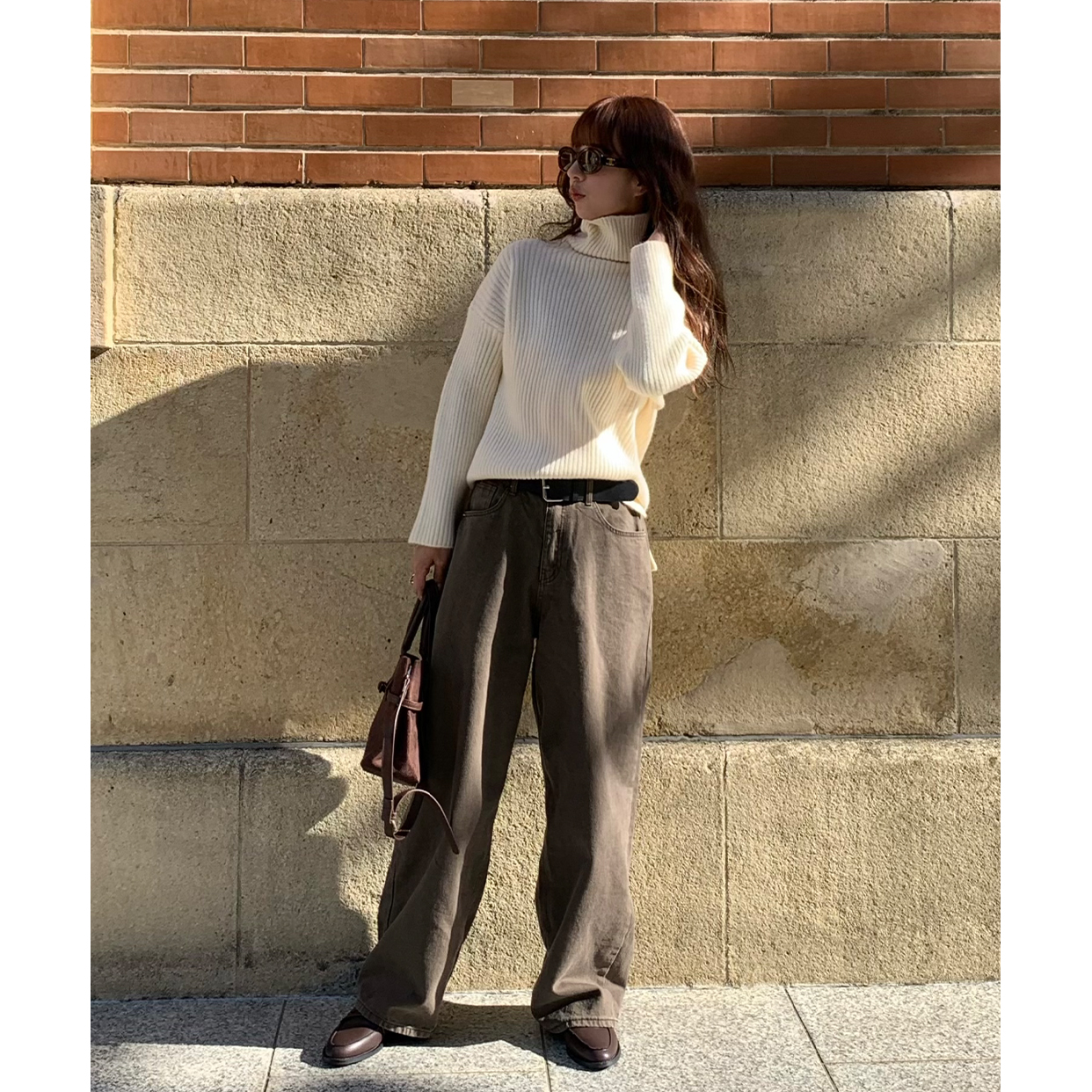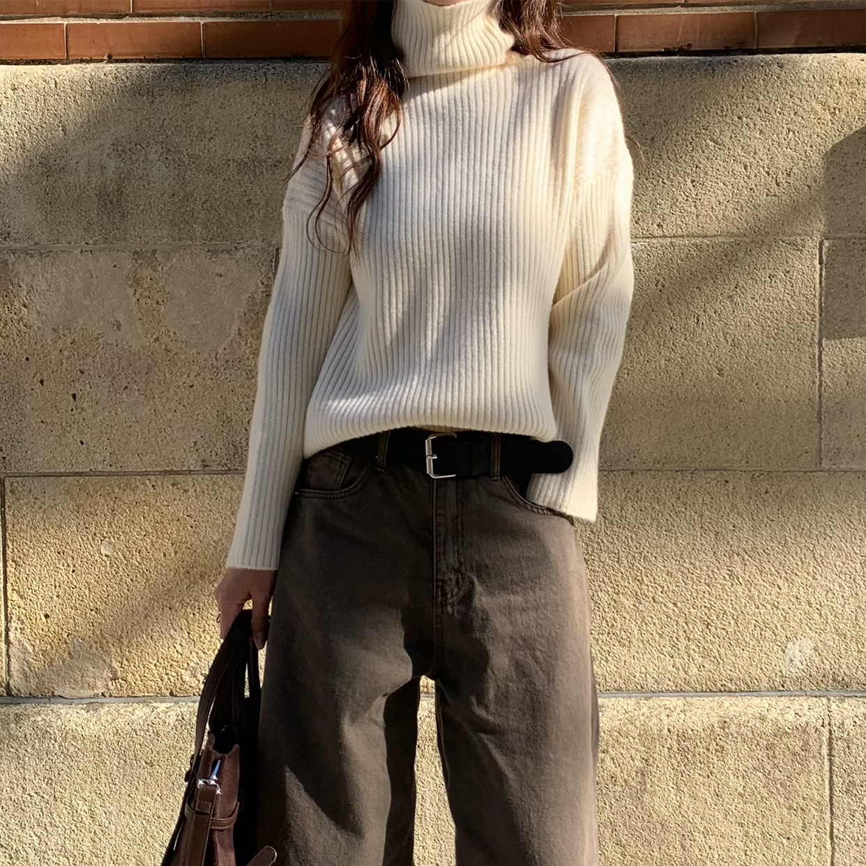 ルーズタートルネックリブニット
