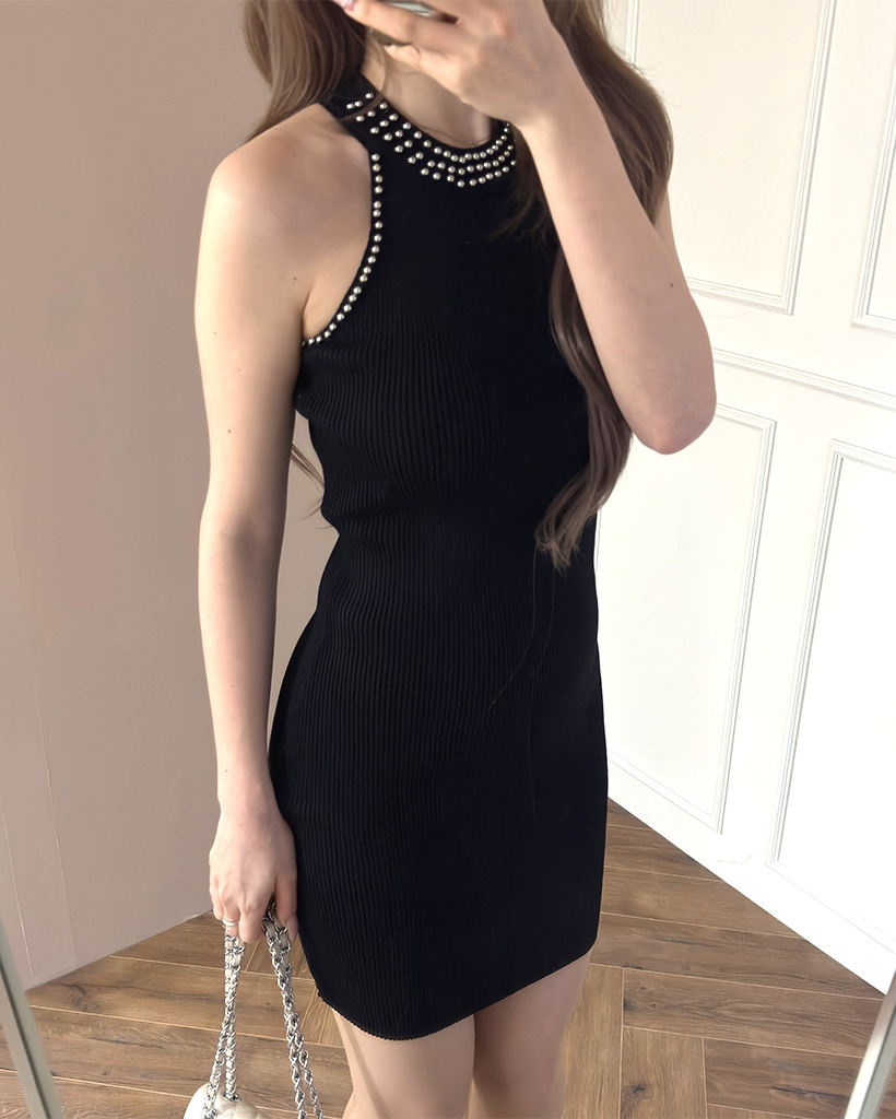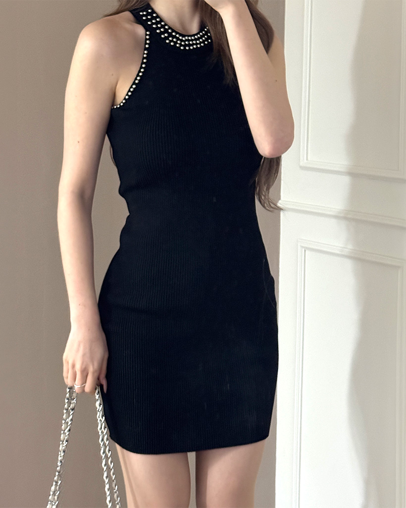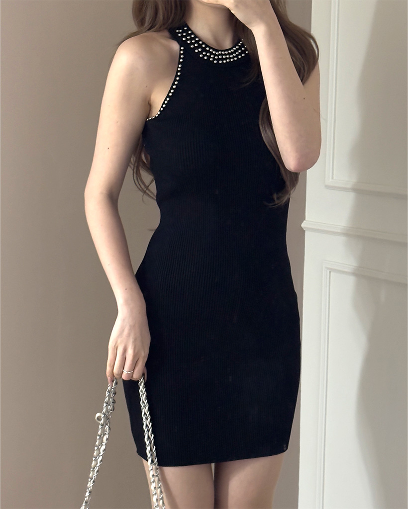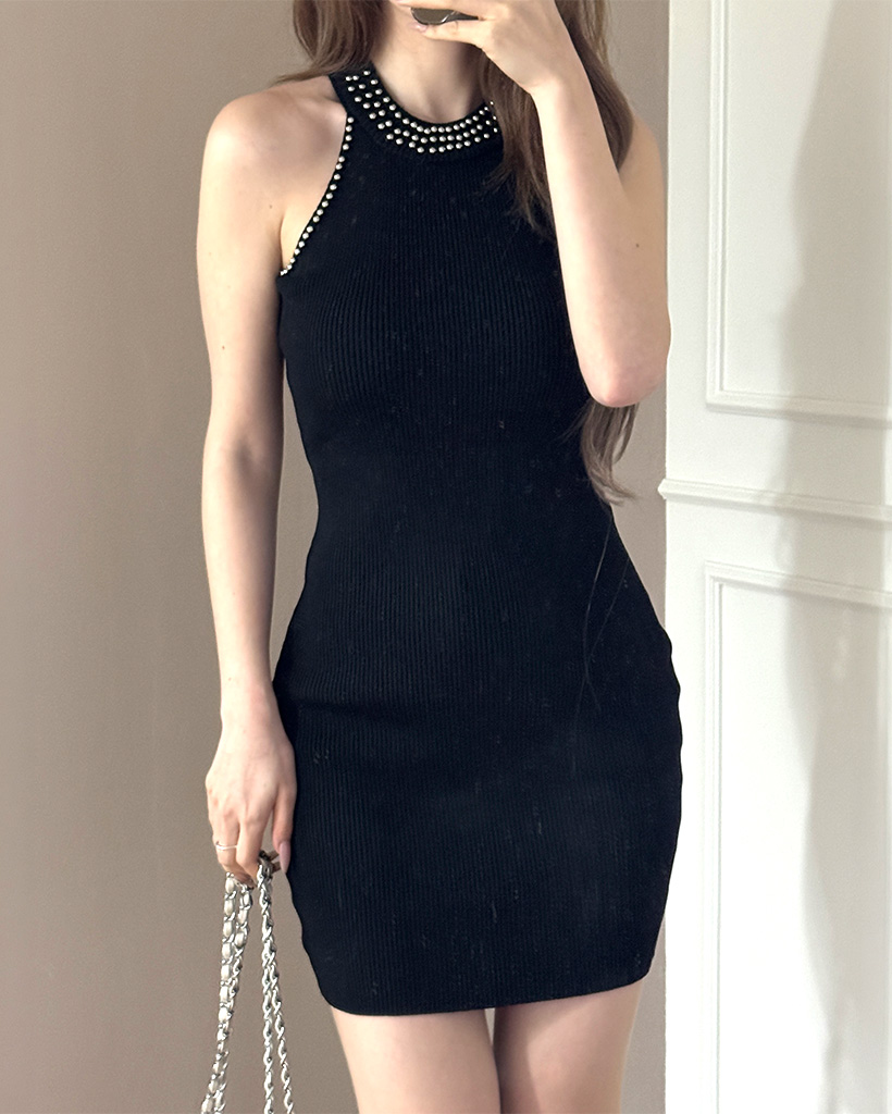 ホルターネックニットミニワンピース
