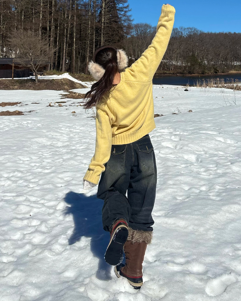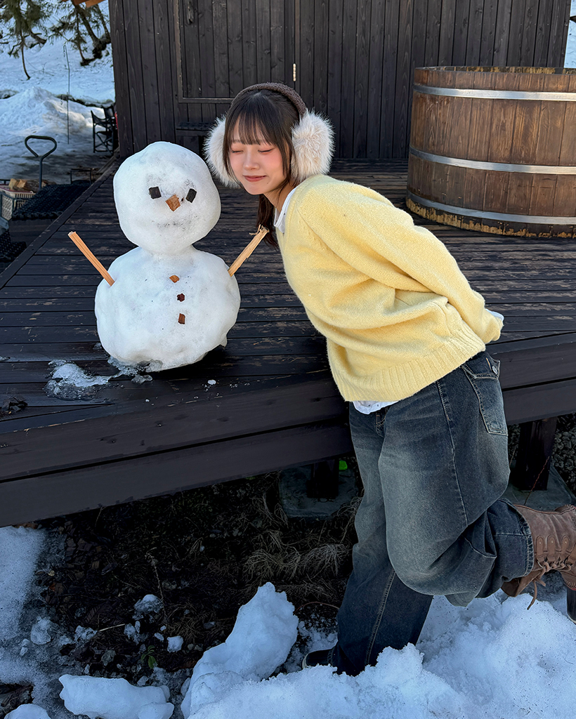 Vネックリブヘムルーズセーター