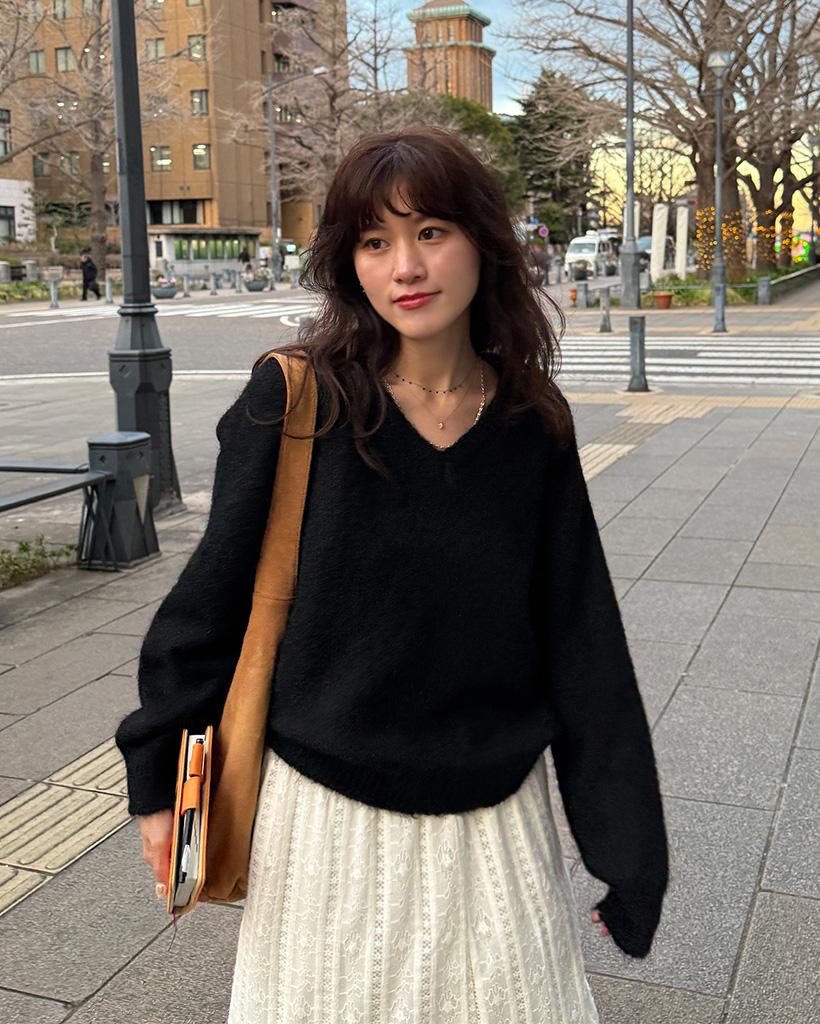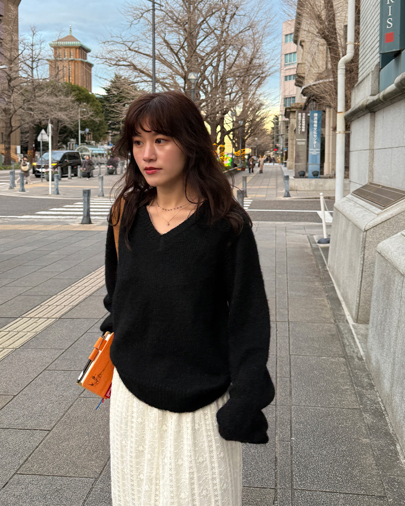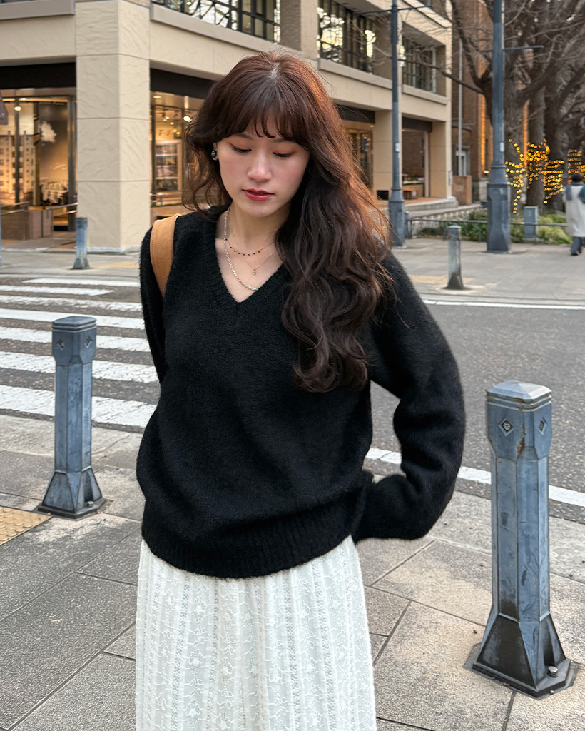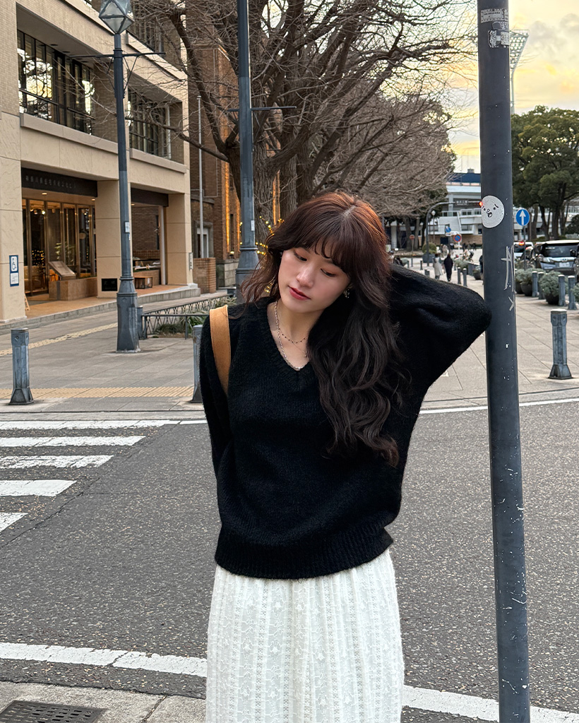 バルーンVネックニット
