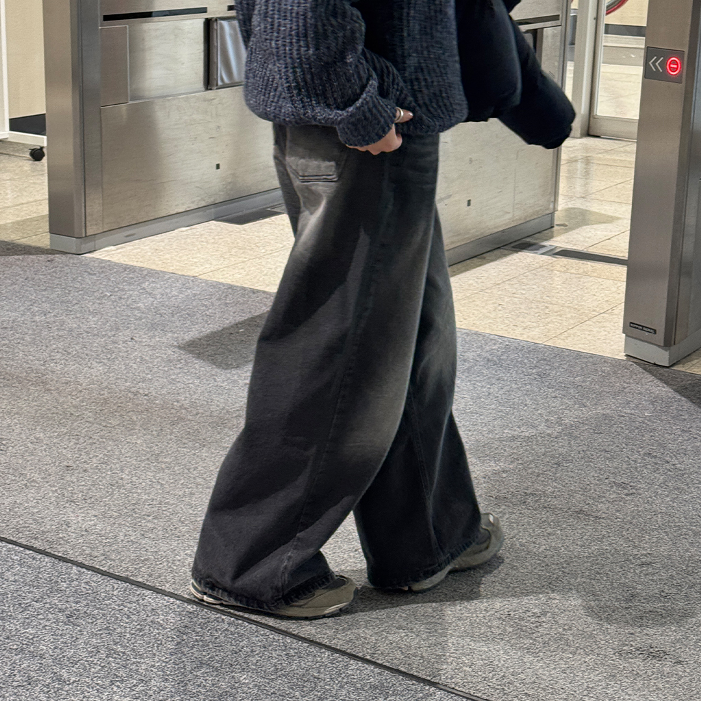 (ユニセックス) ヴィンテージウォッシュデニムパンツ