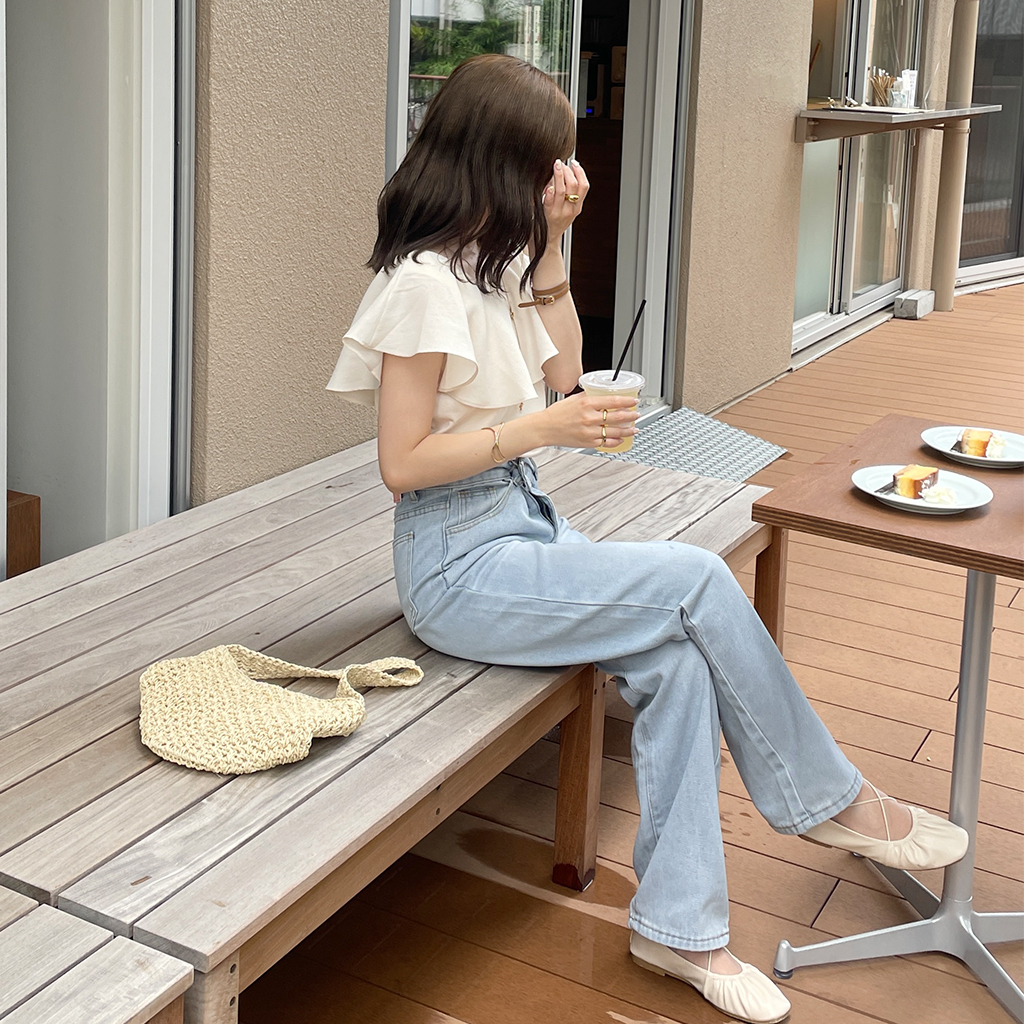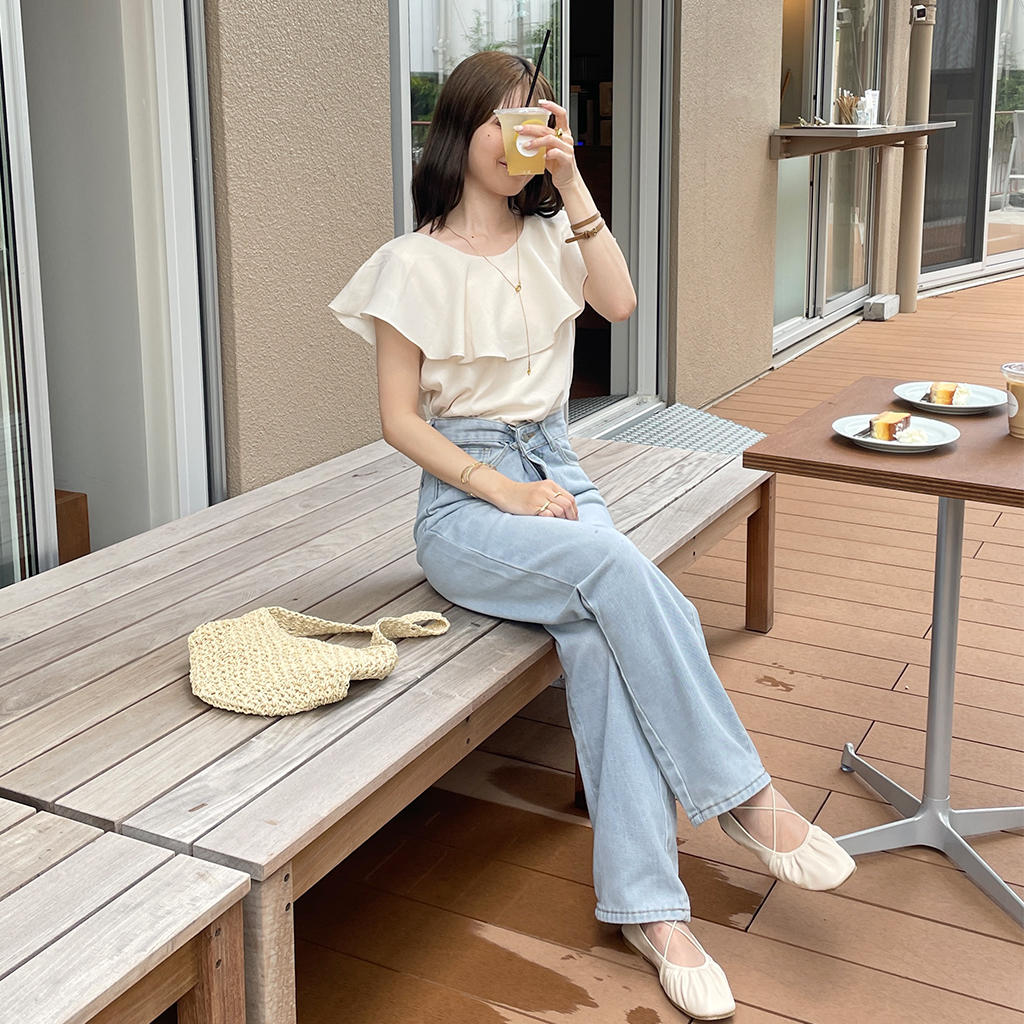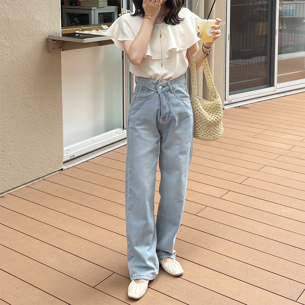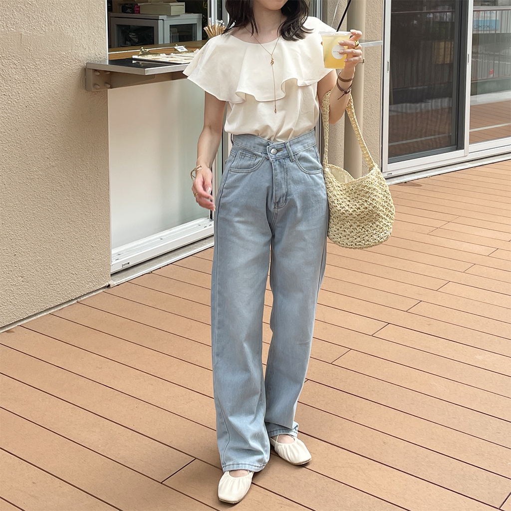 シンプルストレートデニムパンツ