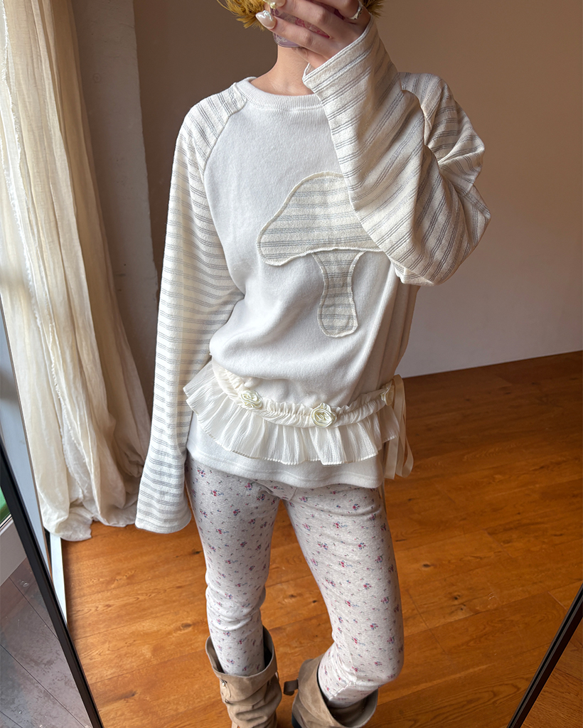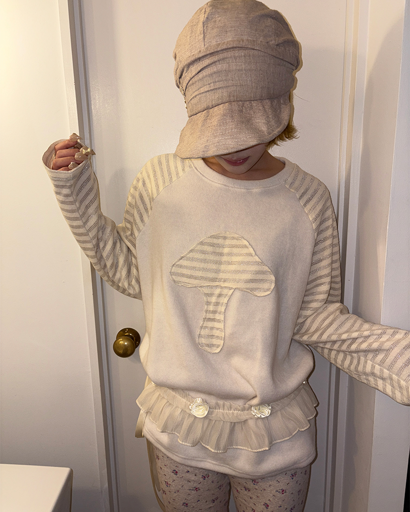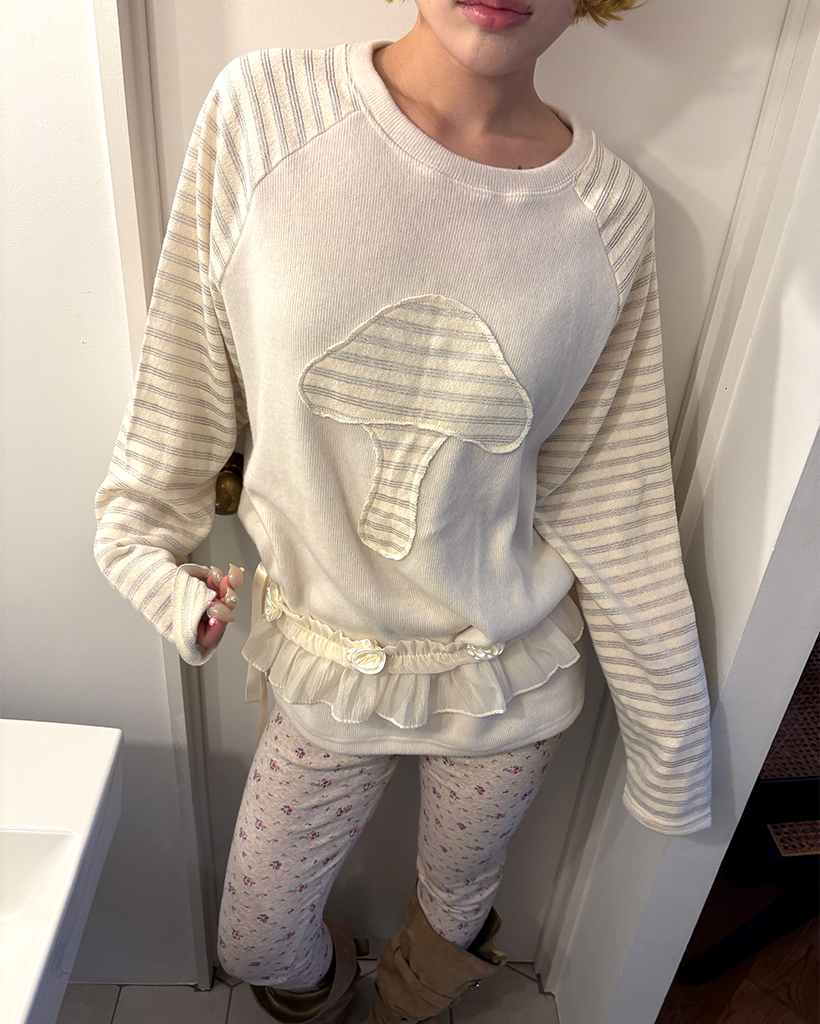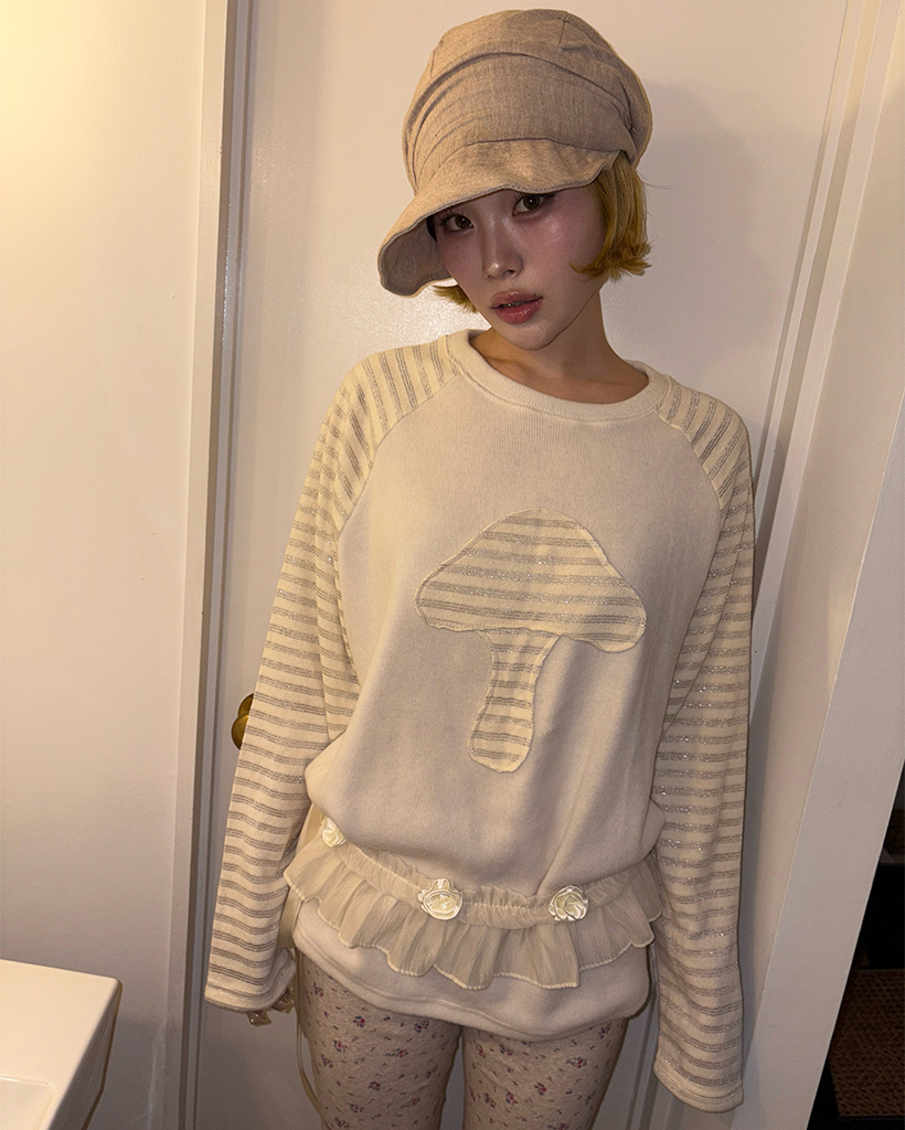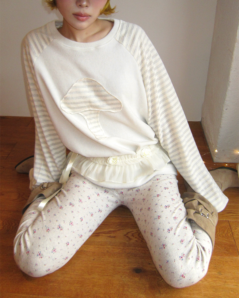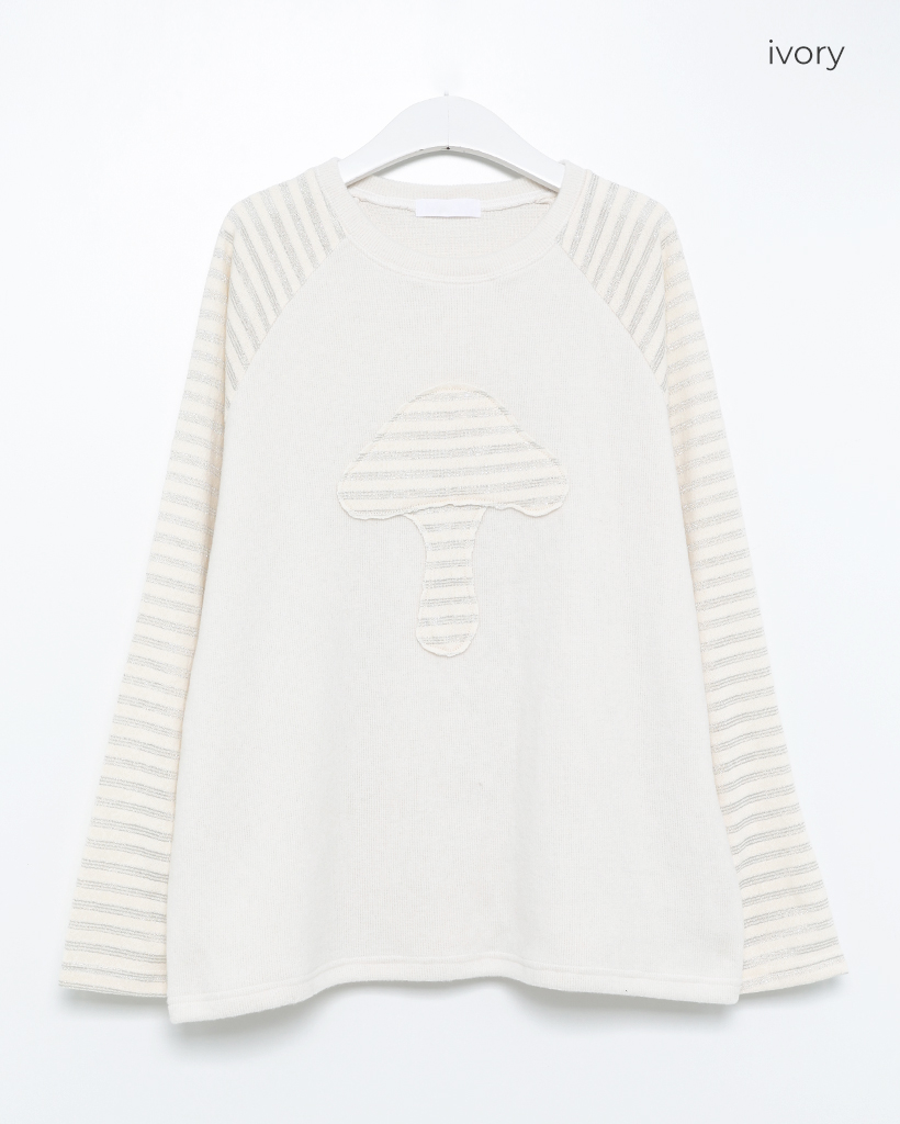 マッシュルームラメボーダーラグランサカリバロングTシャツ