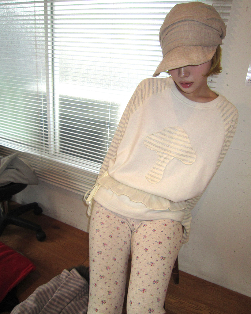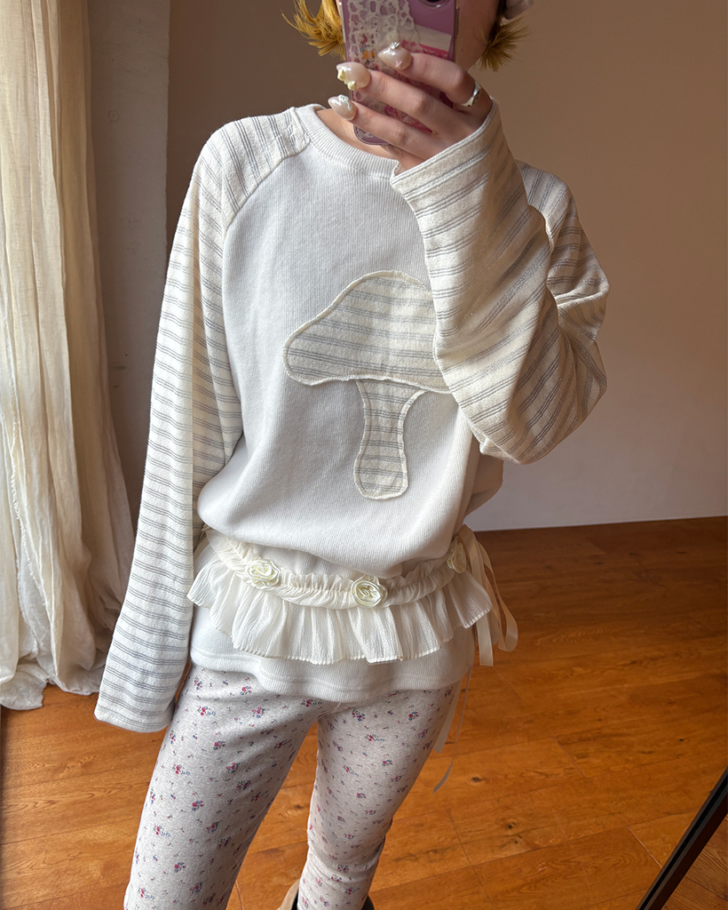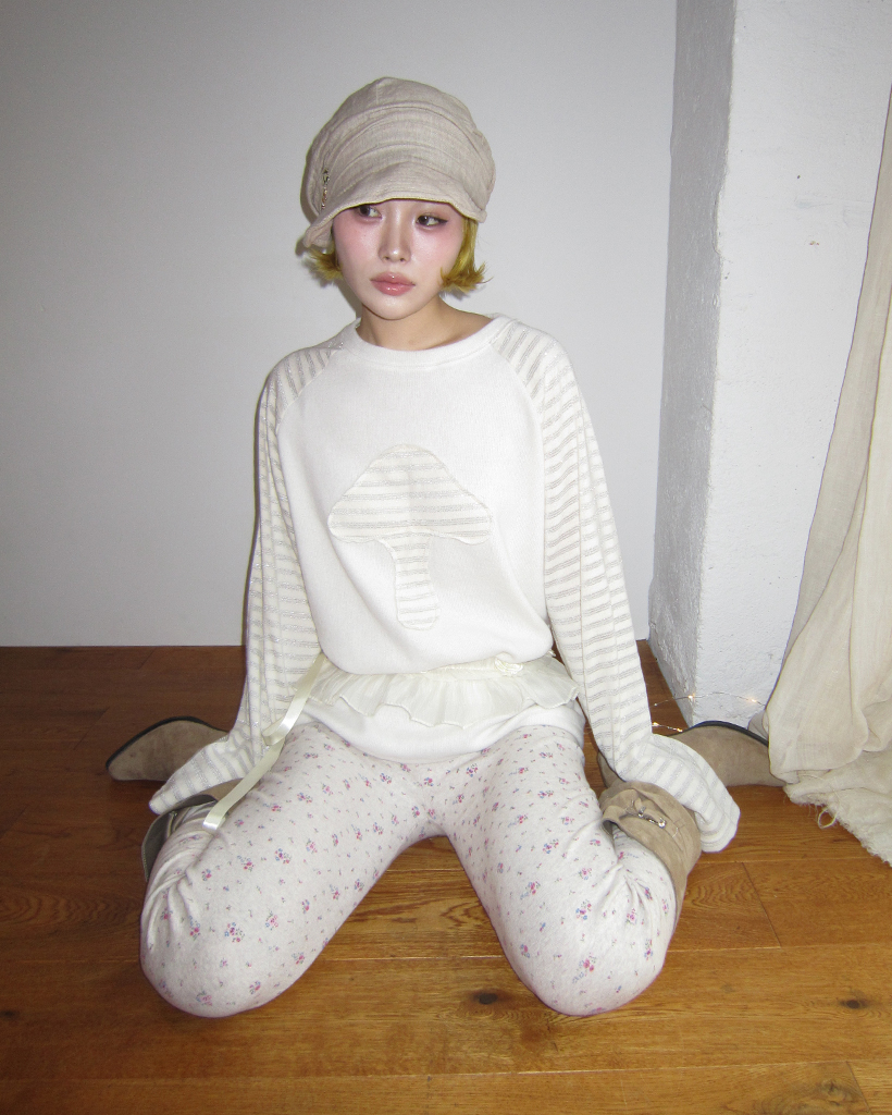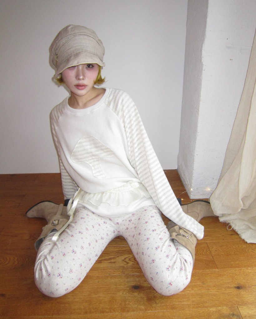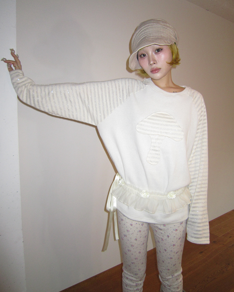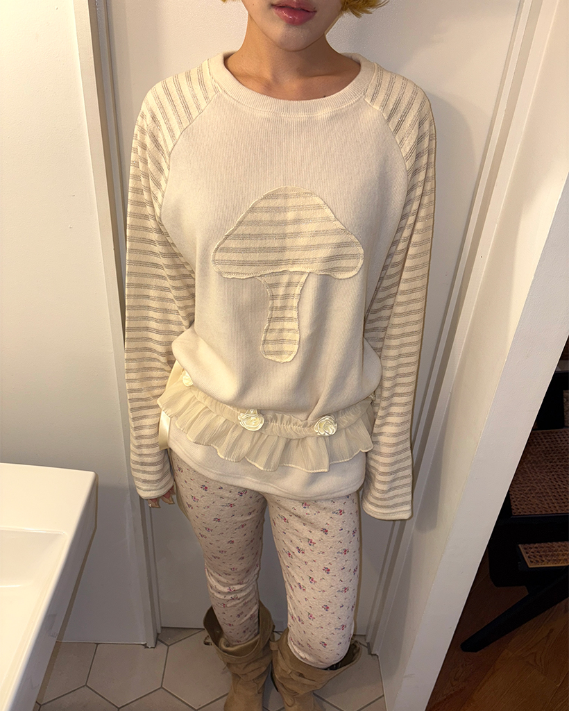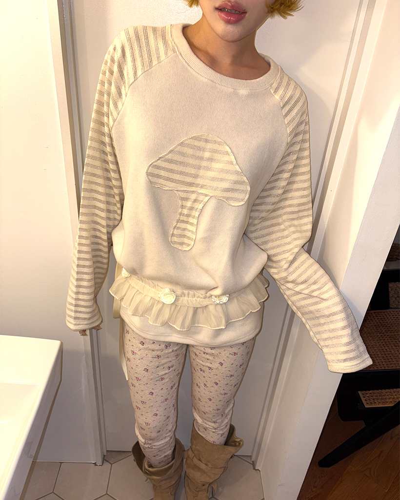マッシュルームラメボーダーラグランサカリバロングTシャツ