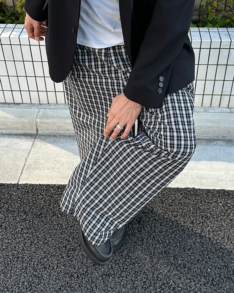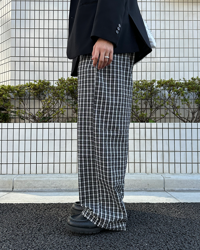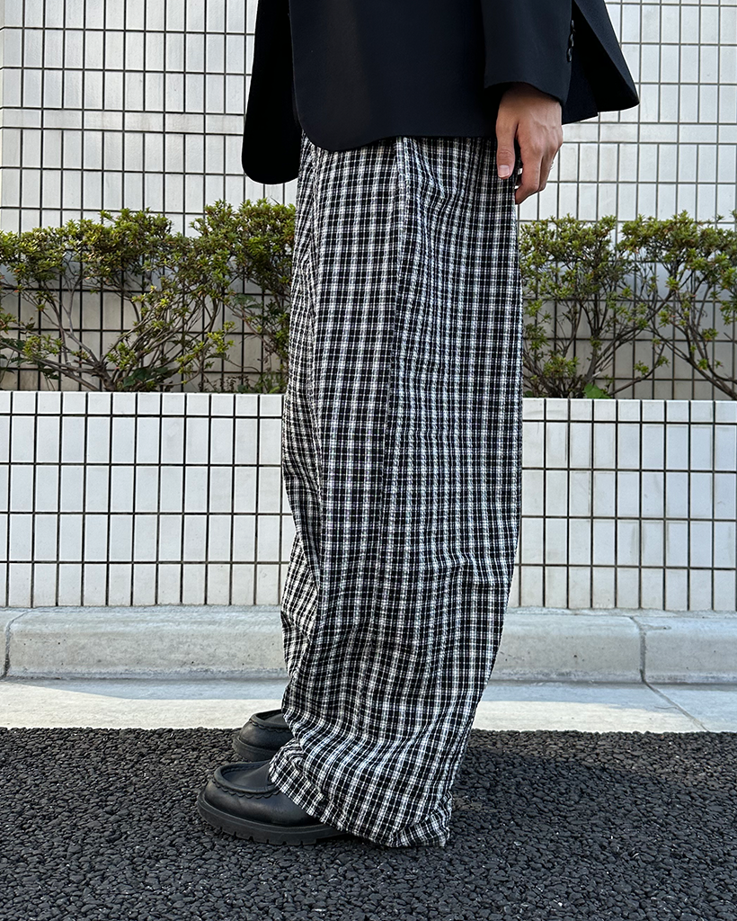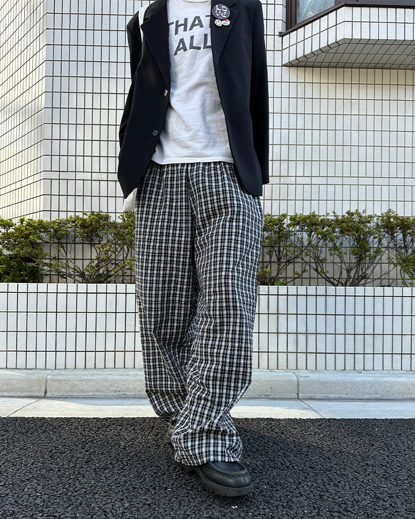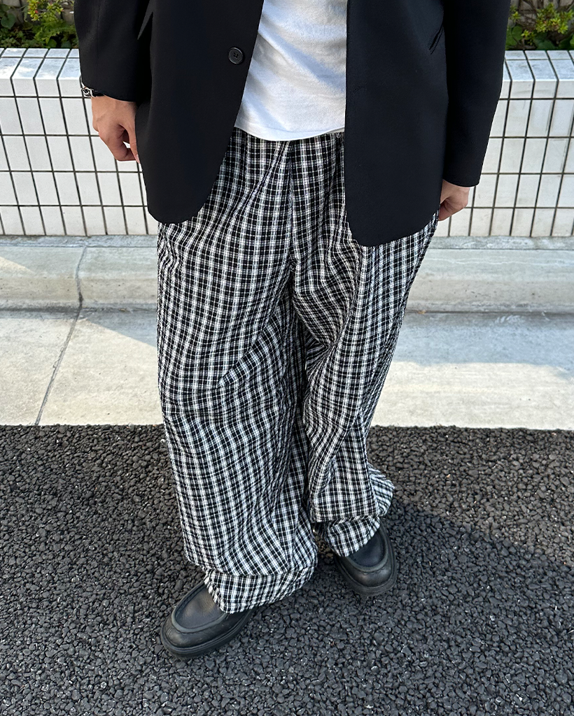 (ユニセックス)チェックウエストゴムパンツ