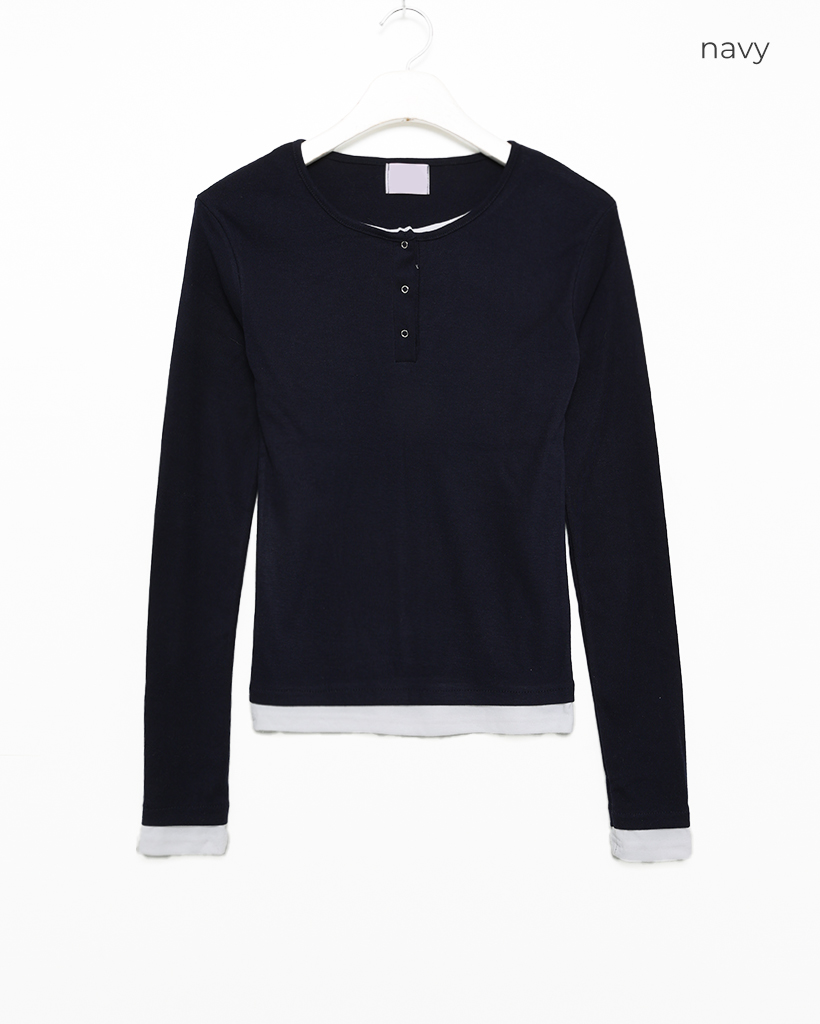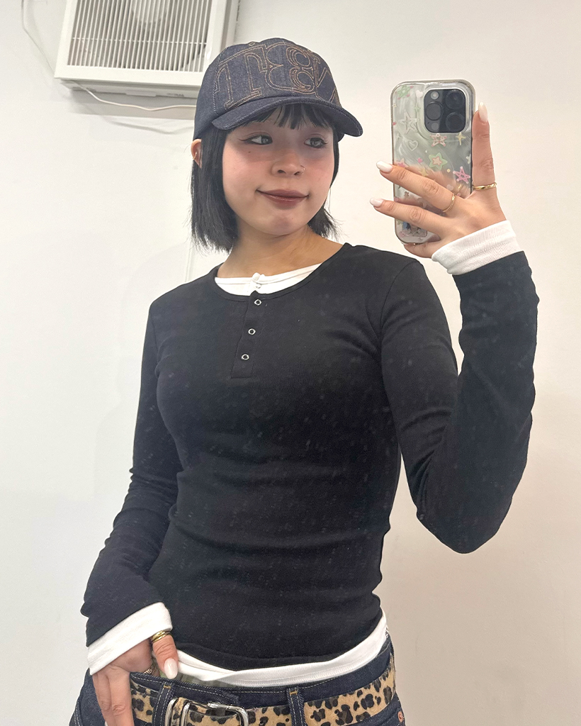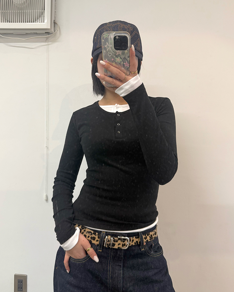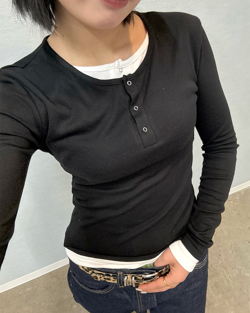 ハーフオープンネックスリムフィットレイヤードTシャツ