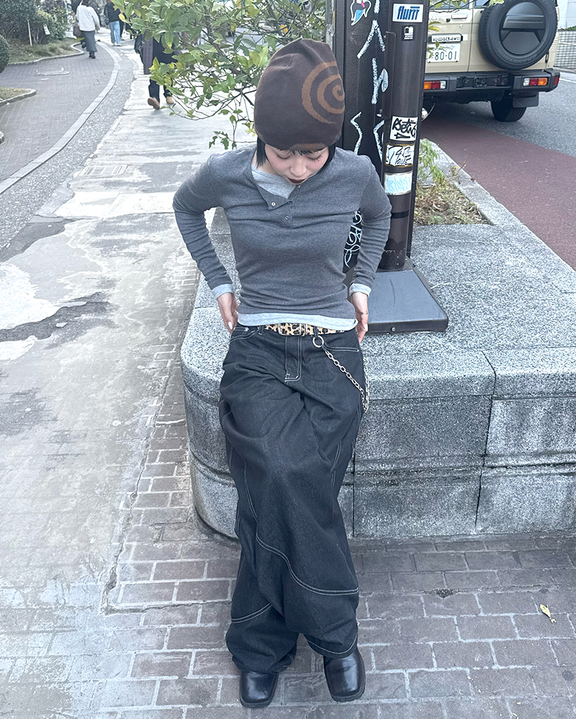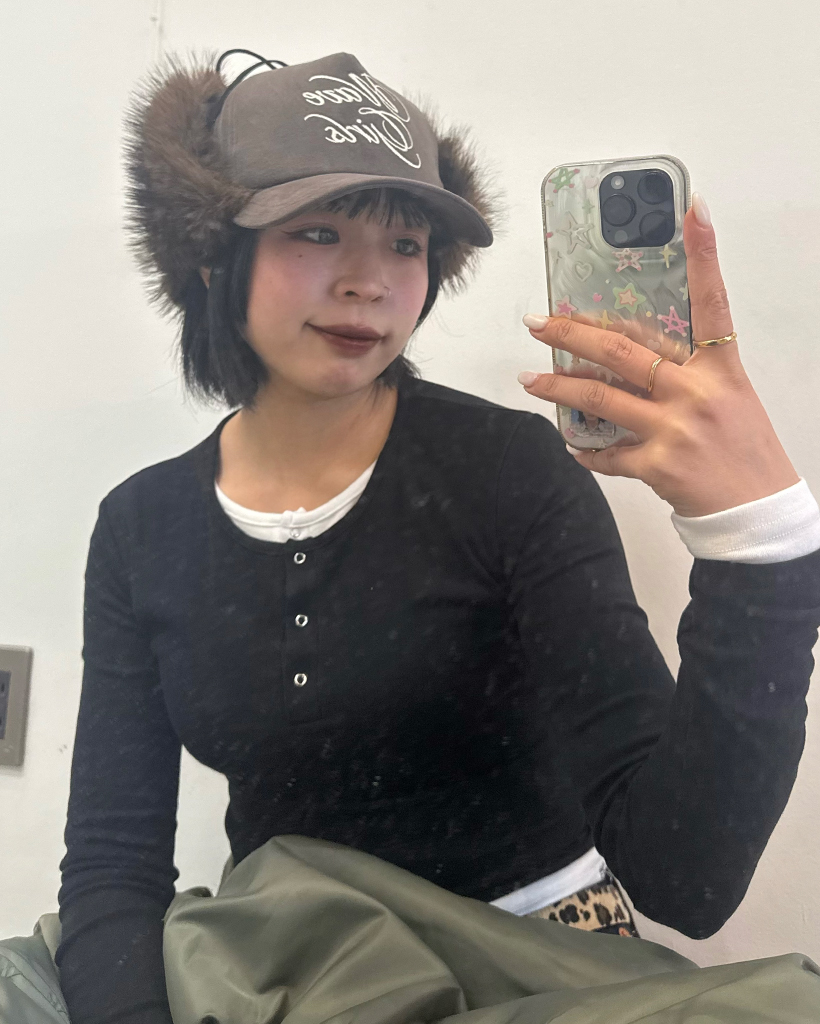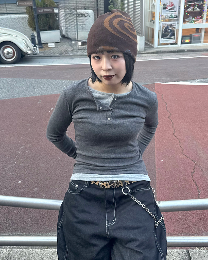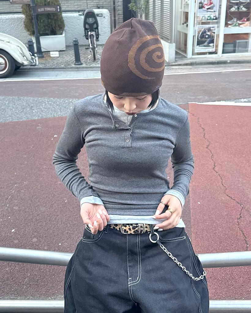 ハーフオープンネックスリムフィットレイヤードTシャツ