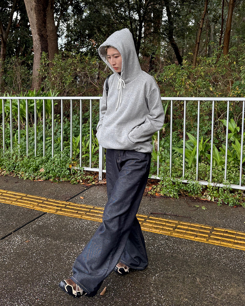 (ユニセックス)裏起毛シンプルカンガルーポケットパーカー
