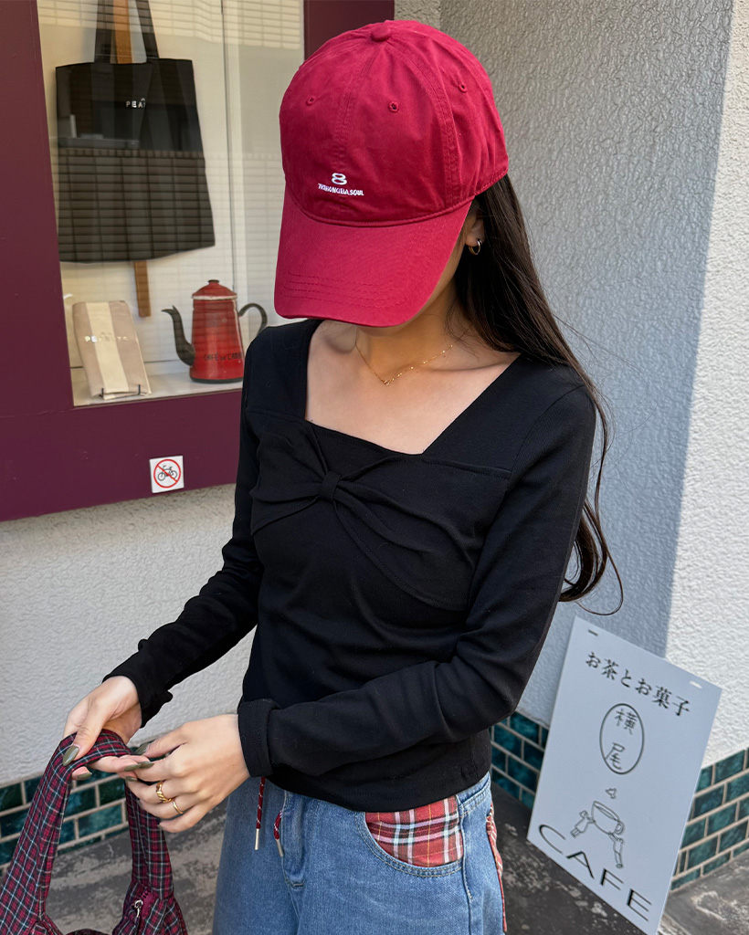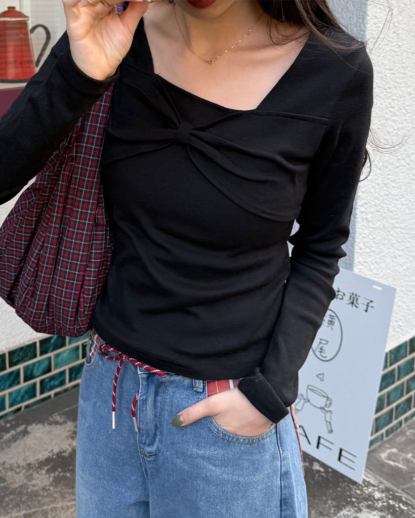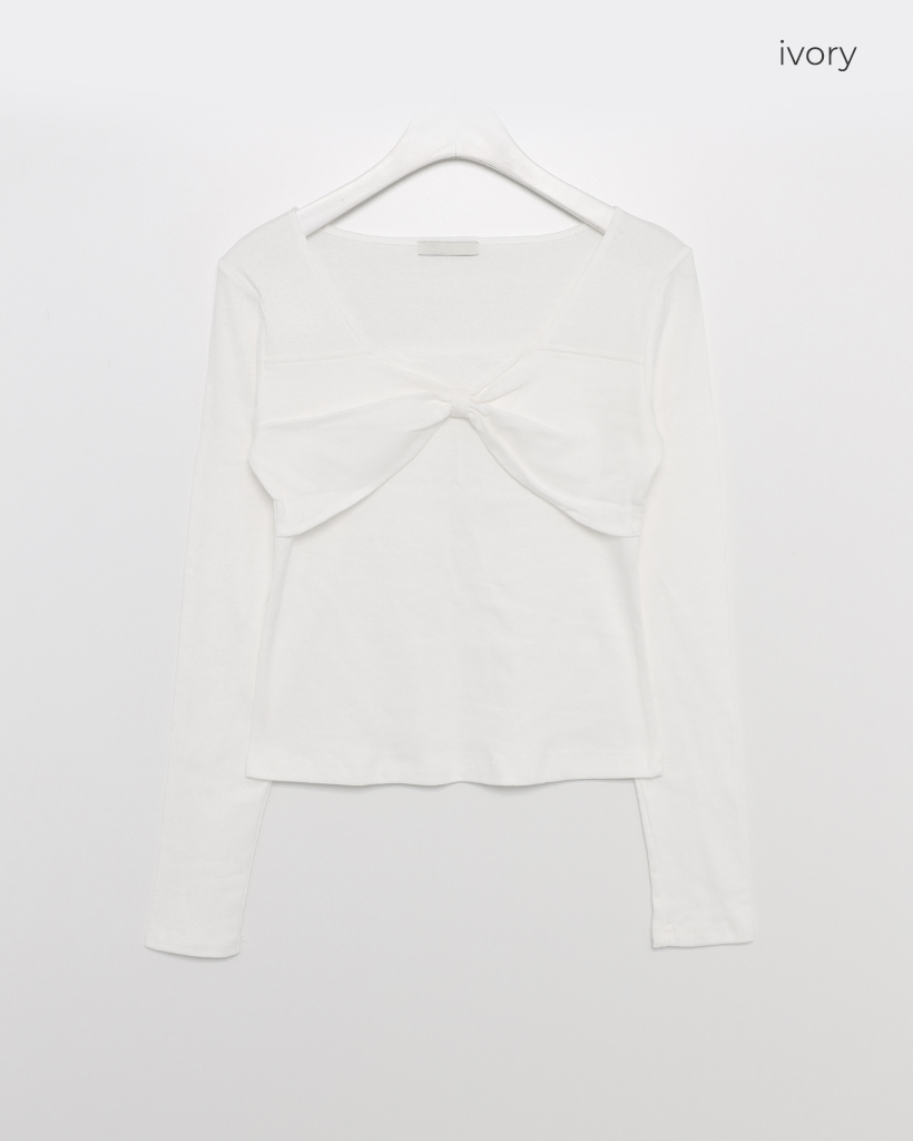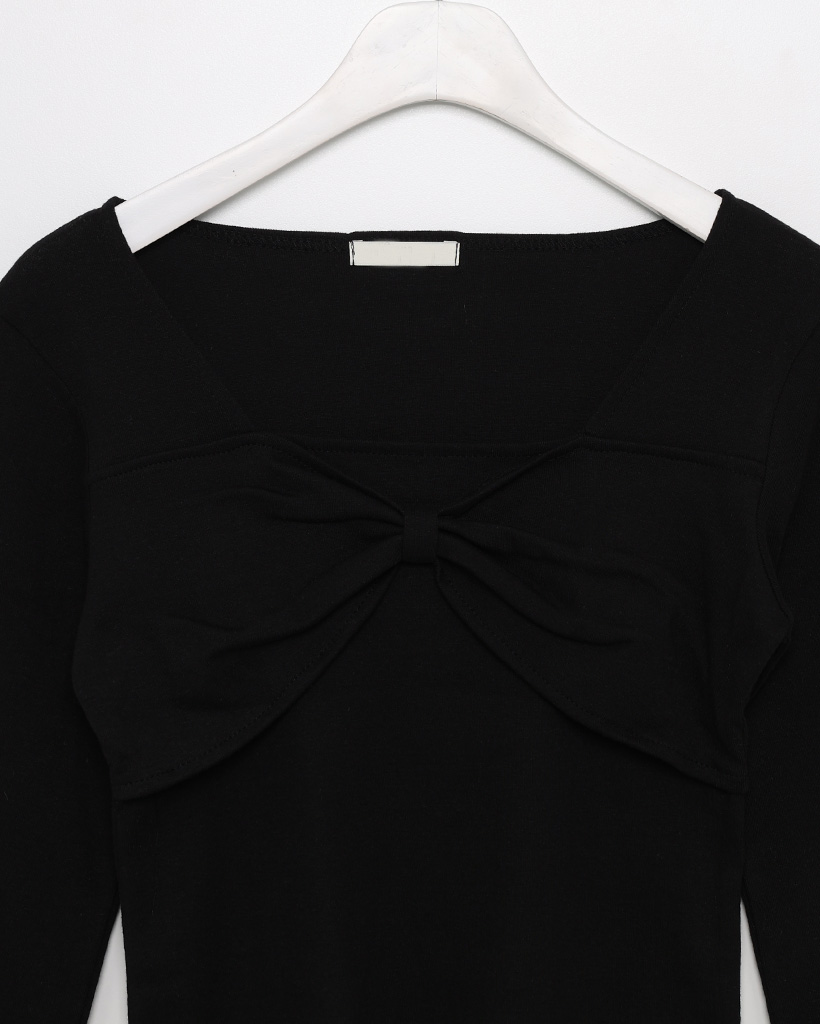 バストリボンポイントスクエアネックTシャツ