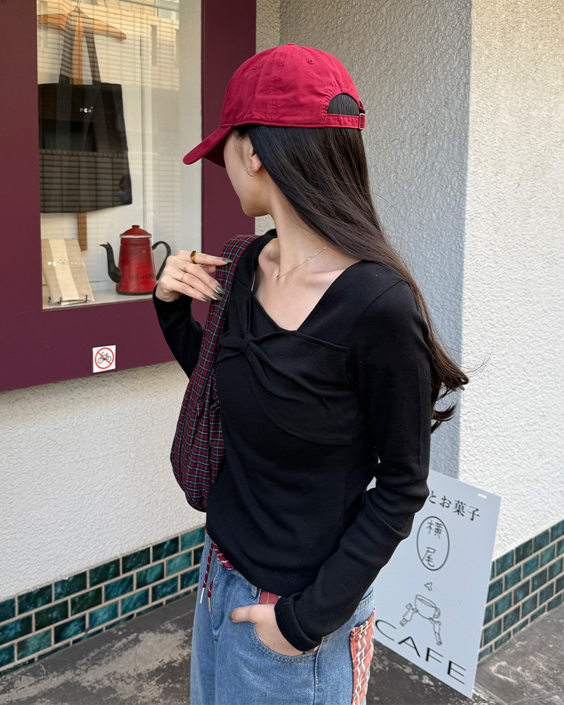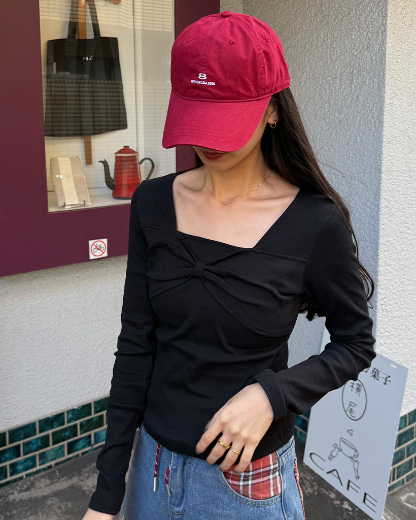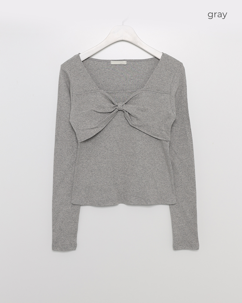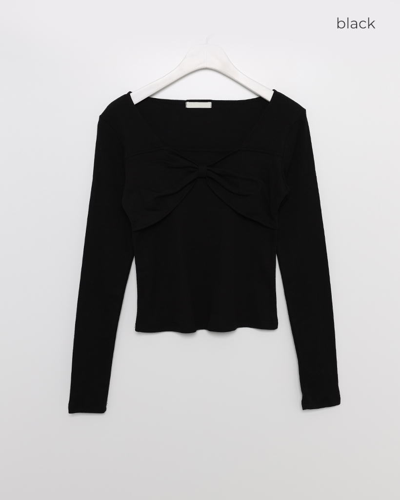 バストリボンポイントスクエアネックTシャツ