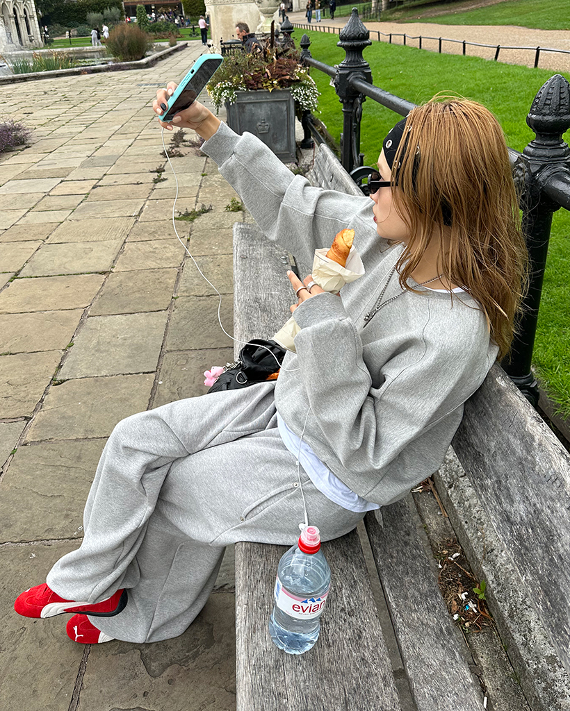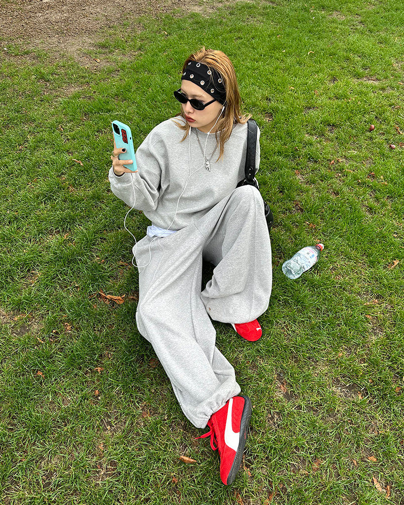 ラウンドネックスリーブパイピングスウェットシャツ