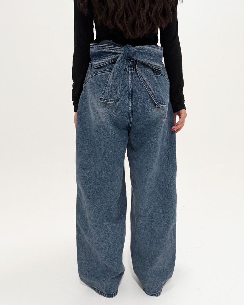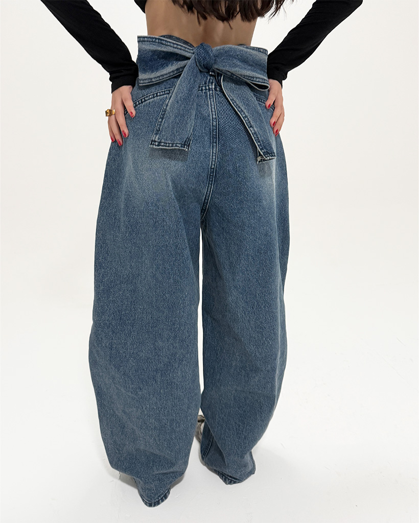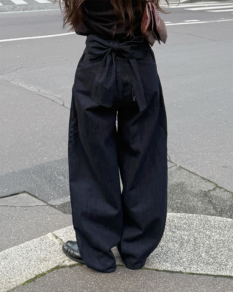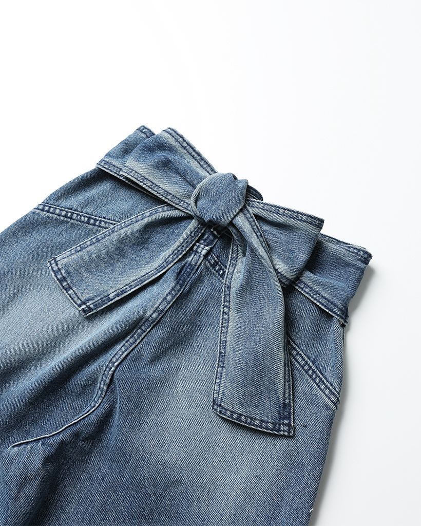 [4回再販](ORIGINAL) リボンタックバルーンデニムパンツ