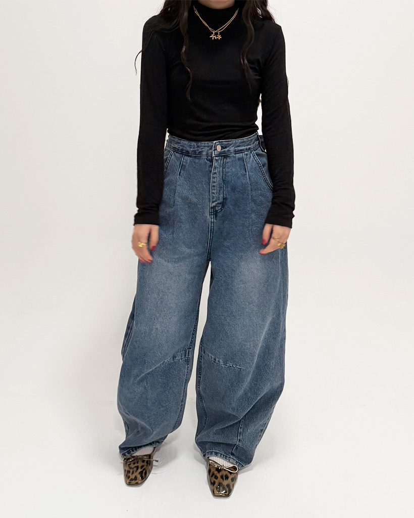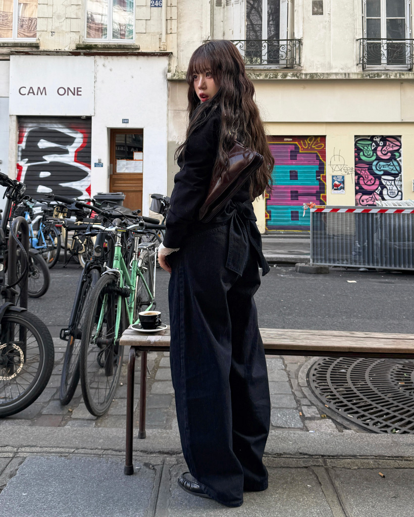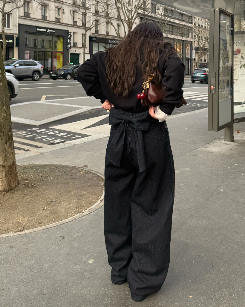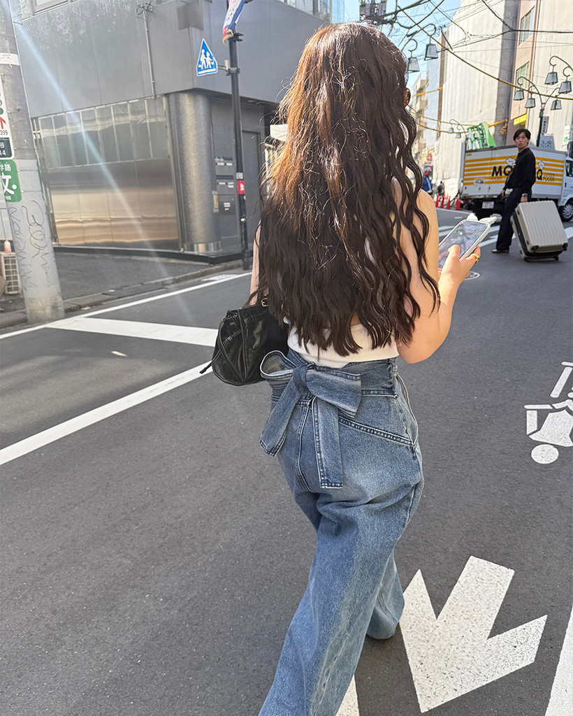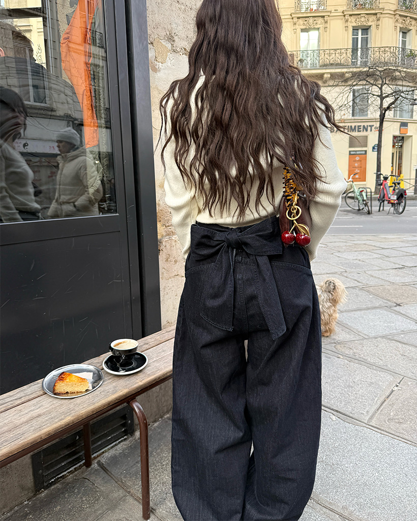 [4回再販](ORIGINAL) リボンタックバルーンデニムパンツ