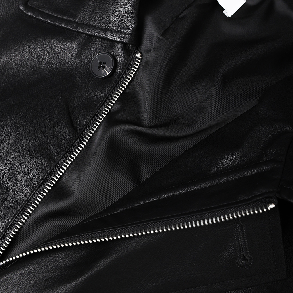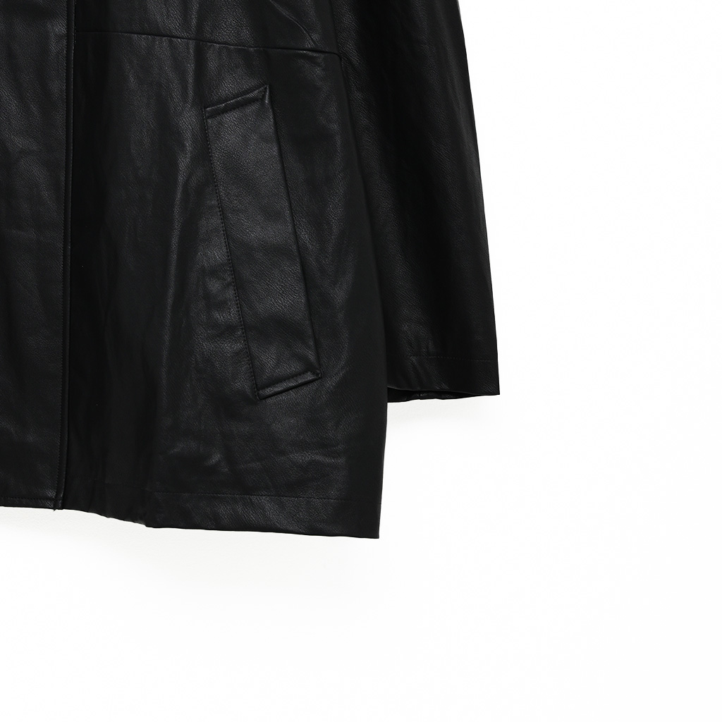 (unisex) フライフロントボタンハーフレザーコート