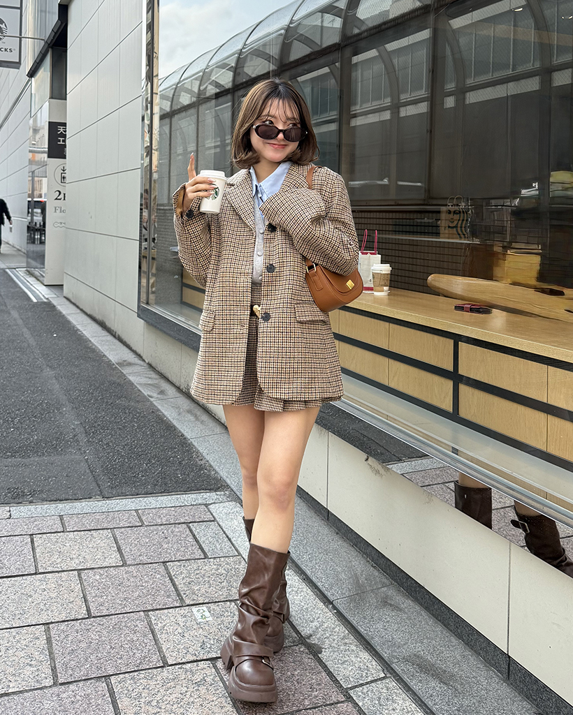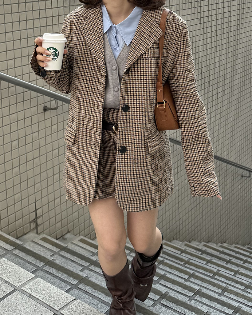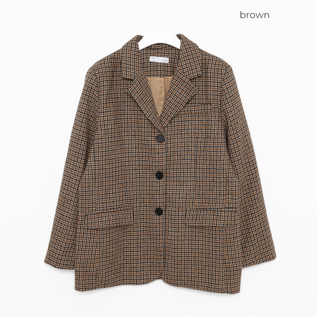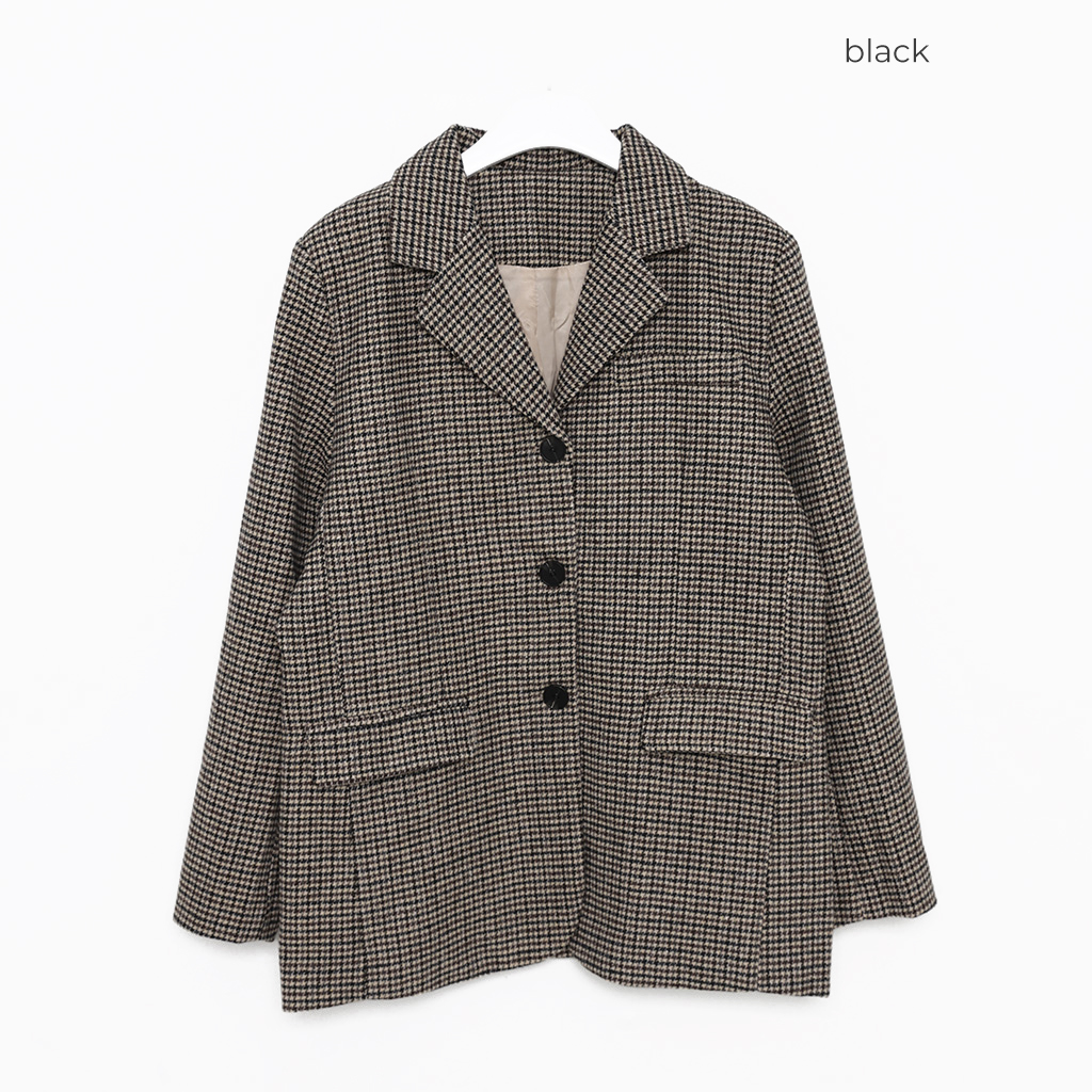 ハウンドトゥースチェックウールシングルジャケット