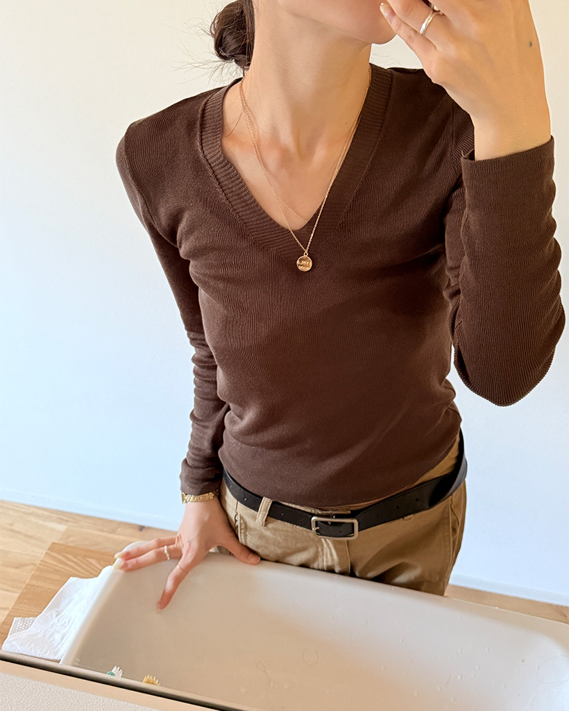 Vネックスリムフィットニット