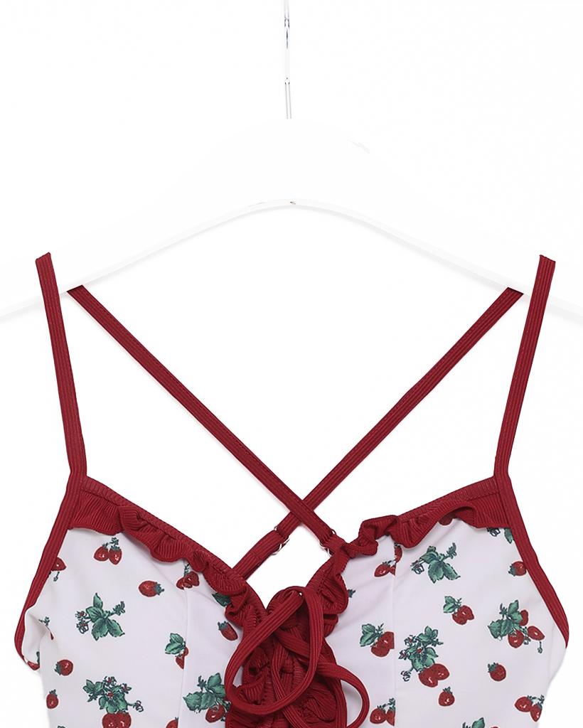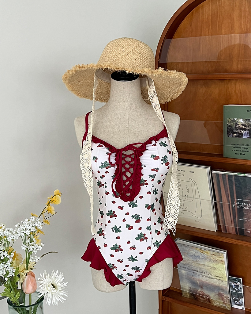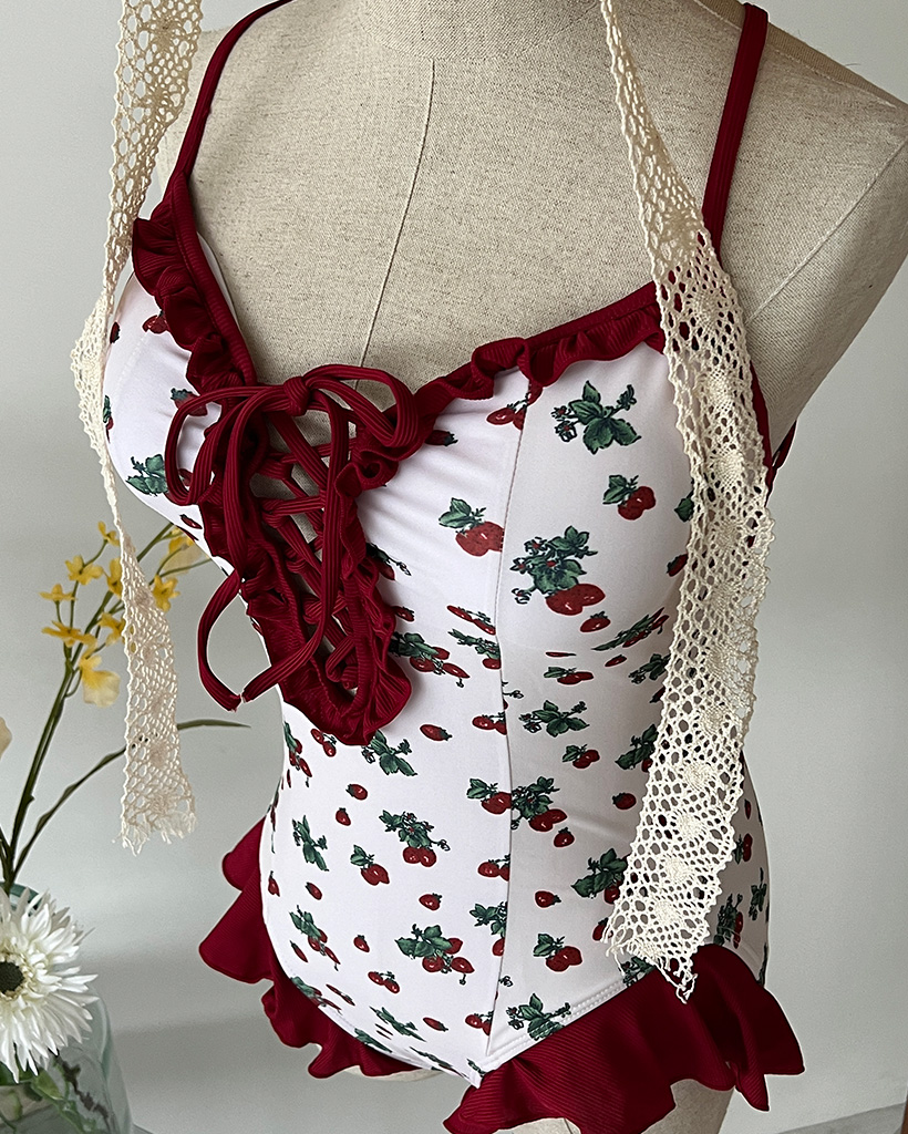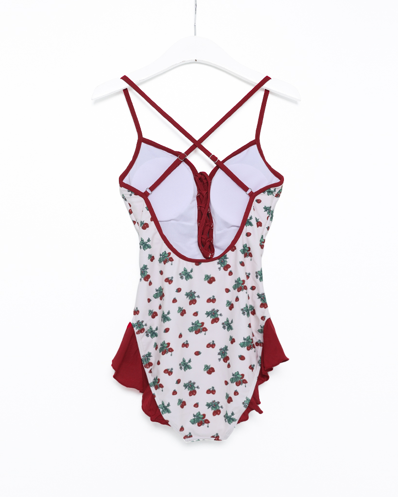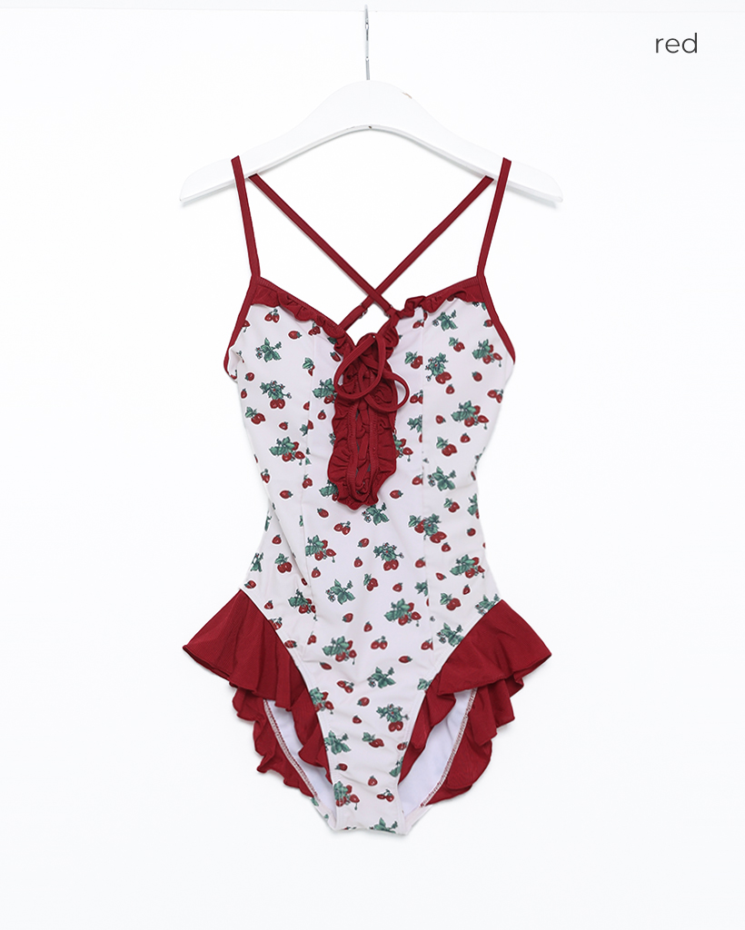 レッドフラワーポイントワンピスイムウエア