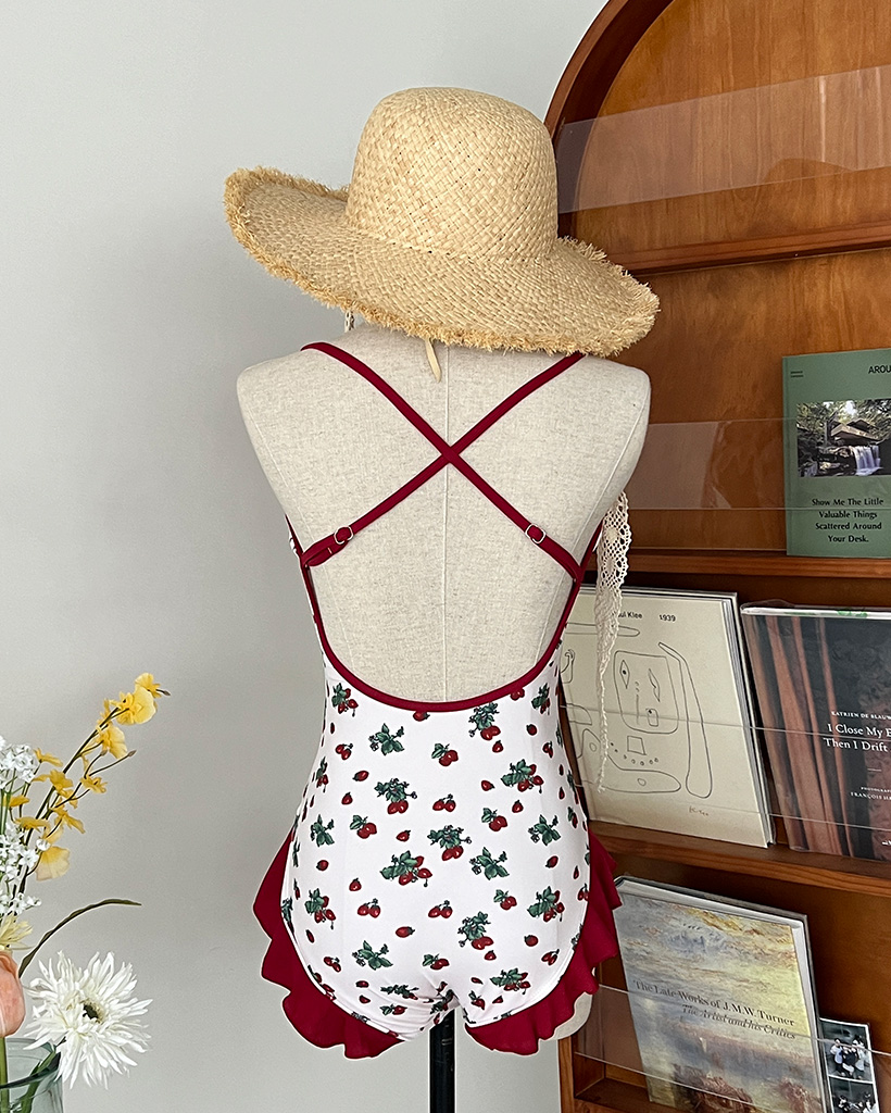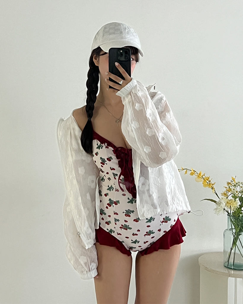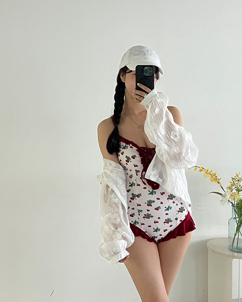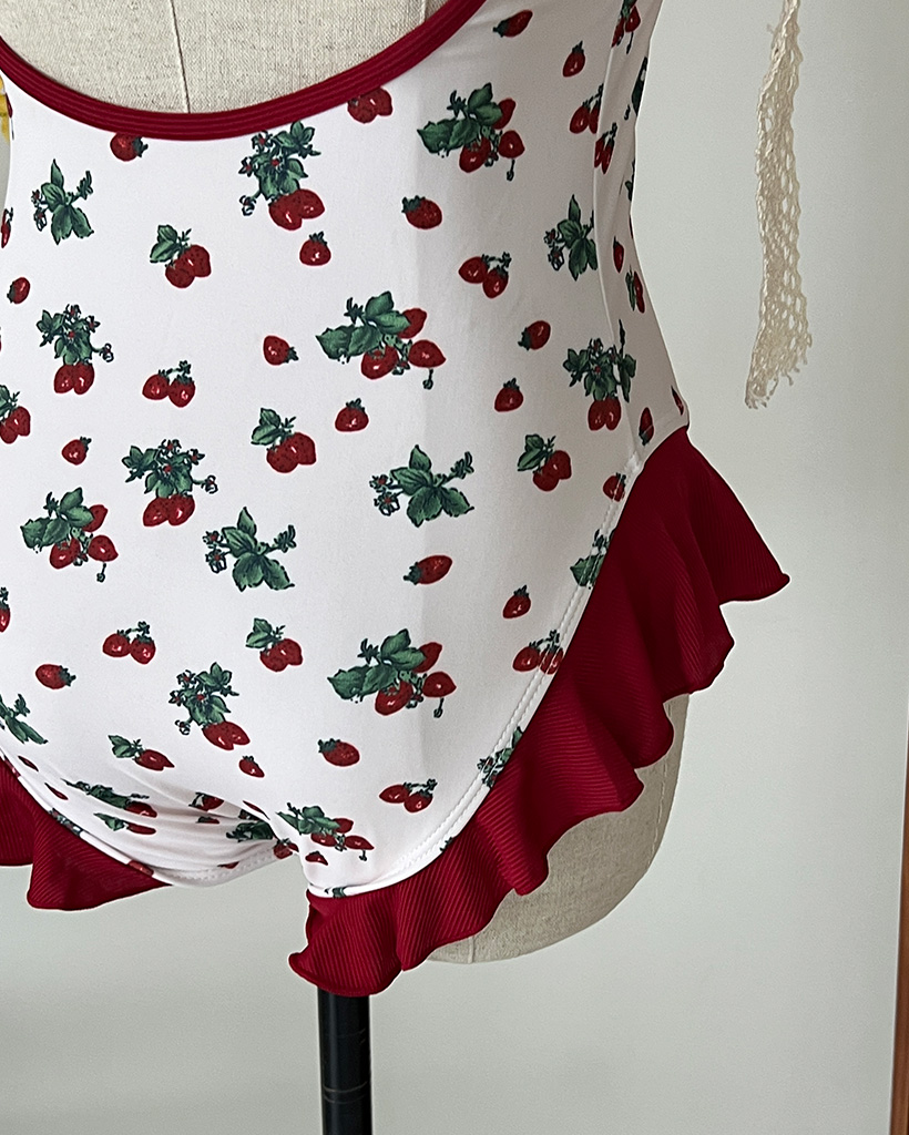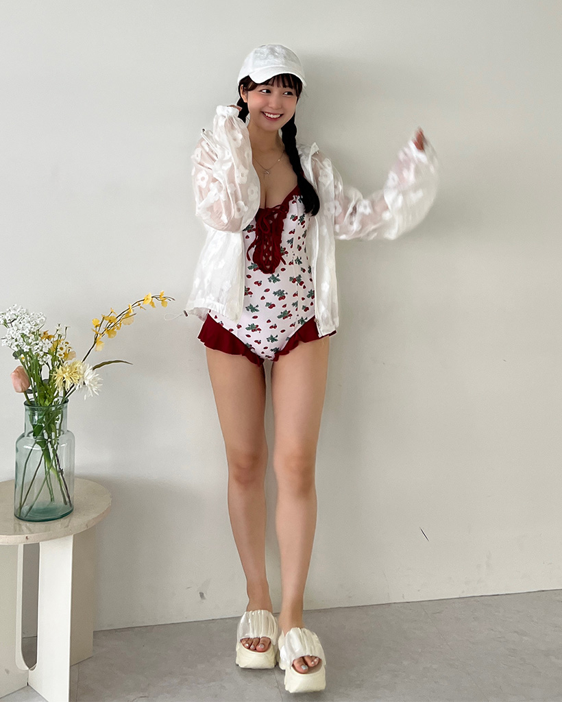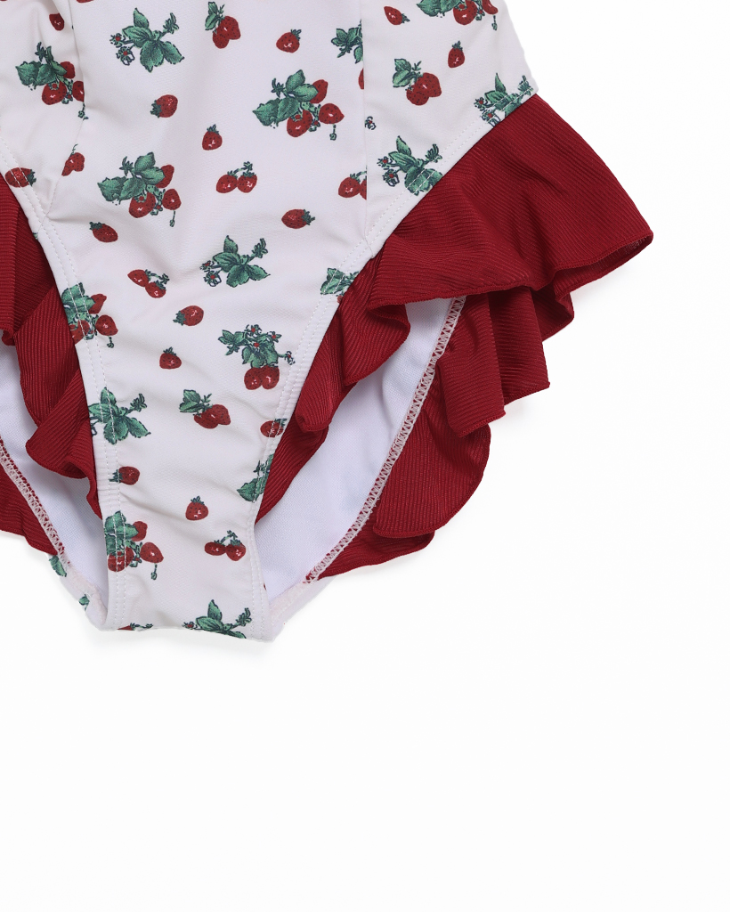 レッドフラワーポイントワンピスイムウエア