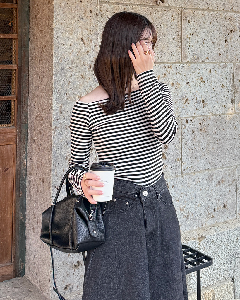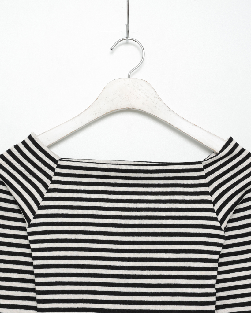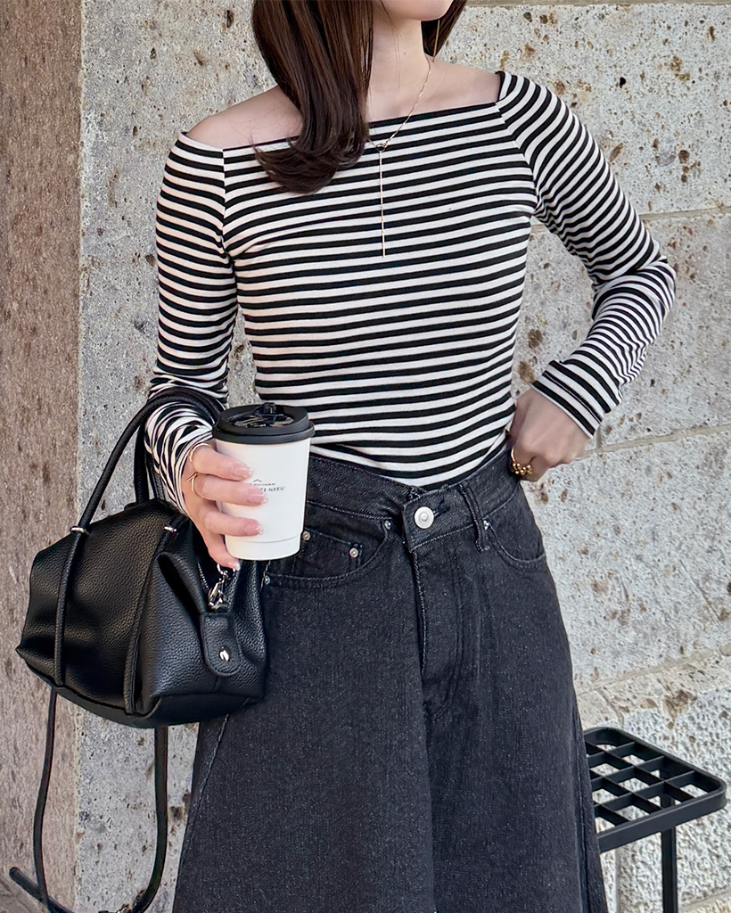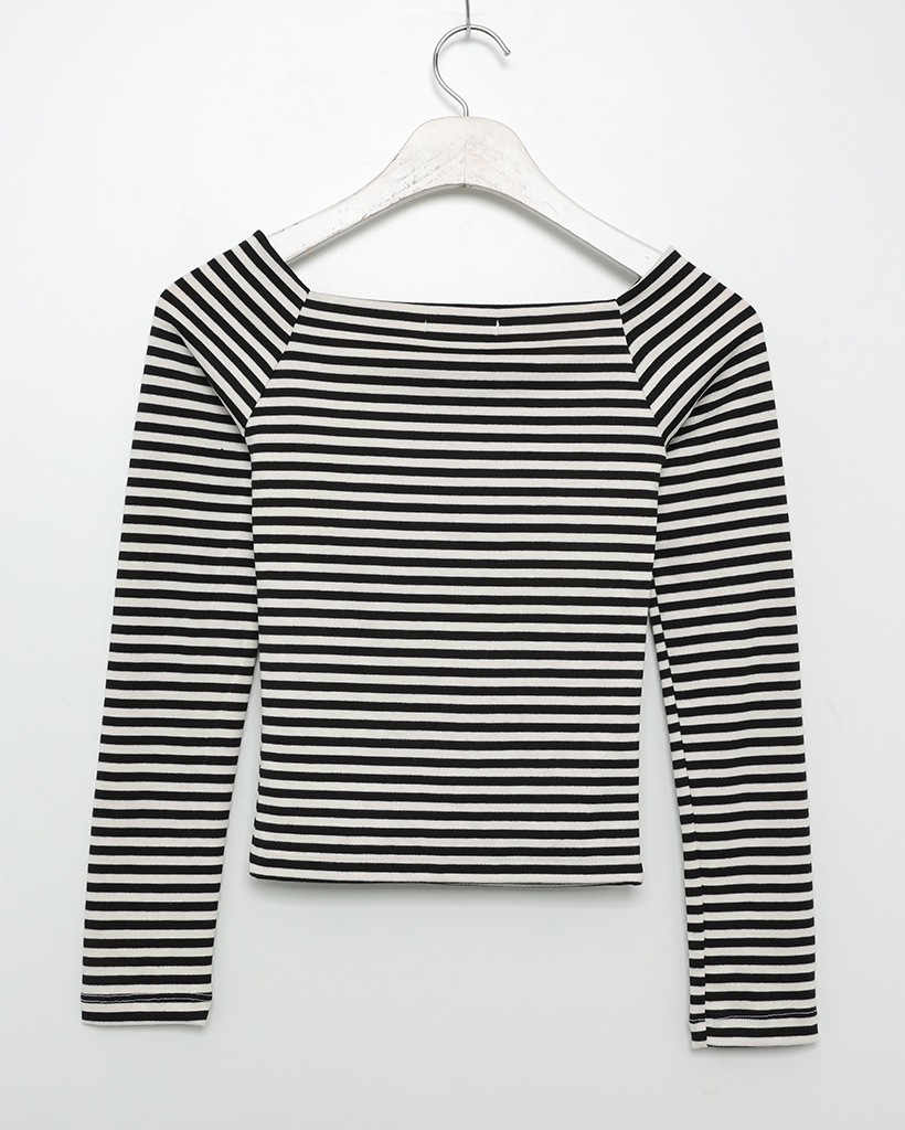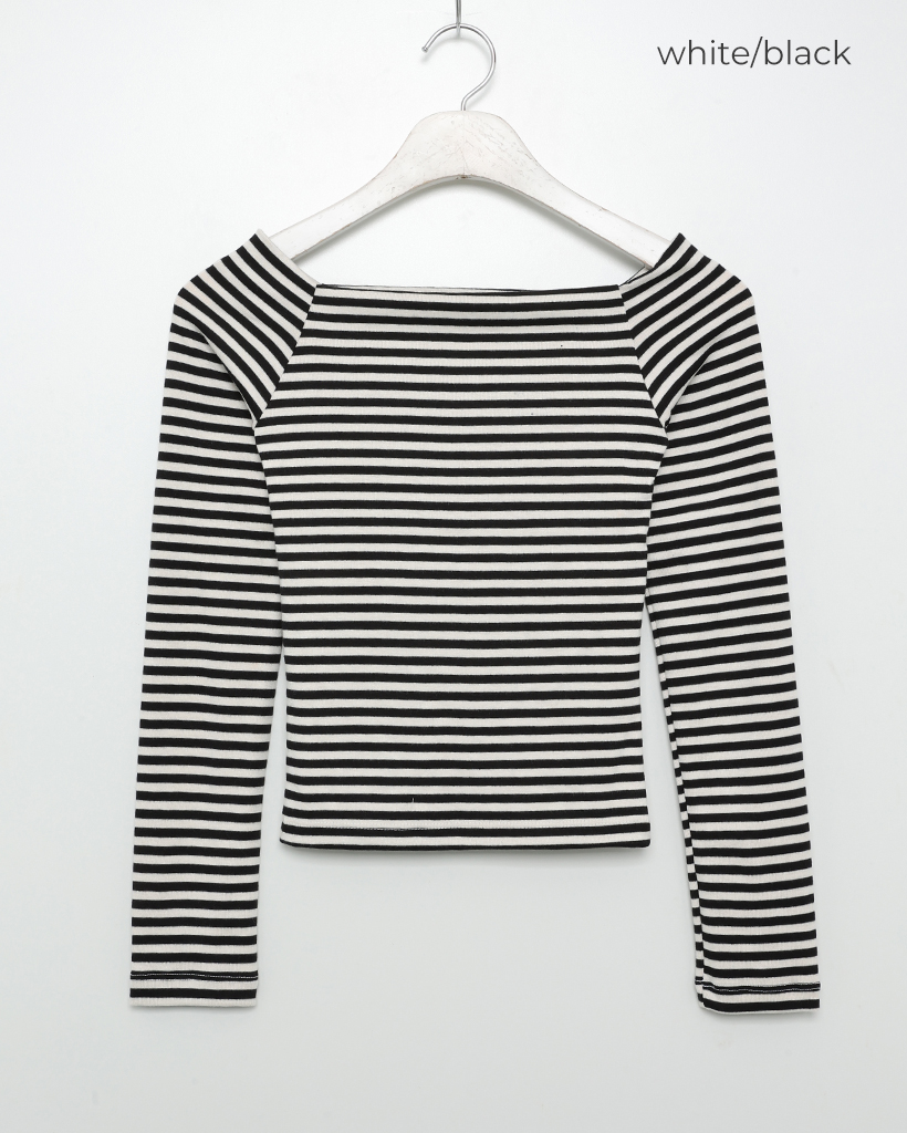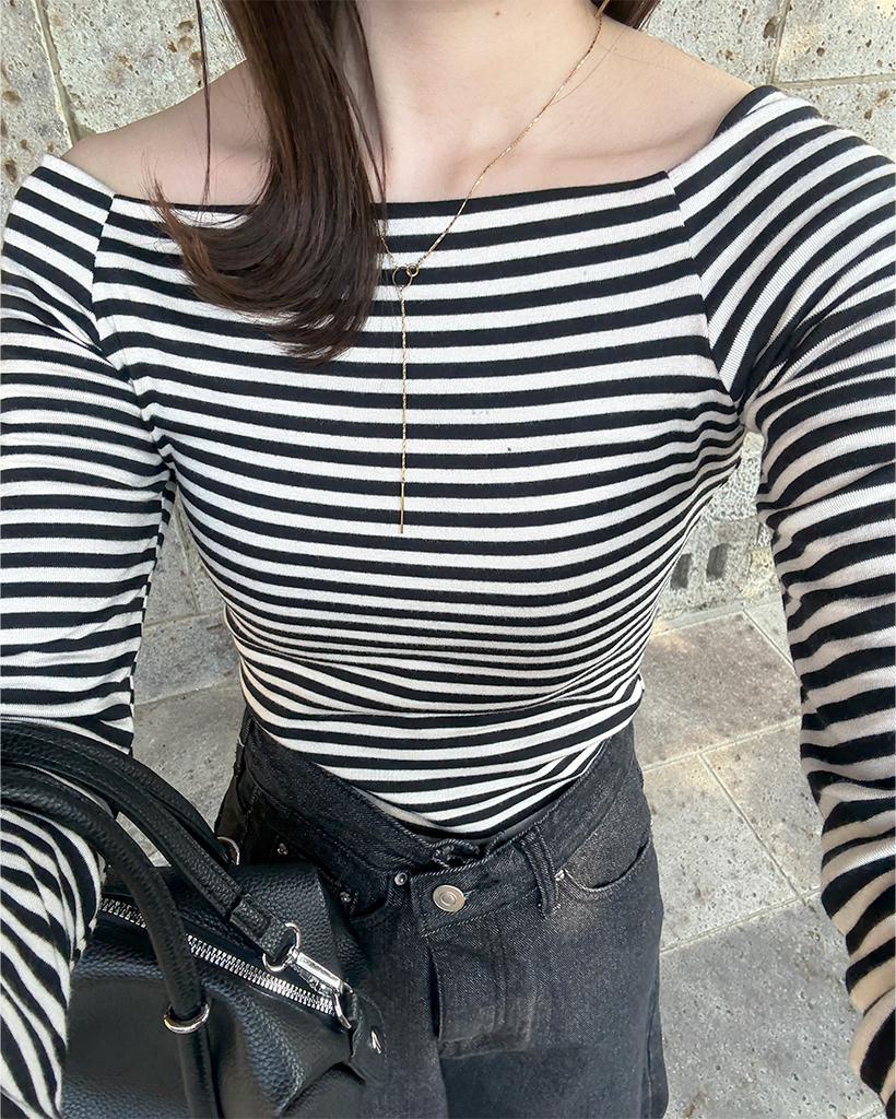 クラシックボーダーオフショルダーロングスリーブTシャツ