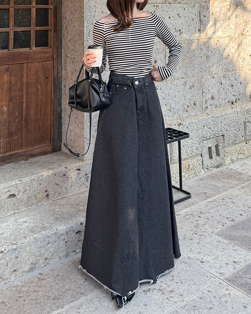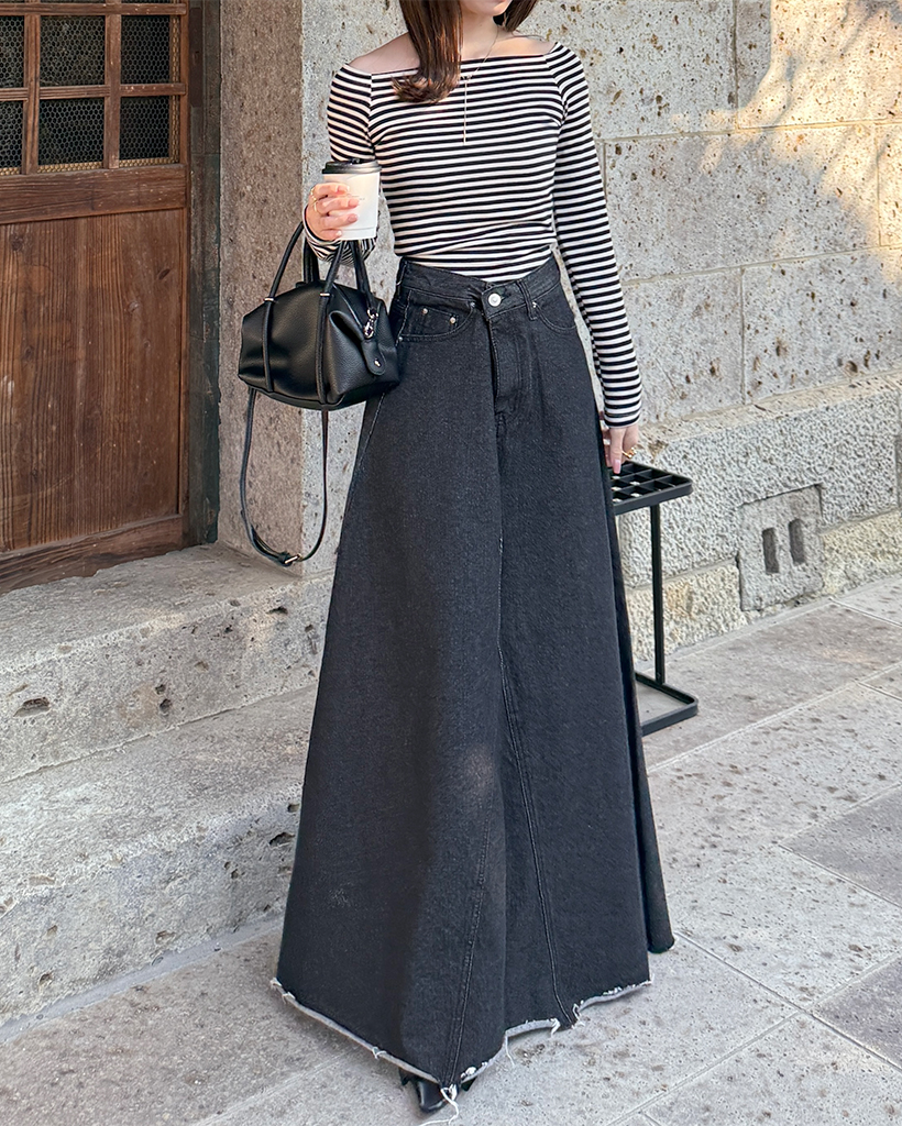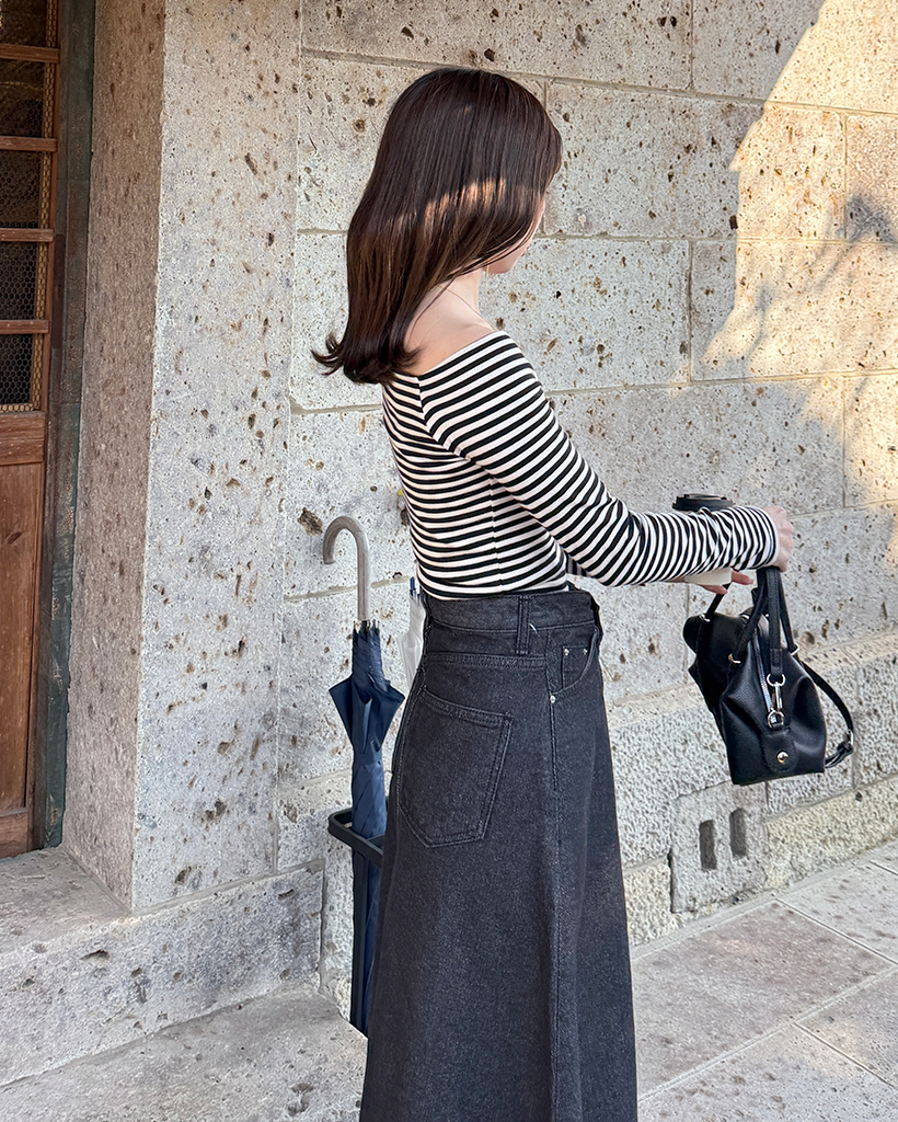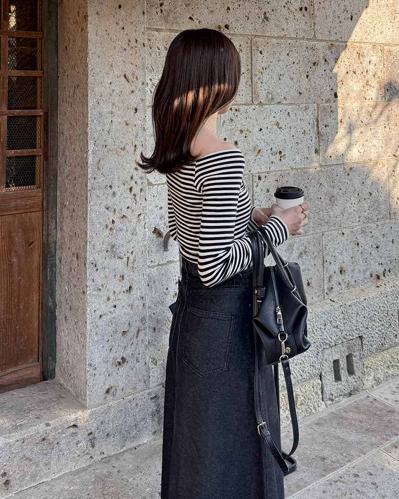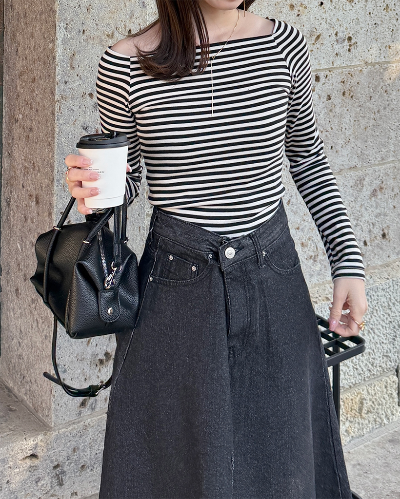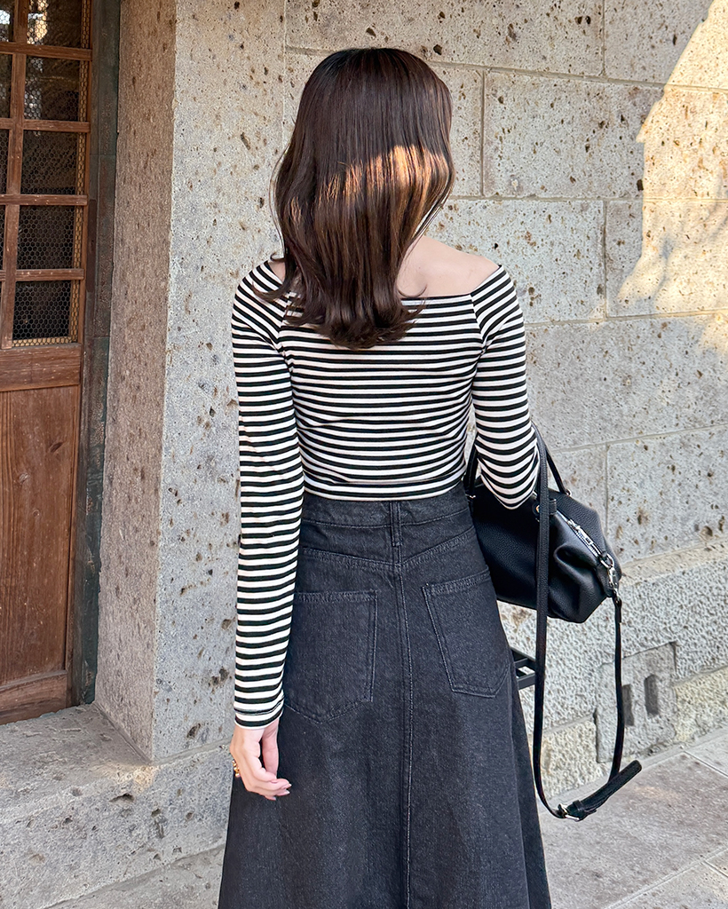 クラシックボーダーオフショルダーロングスリーブTシャツ