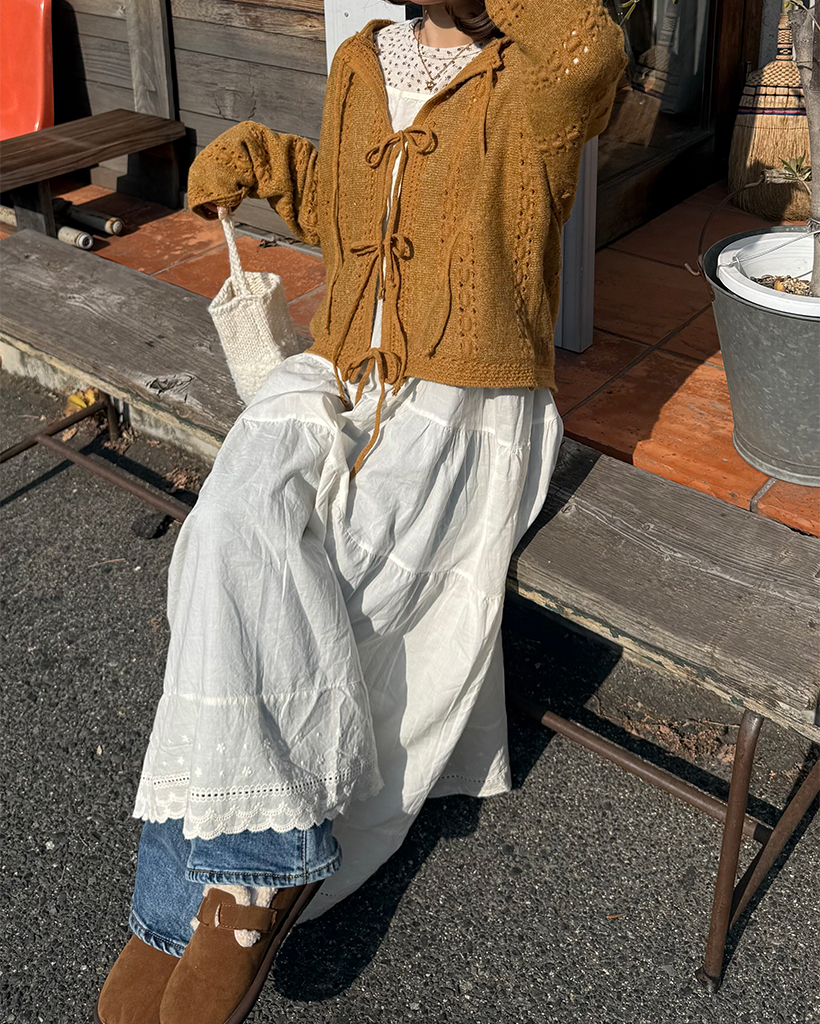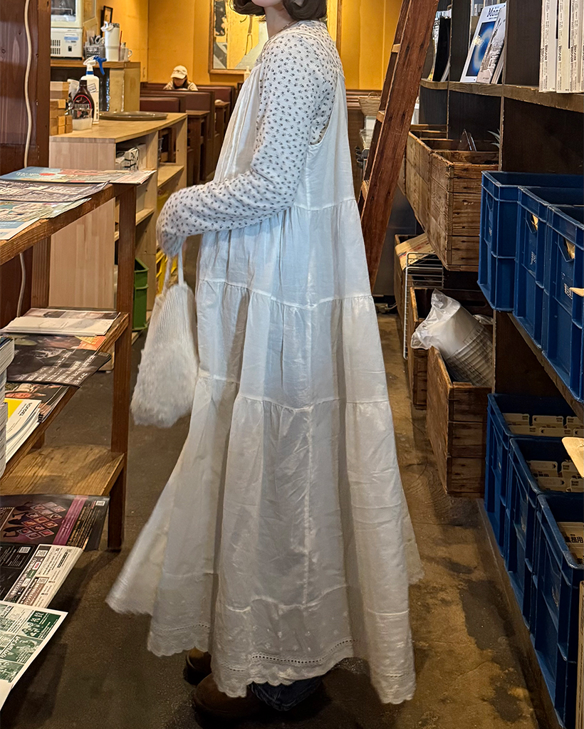 フラワーパンチングレースヘムキャミワンピース