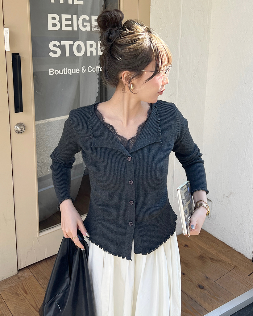 レースリブカーディガン