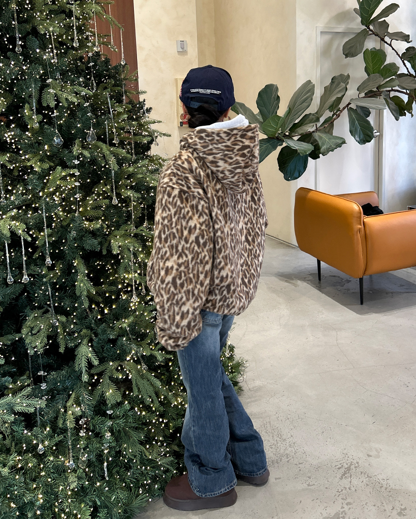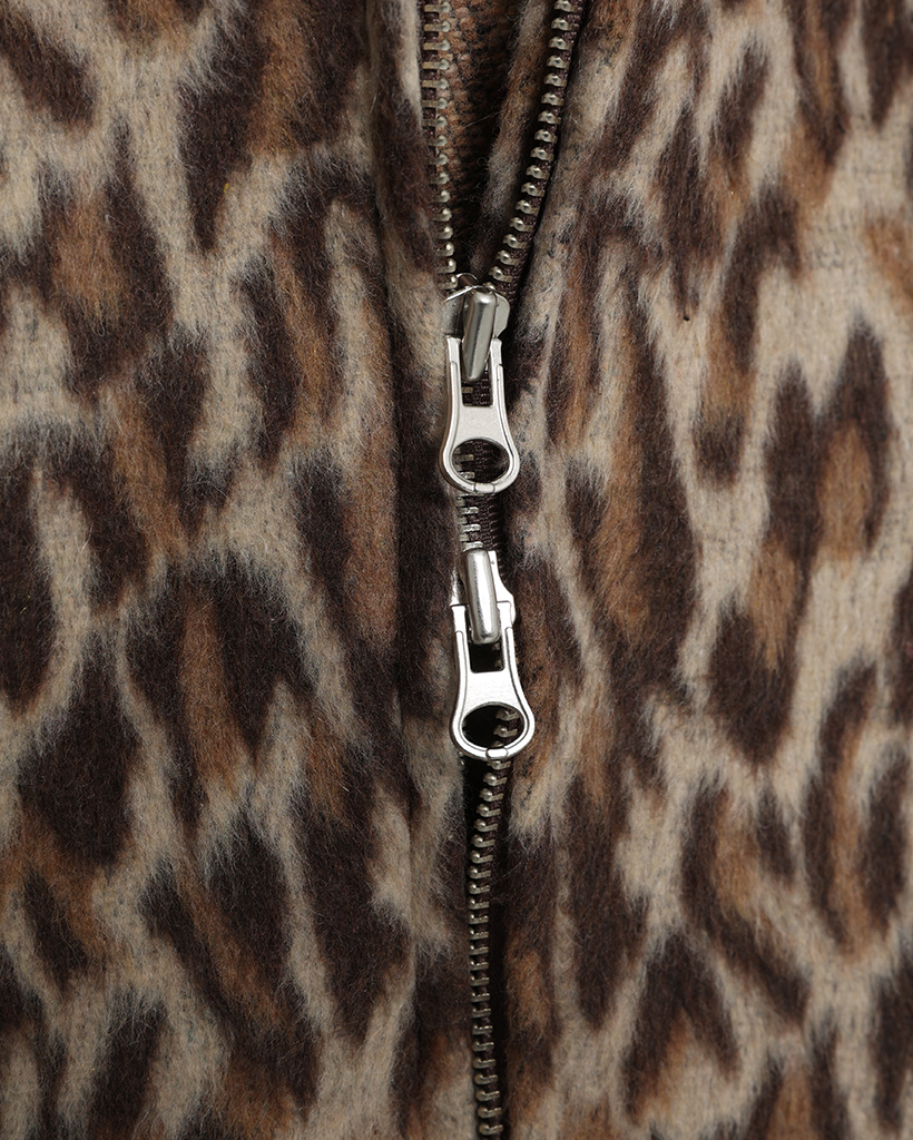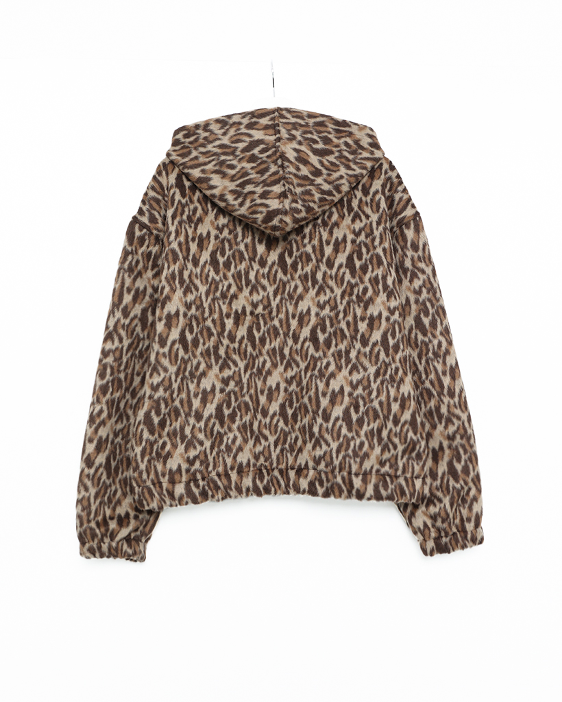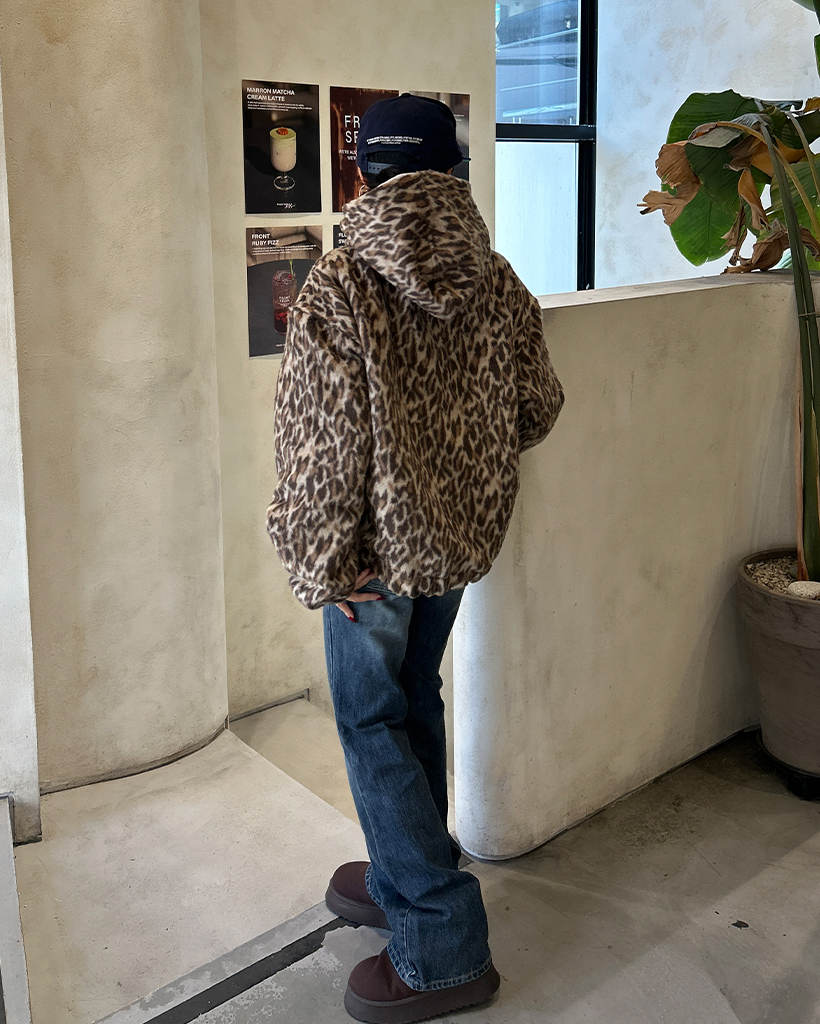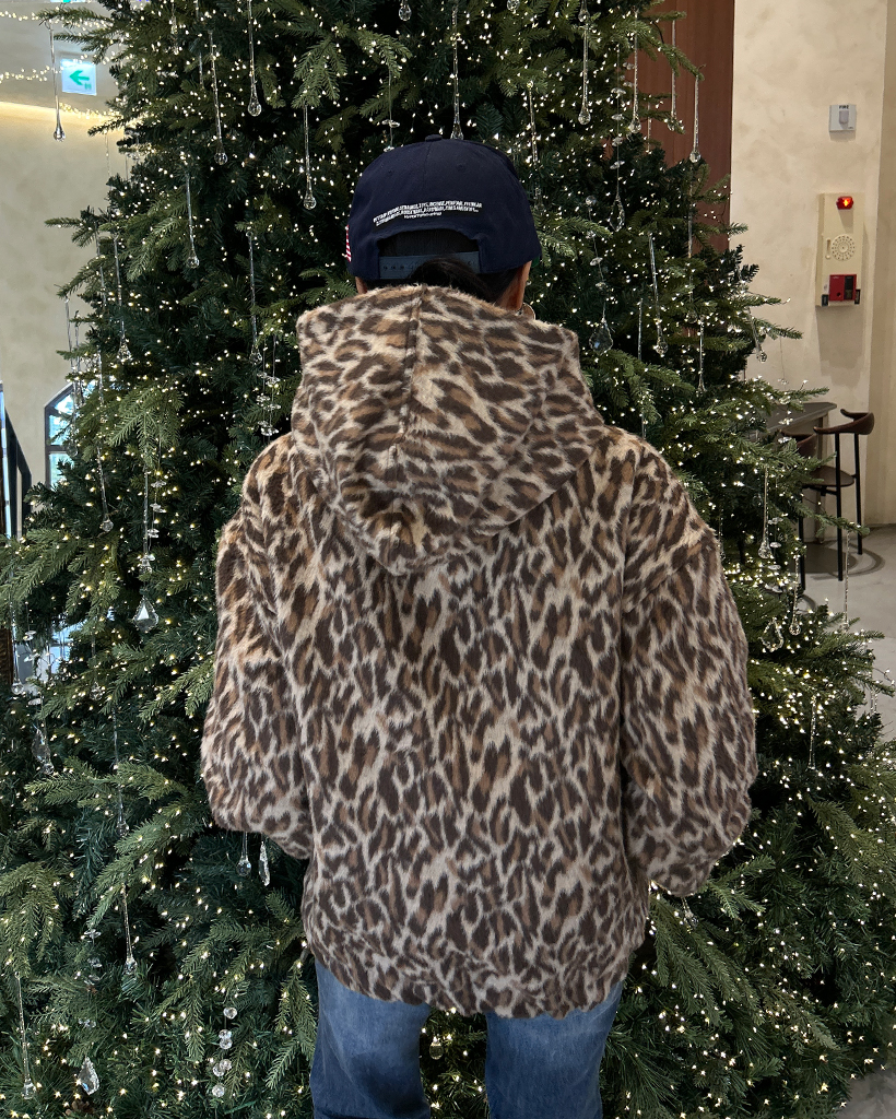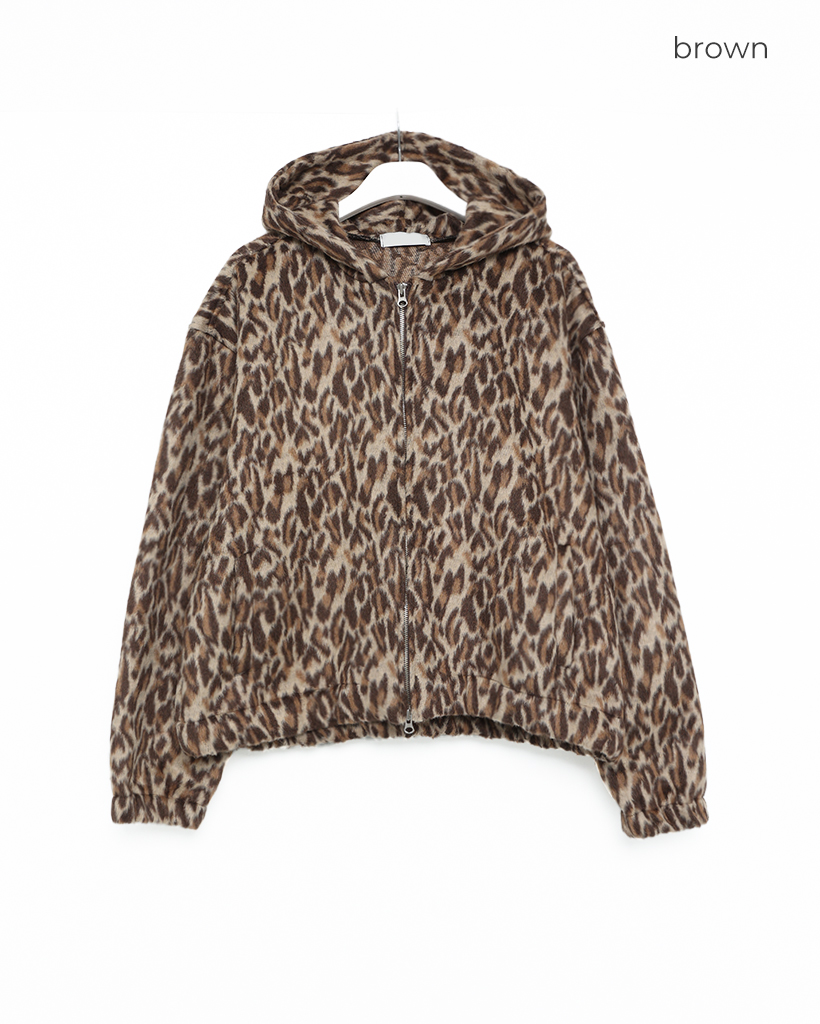 (ユニセックス)ファーレオパードパターンジップアップパーカー