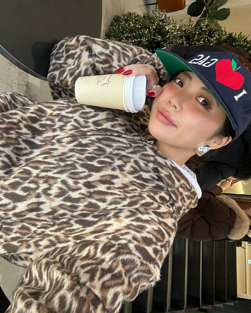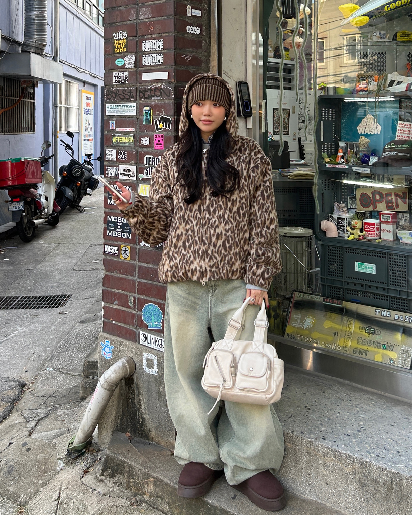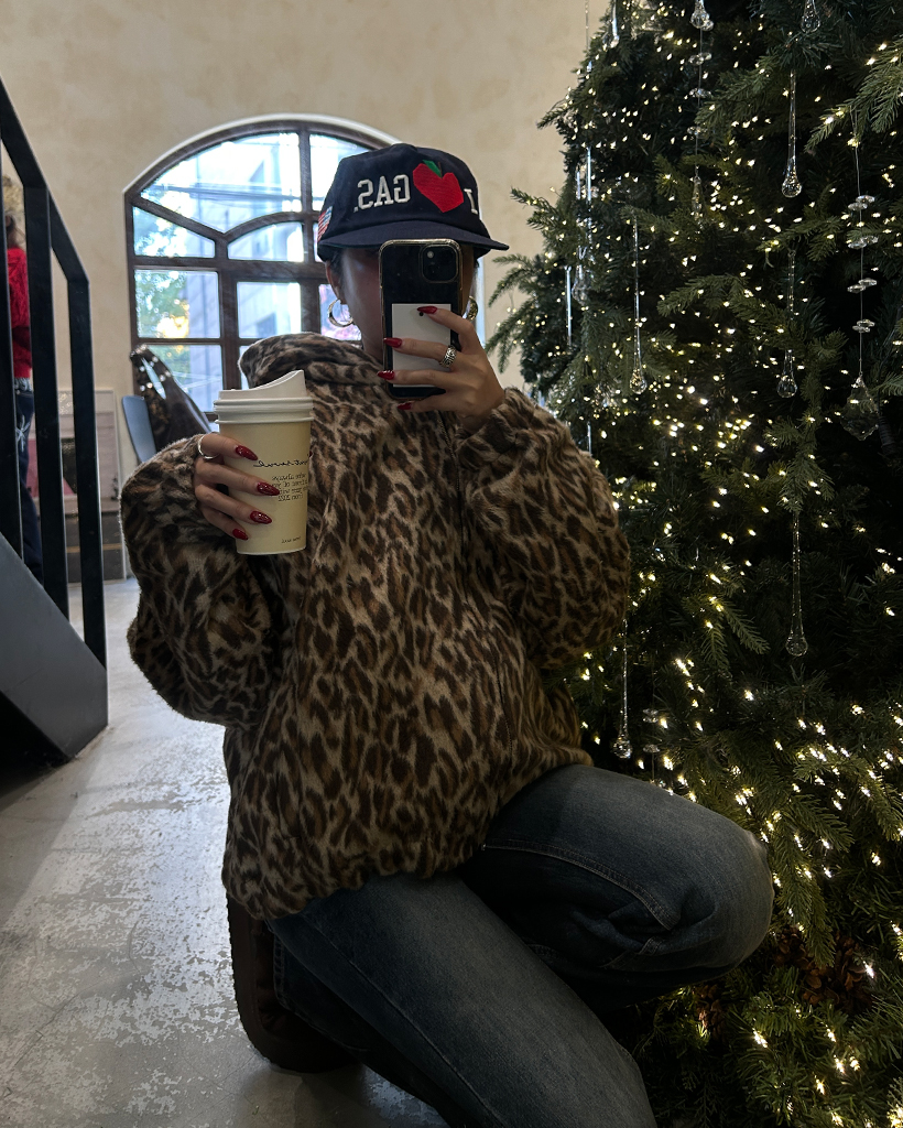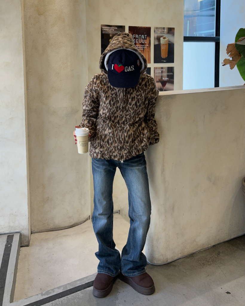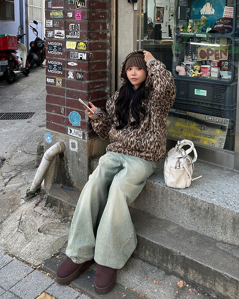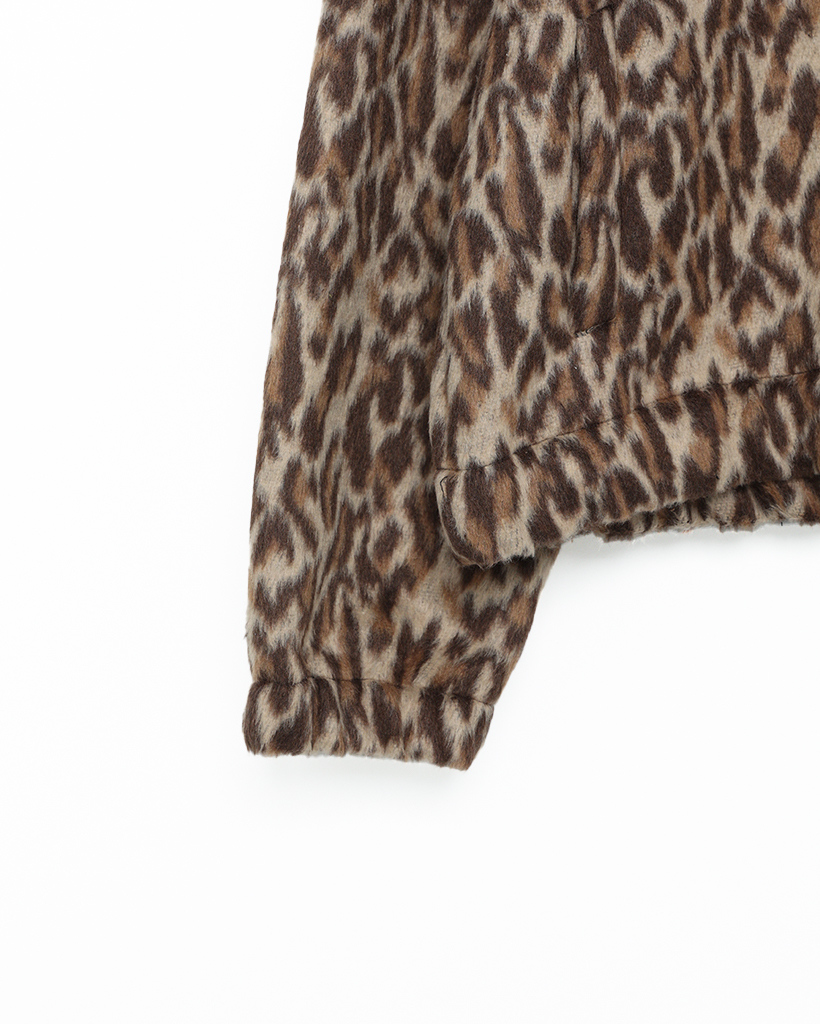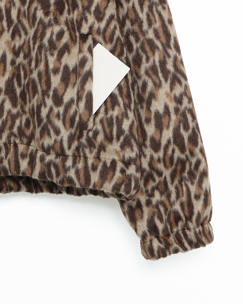 (ユニセックス)ファーレオパードパターンジップアップパーカー