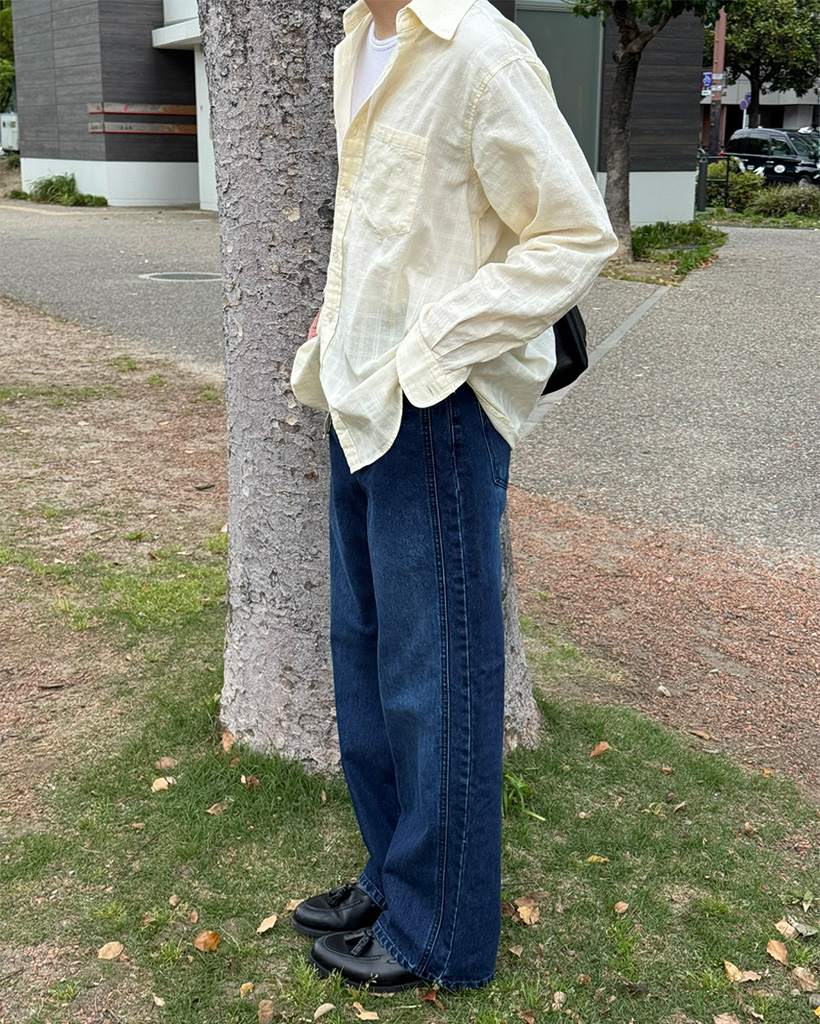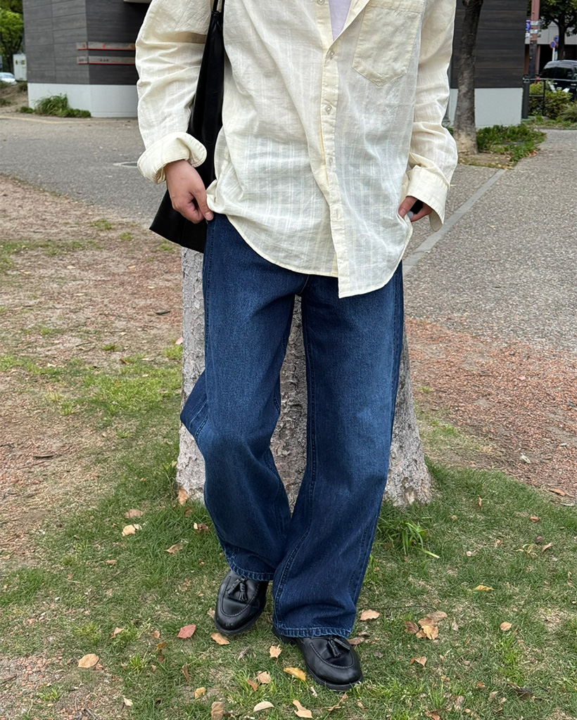 (ユニセックス)ブルーウォッシュデニムワイドパンツ