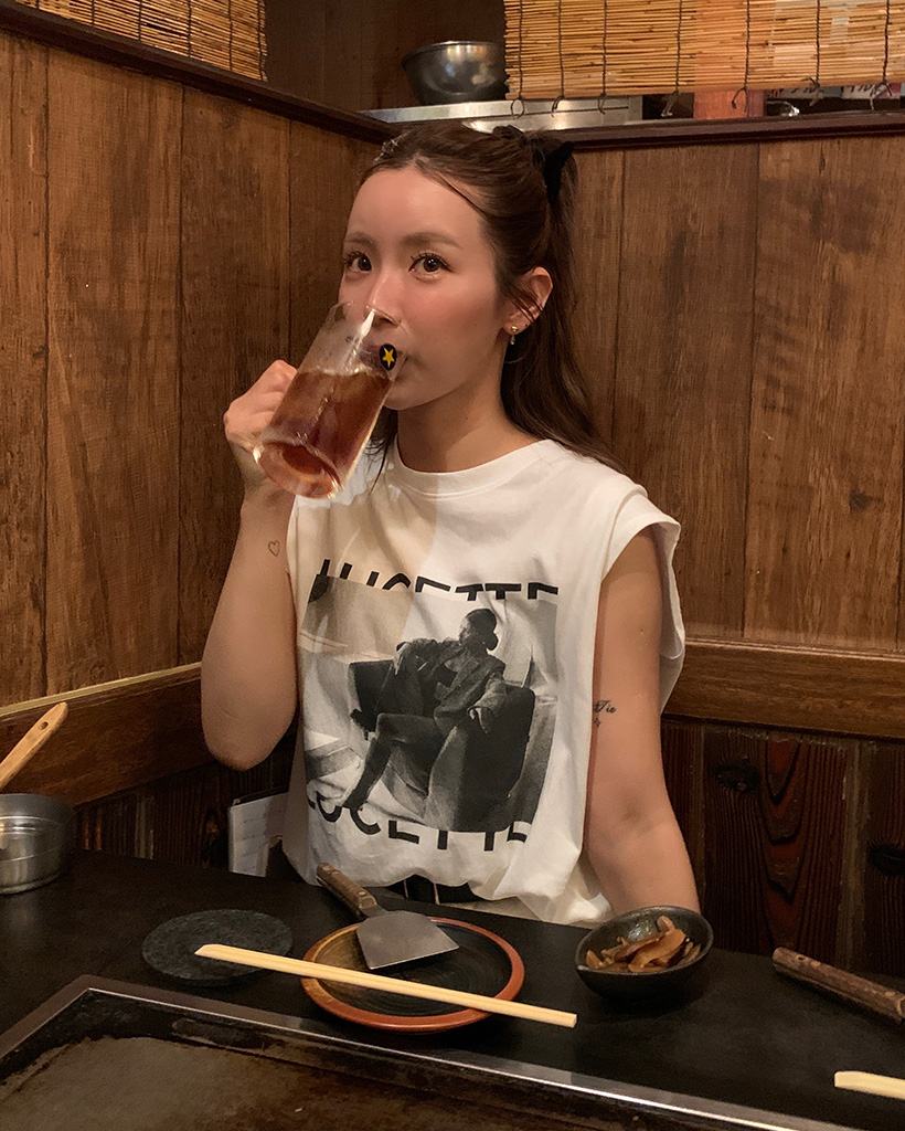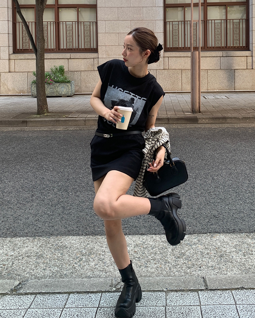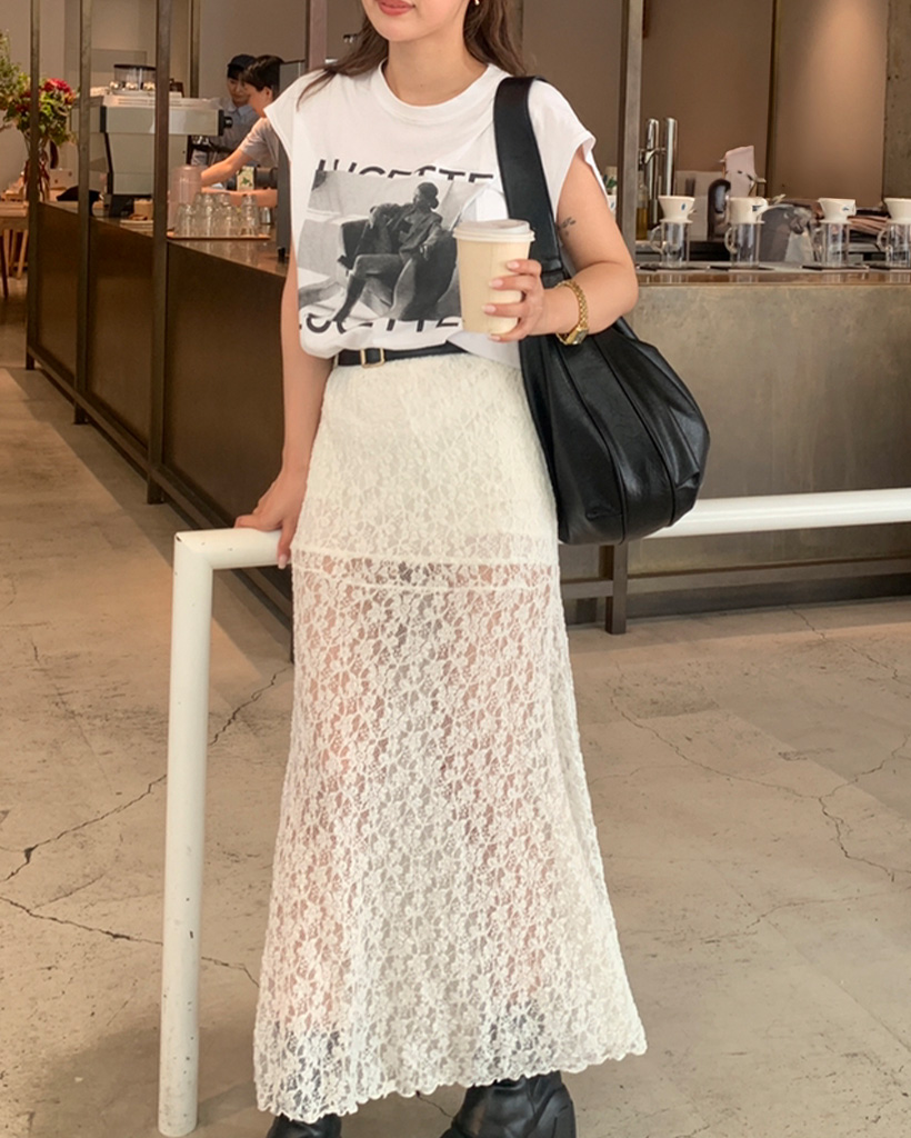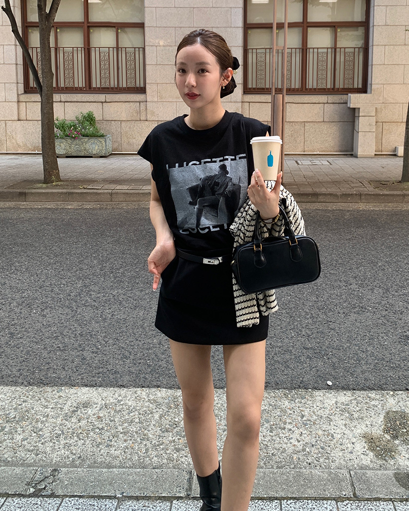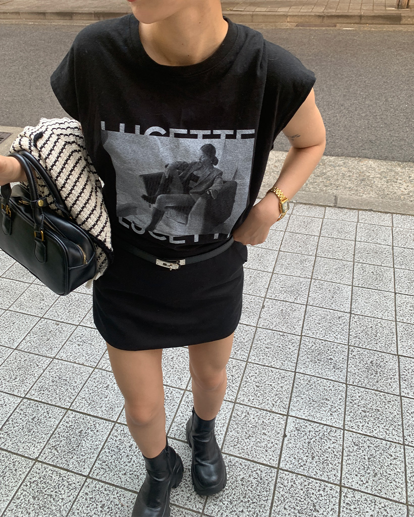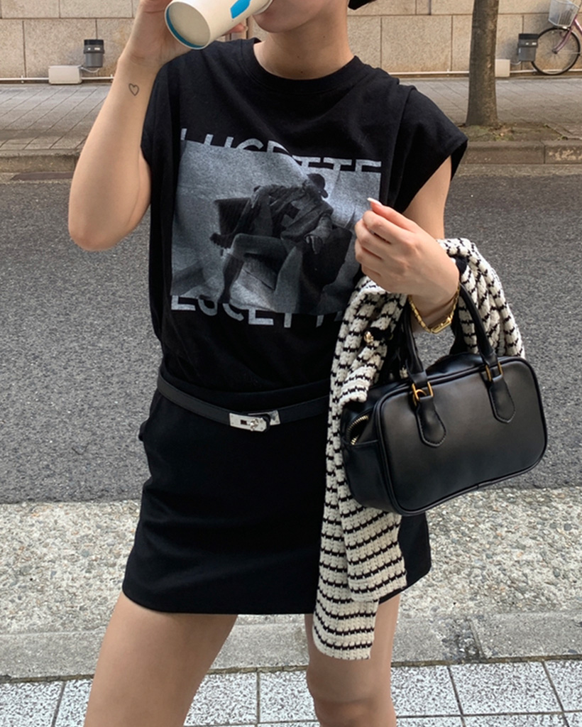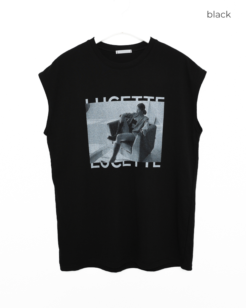 フォトプリントノースリーブルーズーTシャツ