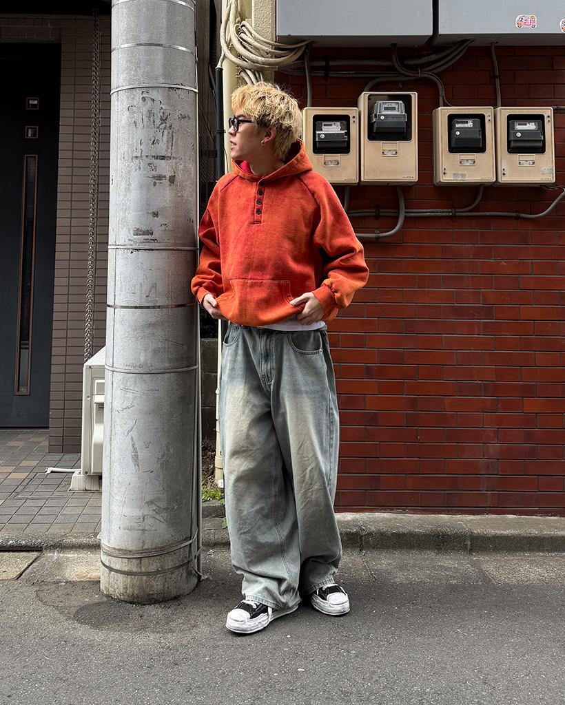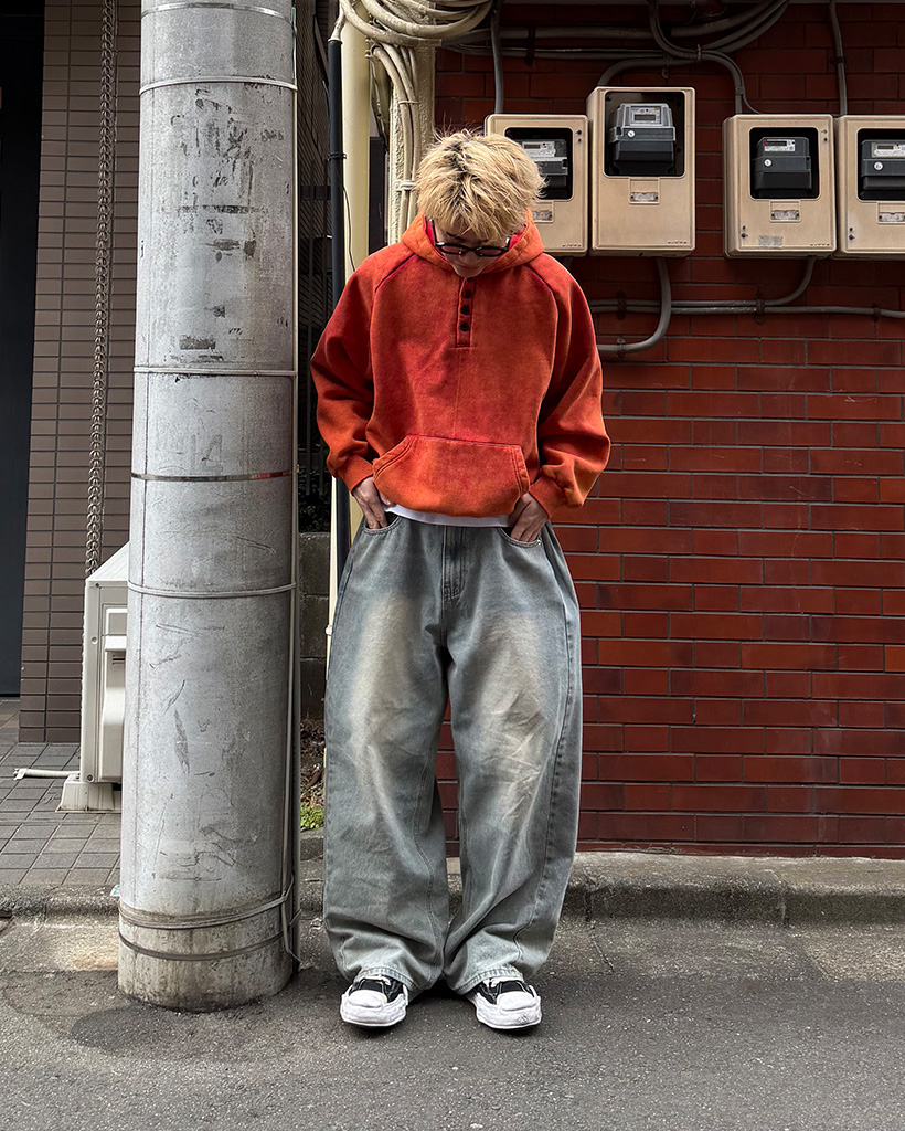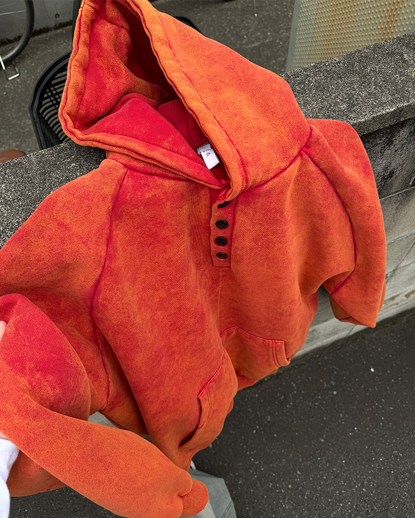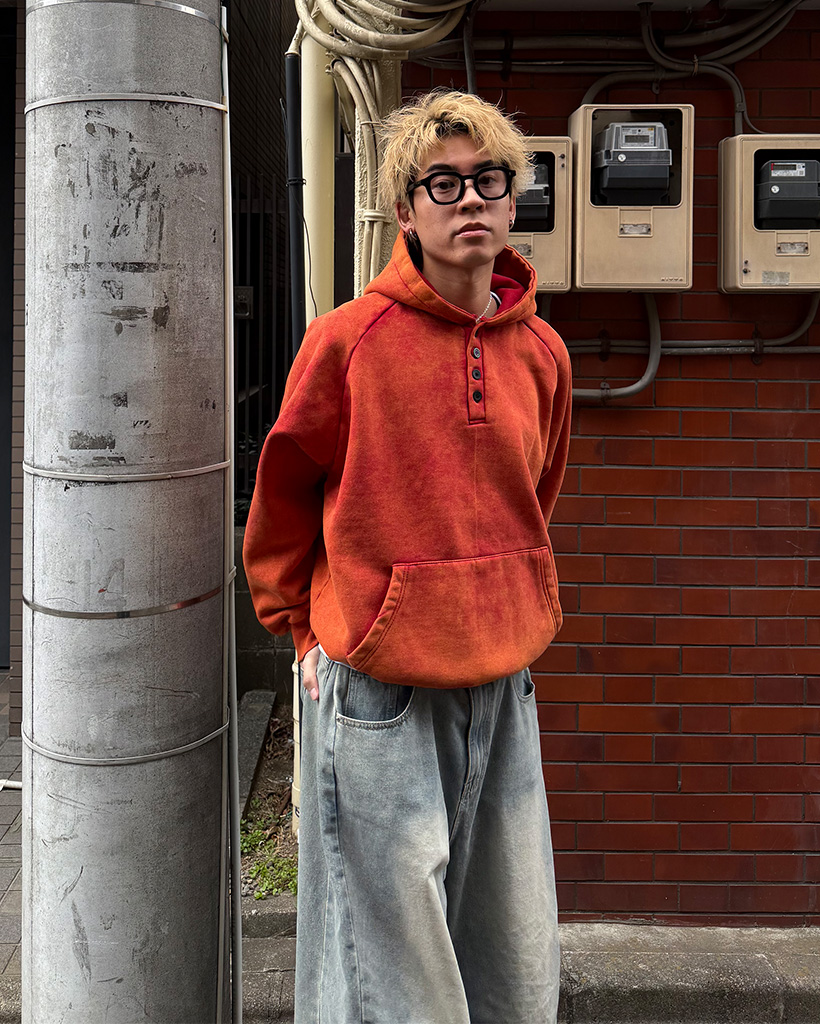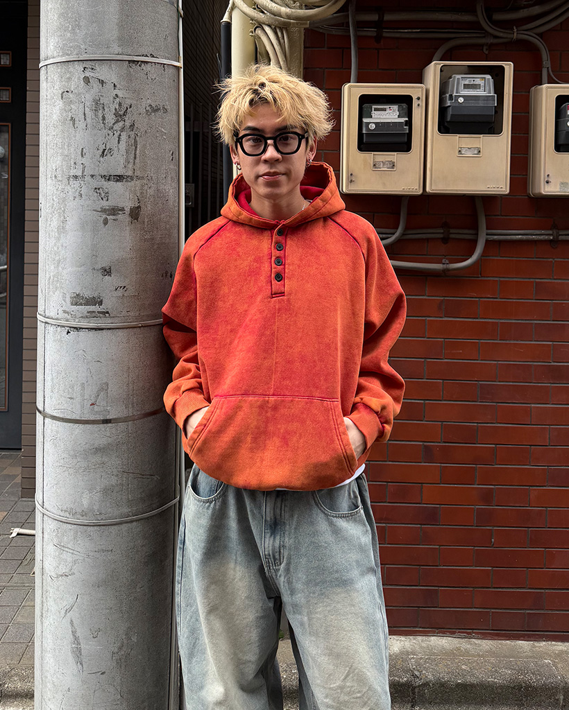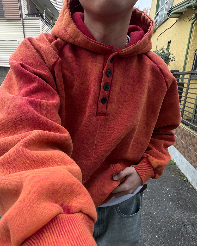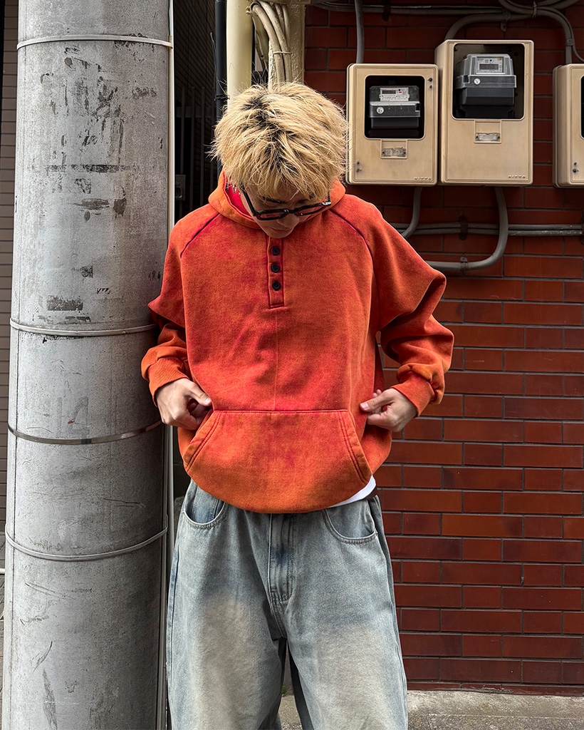 ピグメントウォッシュヘンリーネックフードパーカー