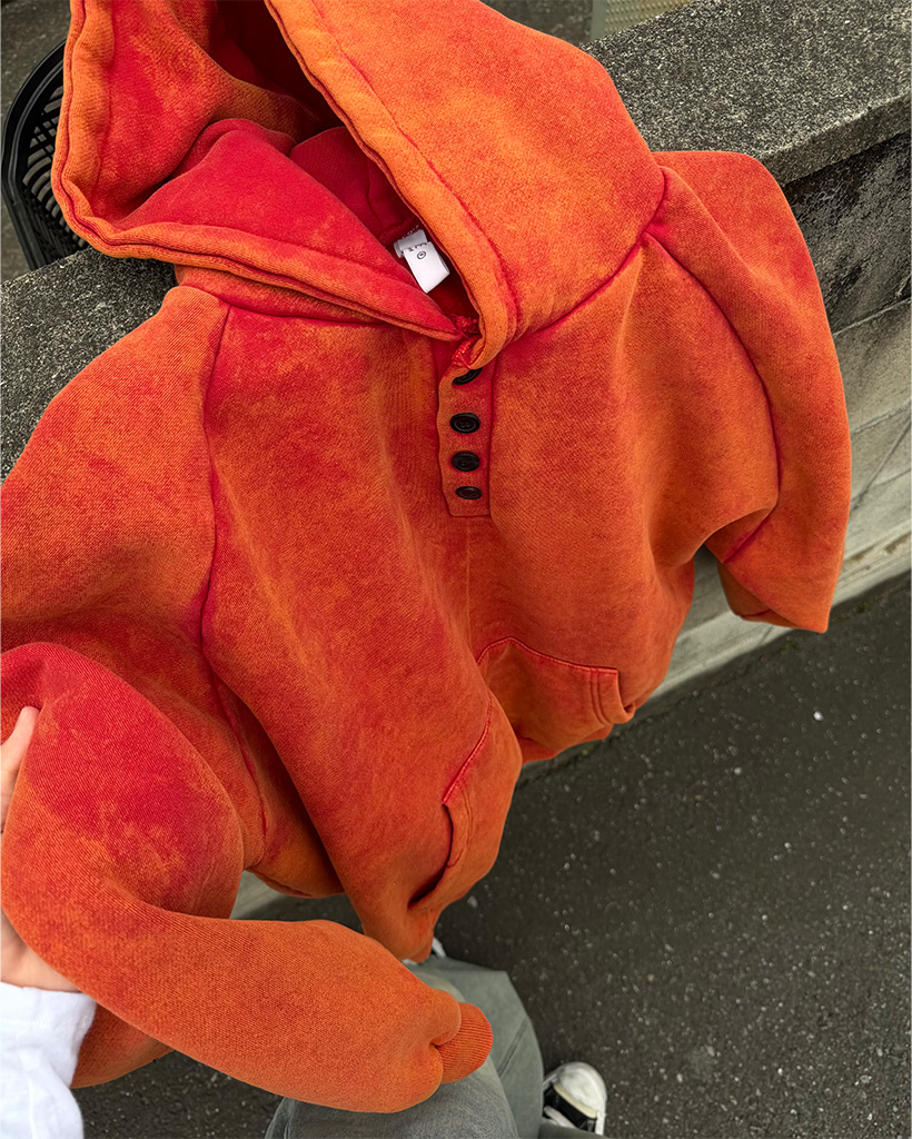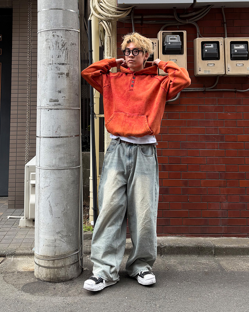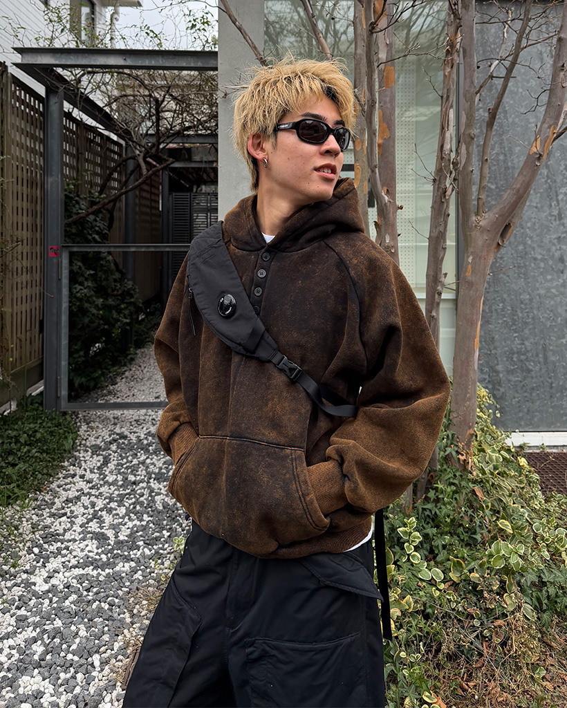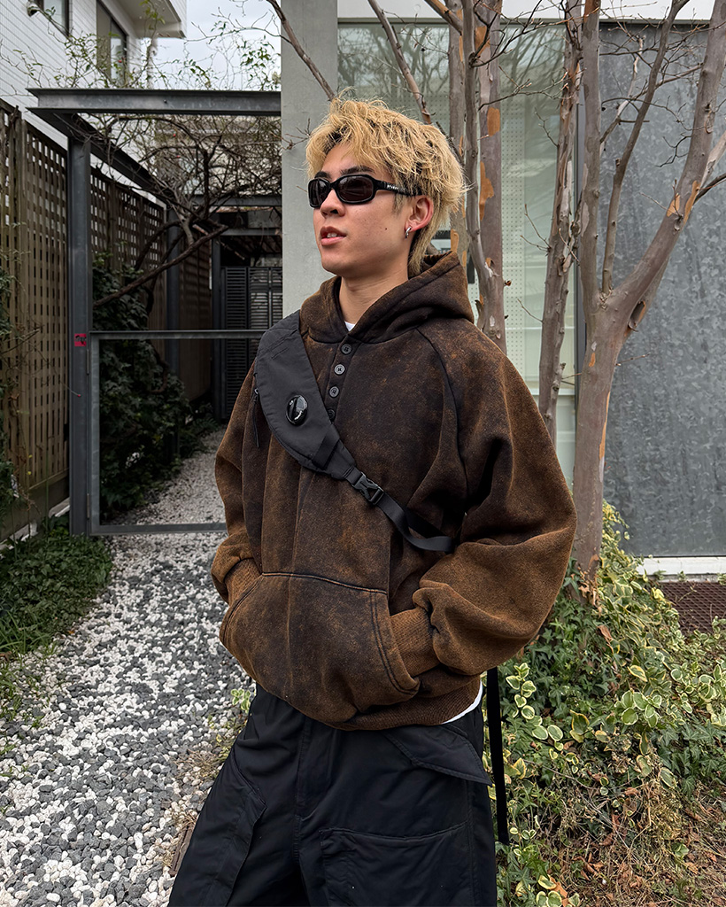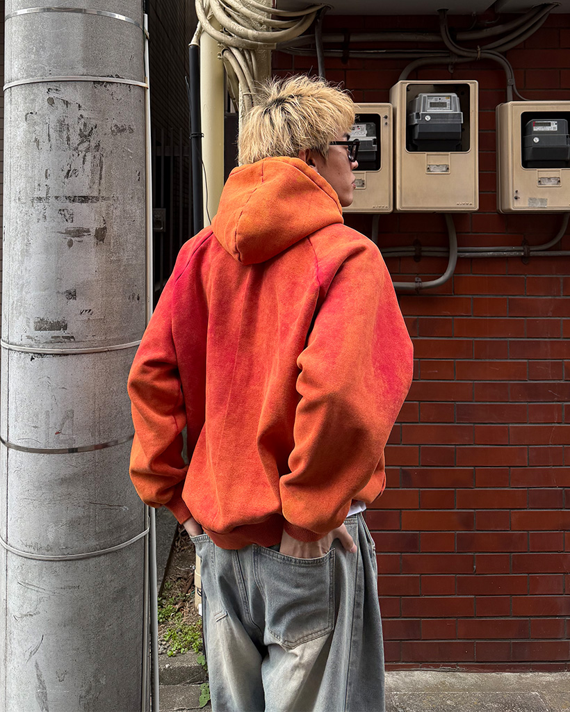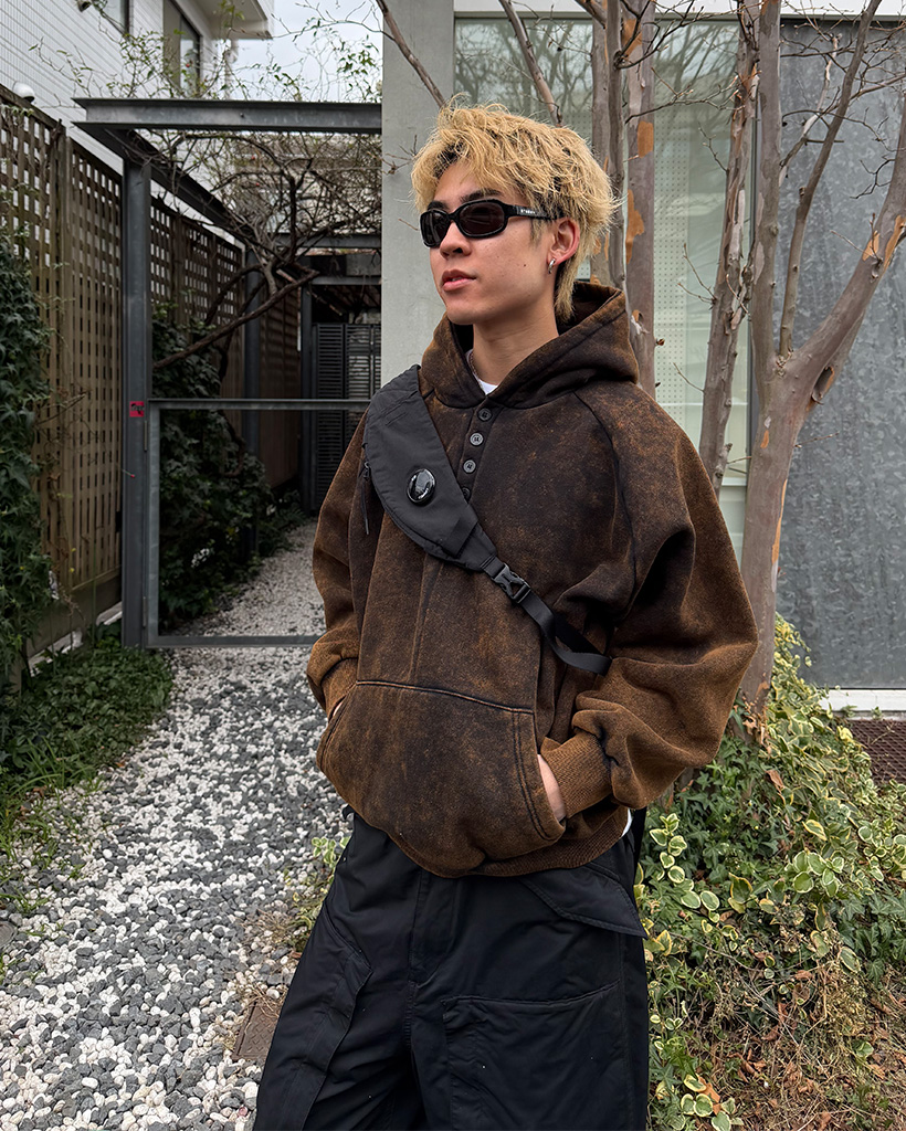 ピグメントウォッシュヘンリーネックフードパーカー