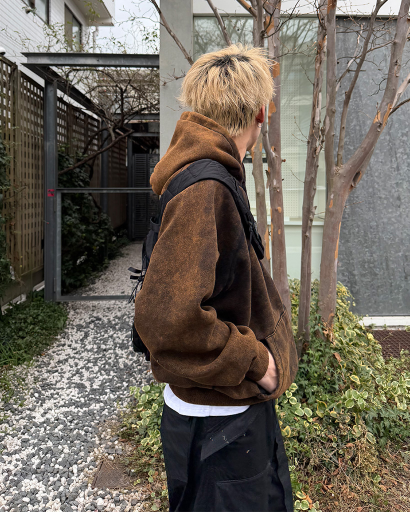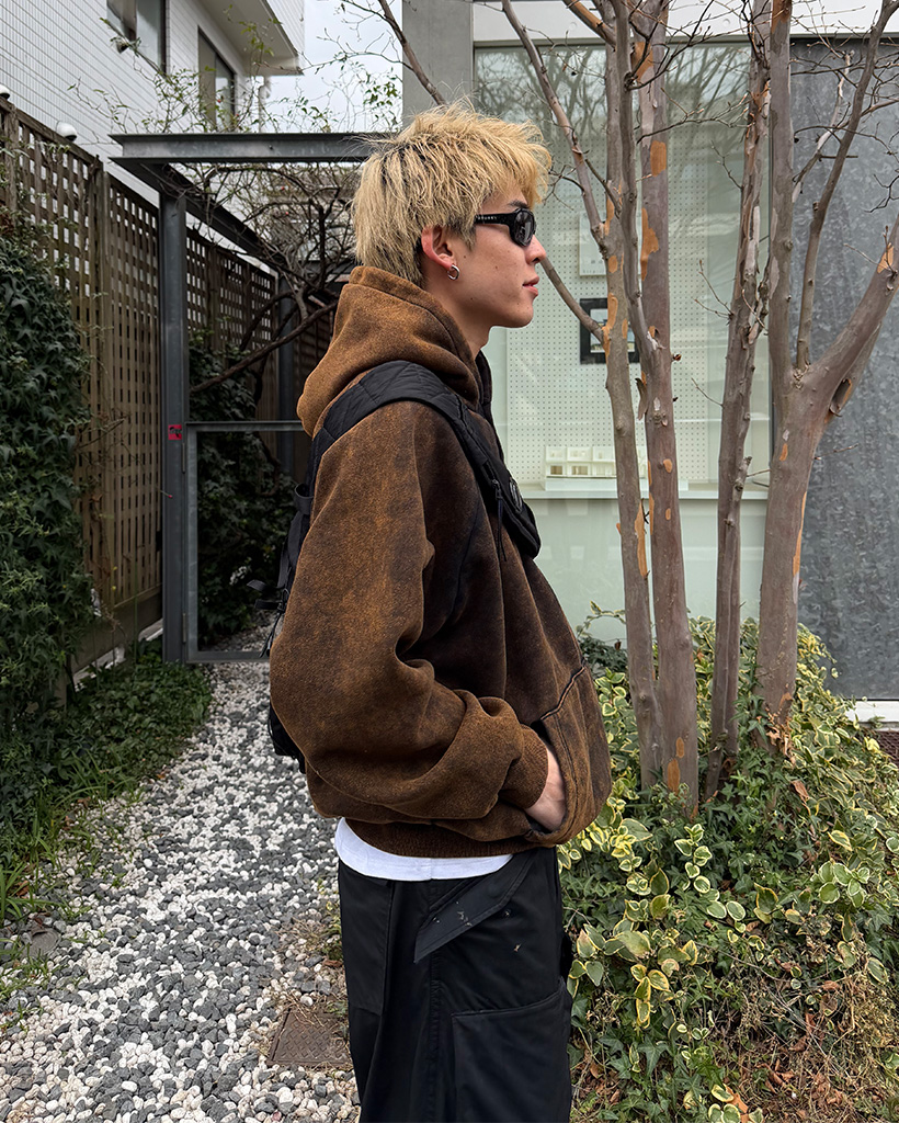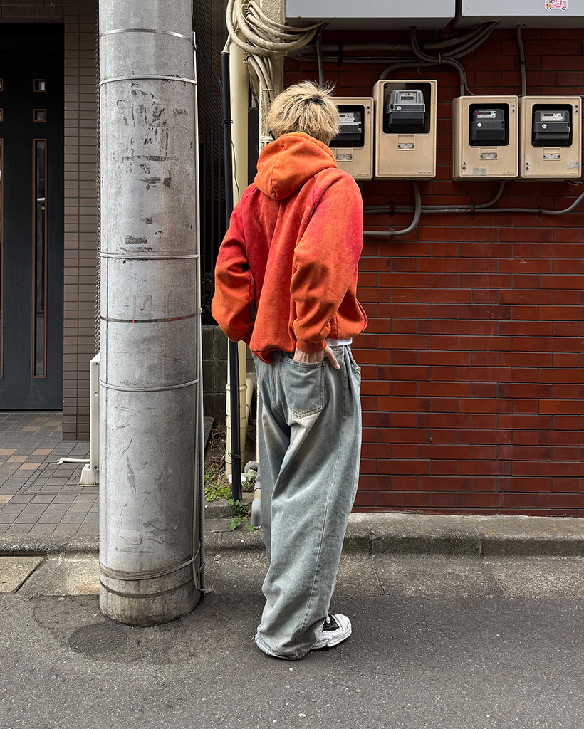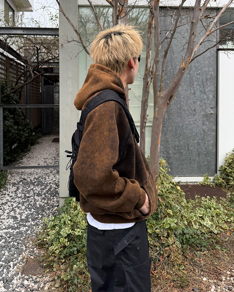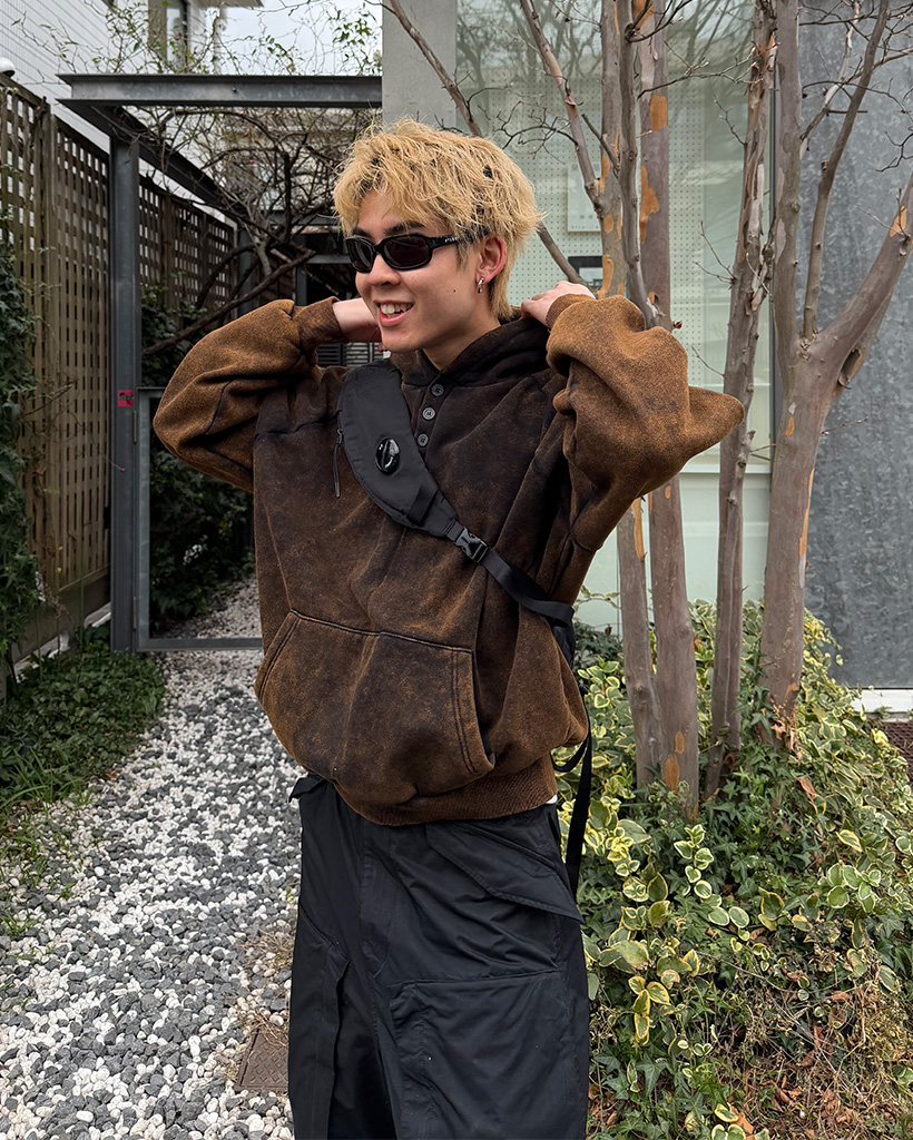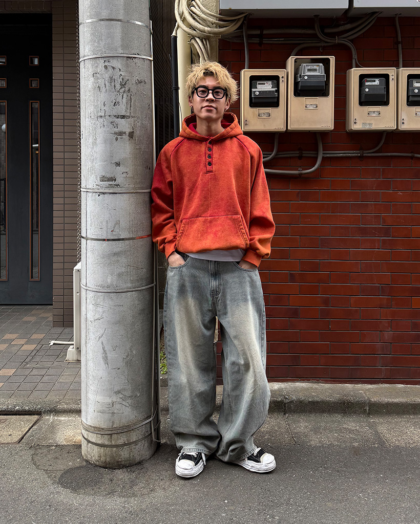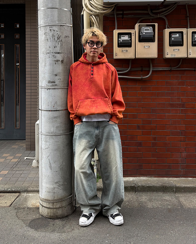 ピグメントウォッシュヘンリーネックフードパーカー