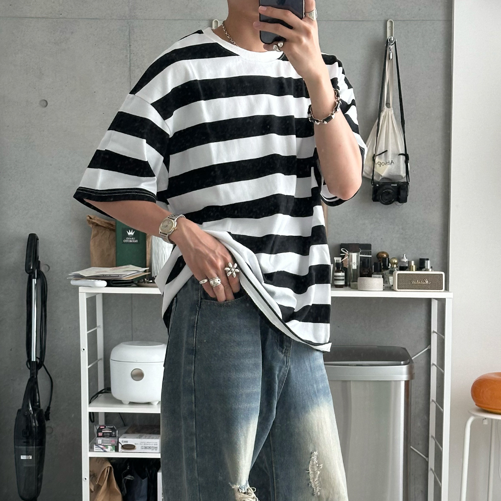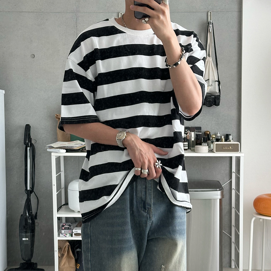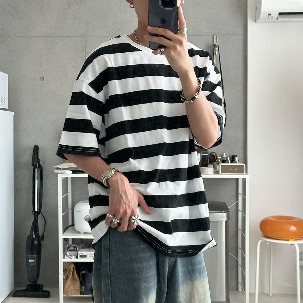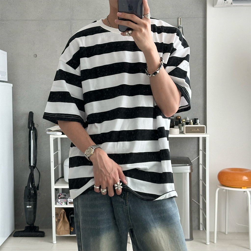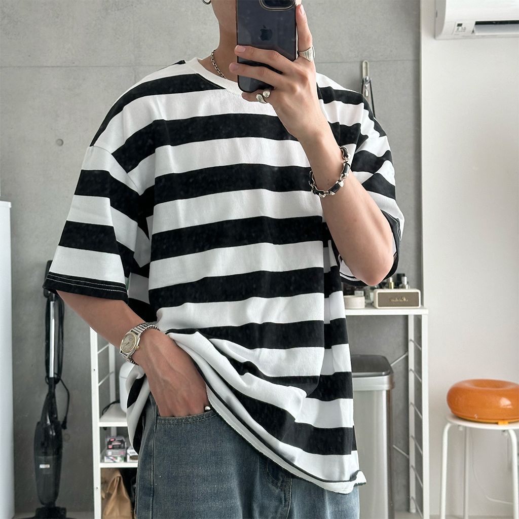 (ユニセックス) シンプルボーダー半袖Tシャツ