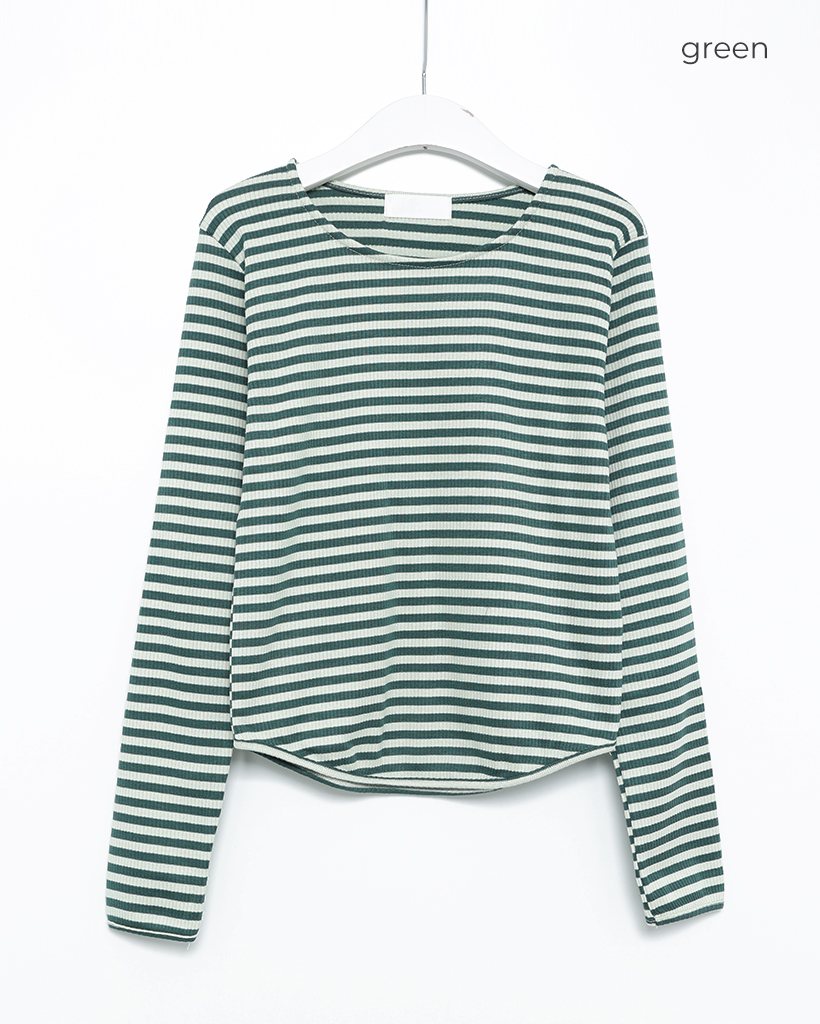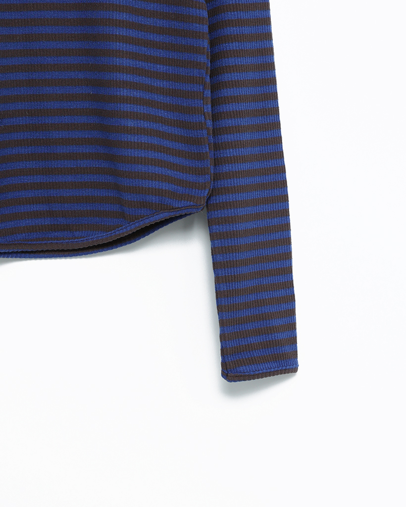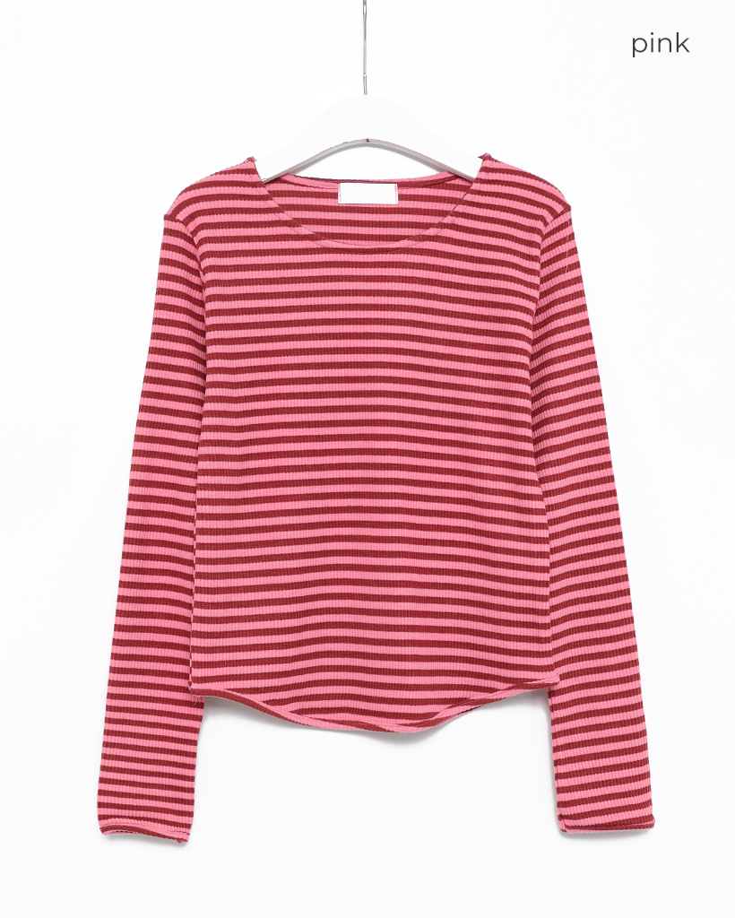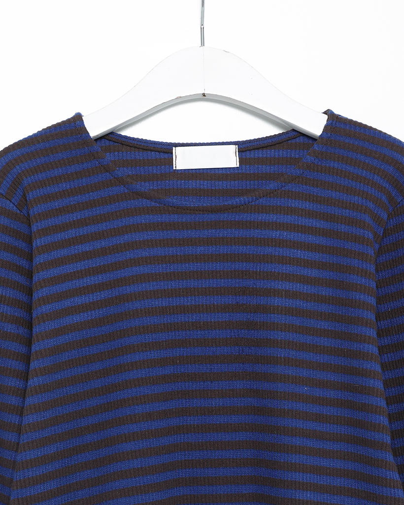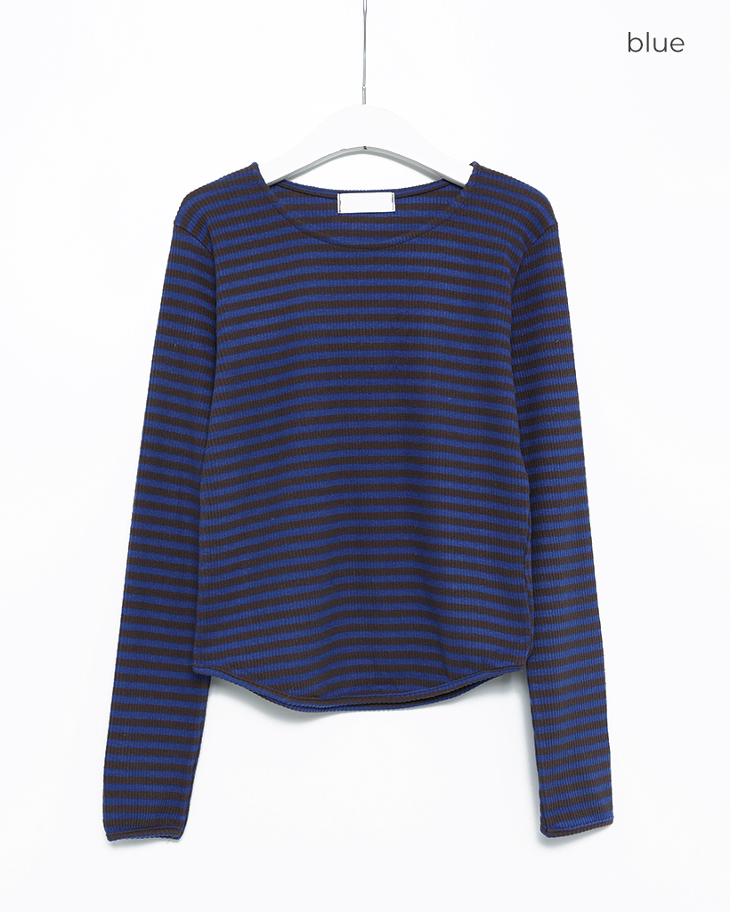オブロングネックラウンドヘムボーダーリブロングTシャツ