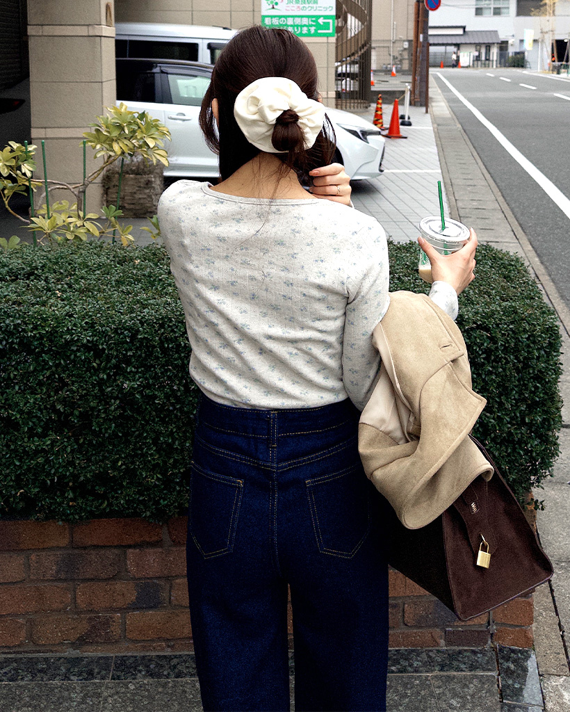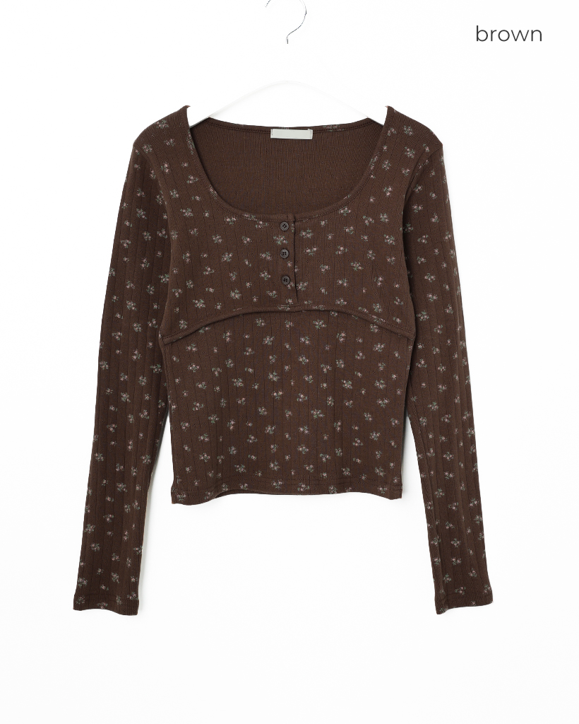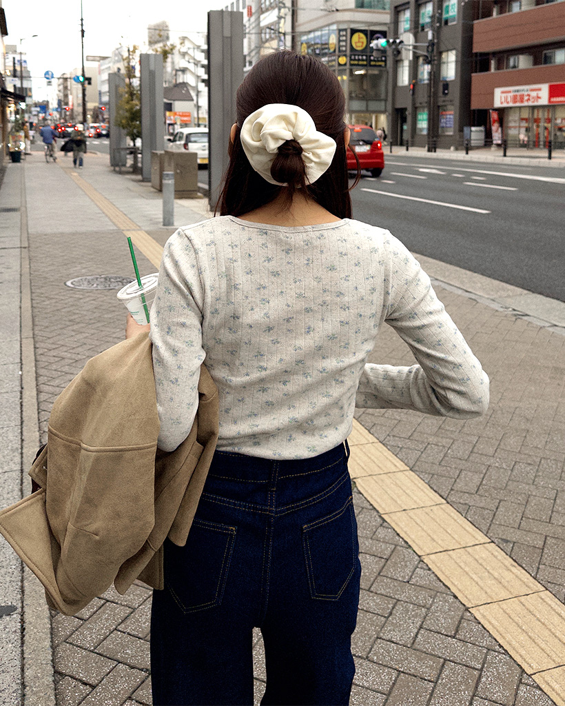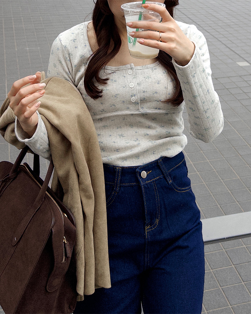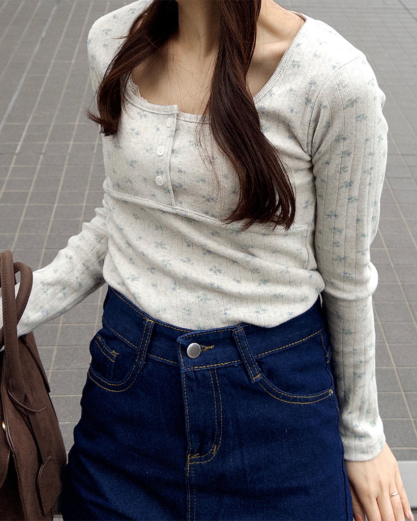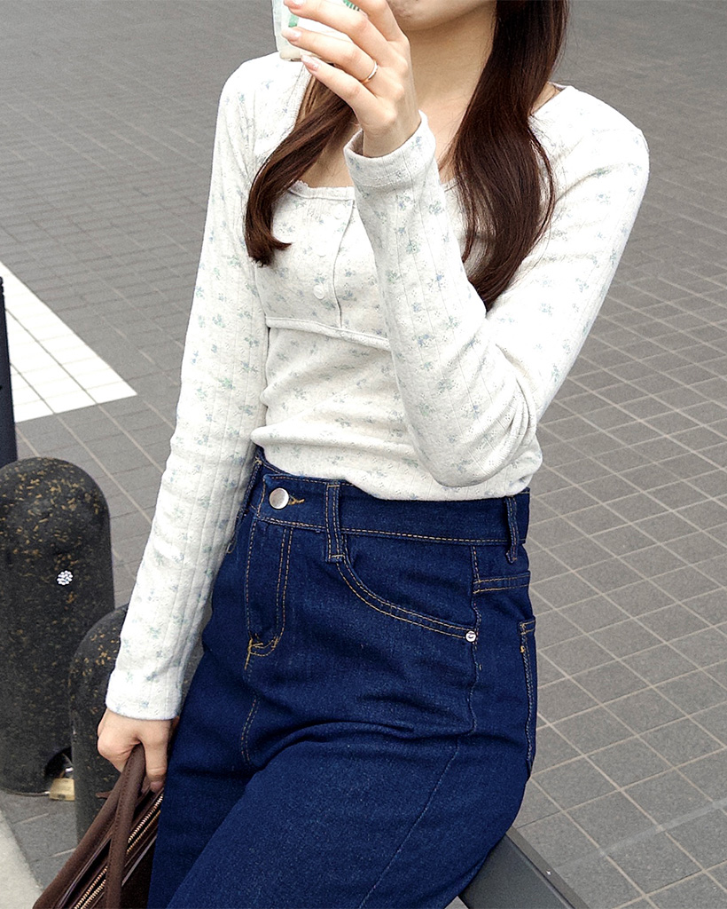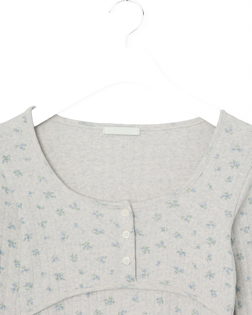 フラワーディテールボタンTシャツ