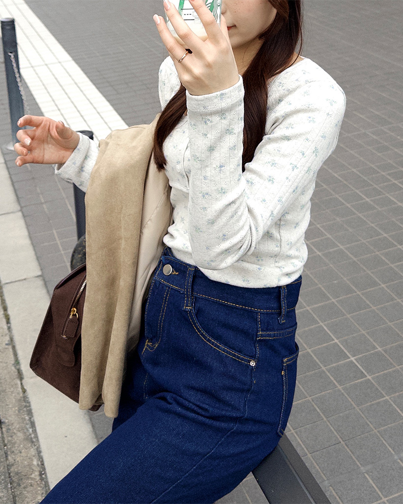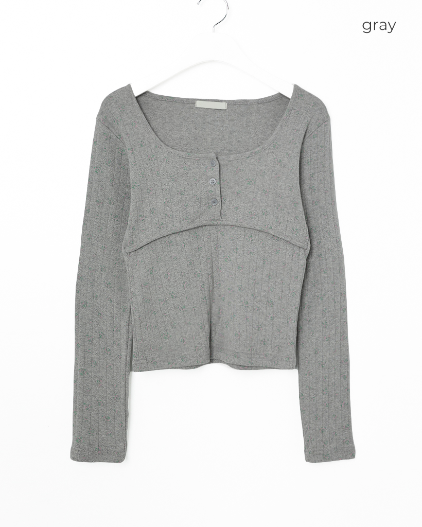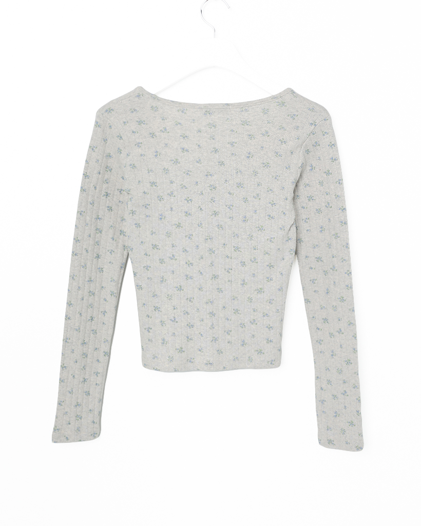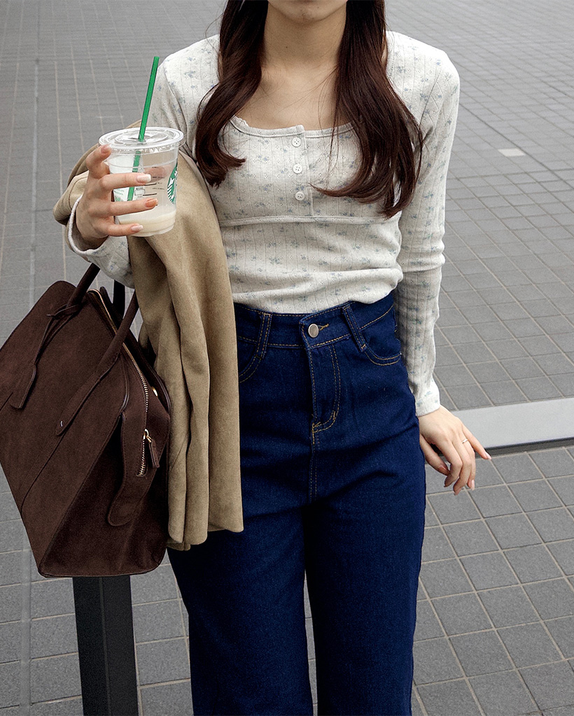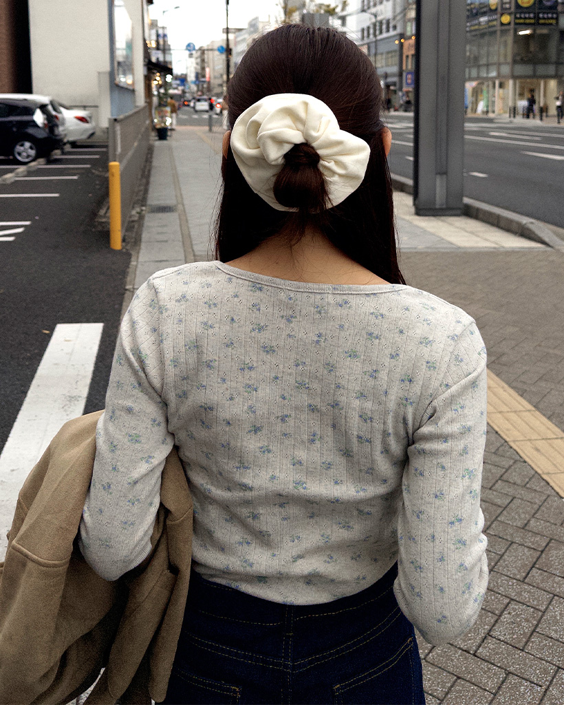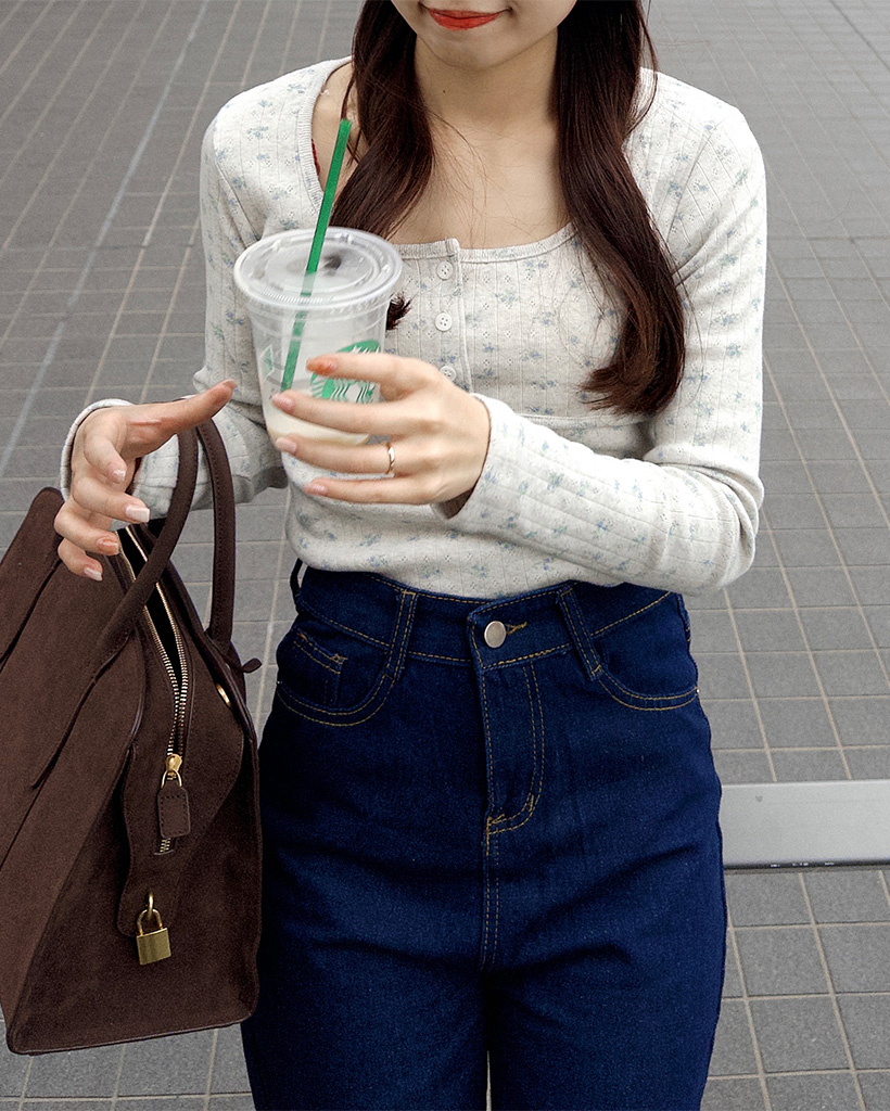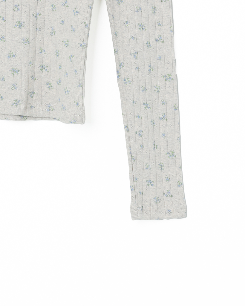 フラワーディテールボタンTシャツ