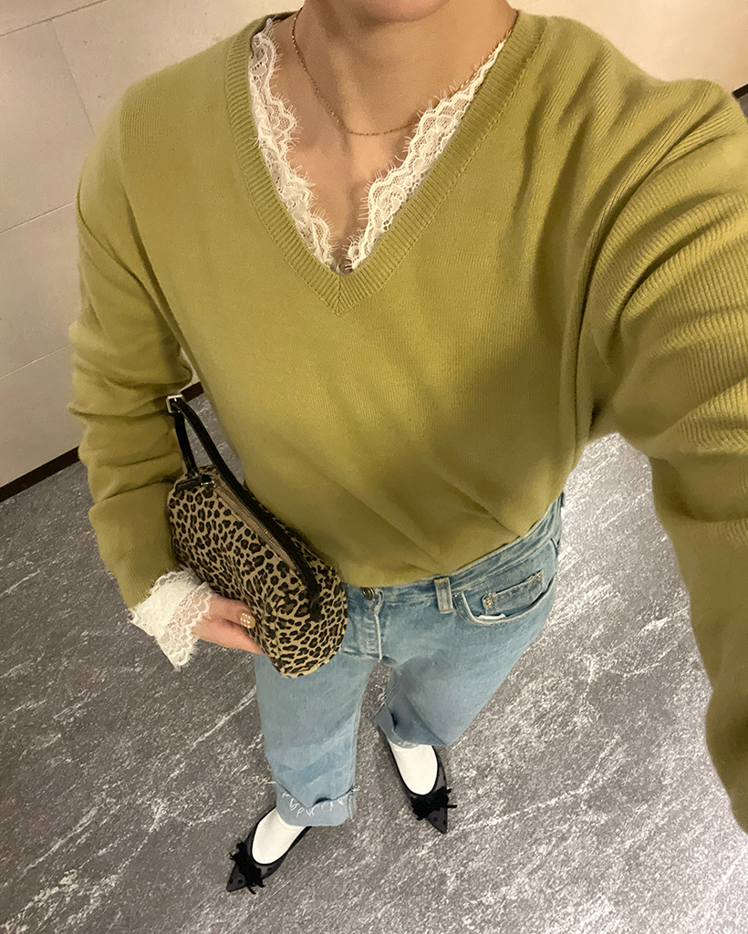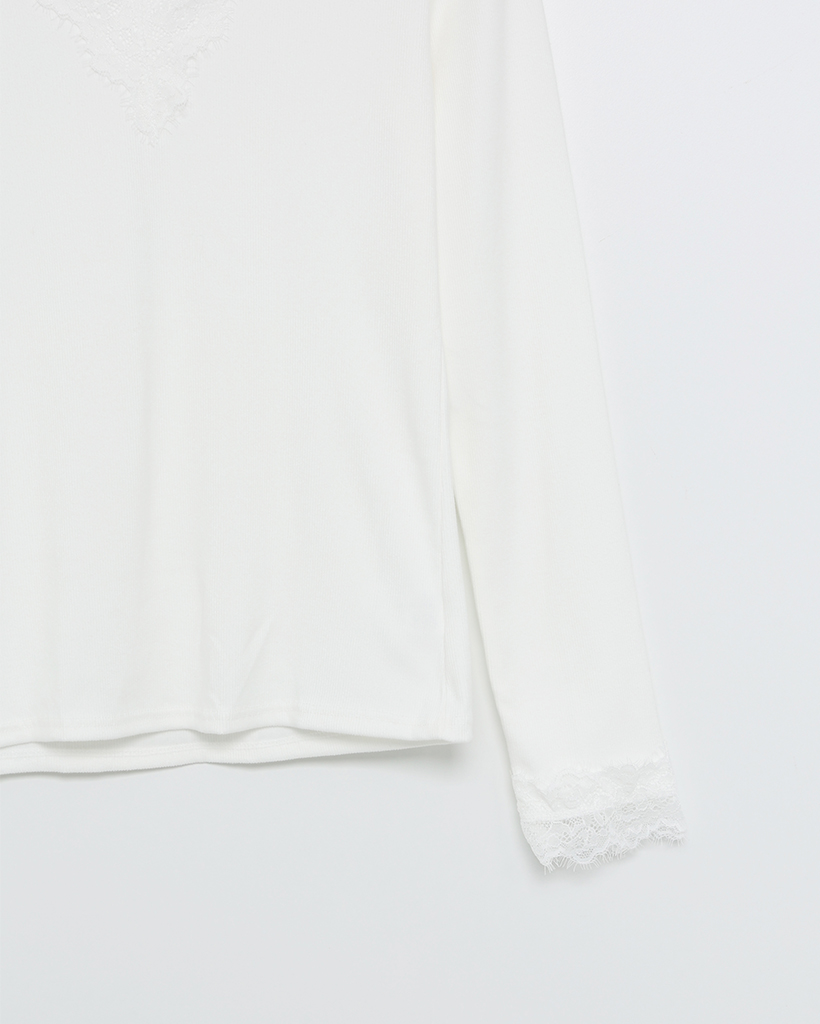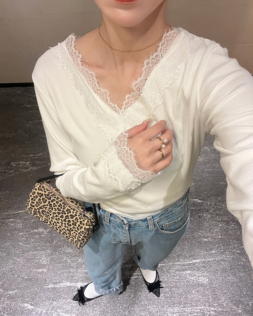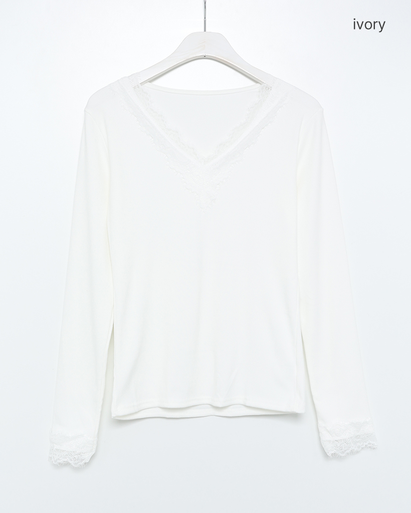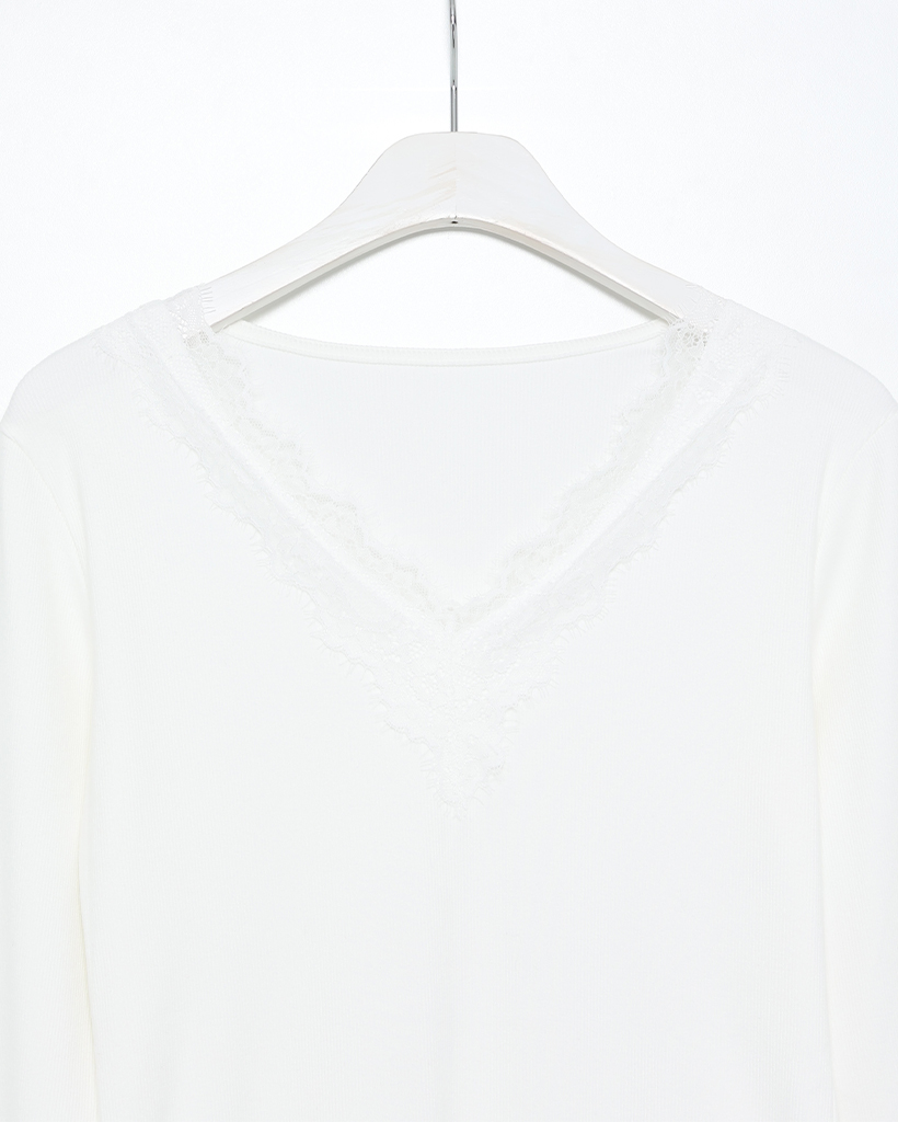 レースVネックスリムTシャツ