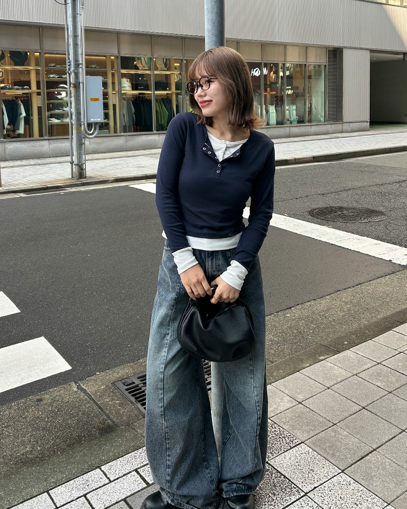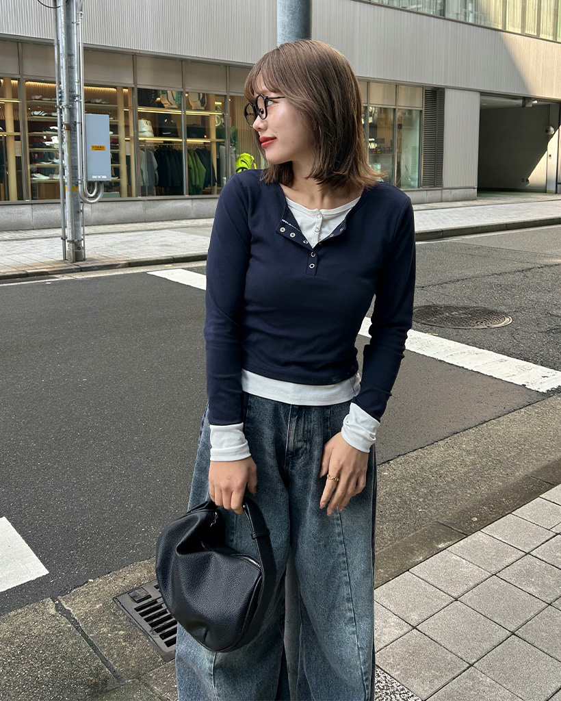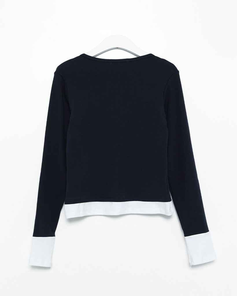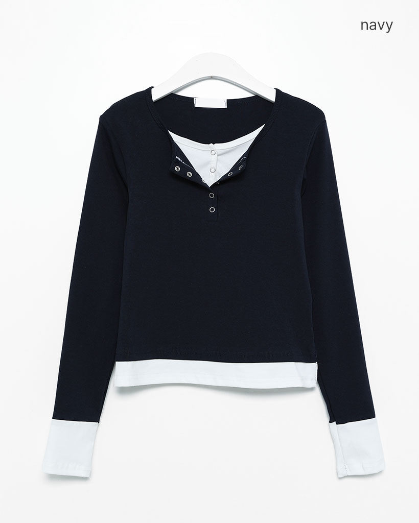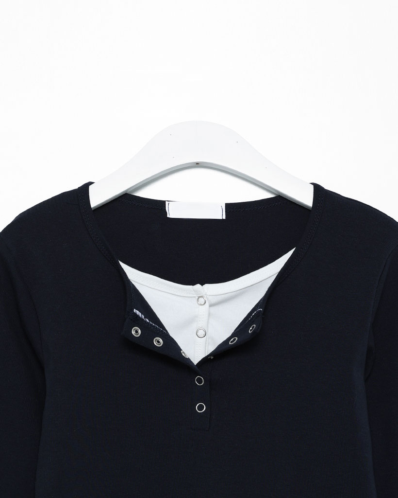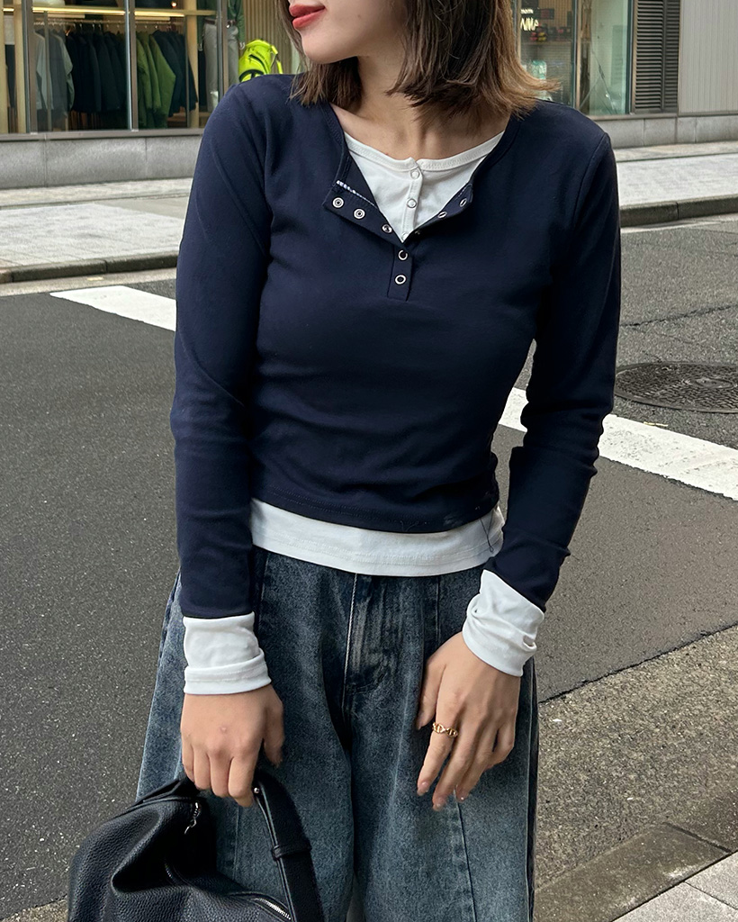 スナップボタンレイヤードロングスリーブTシャツ